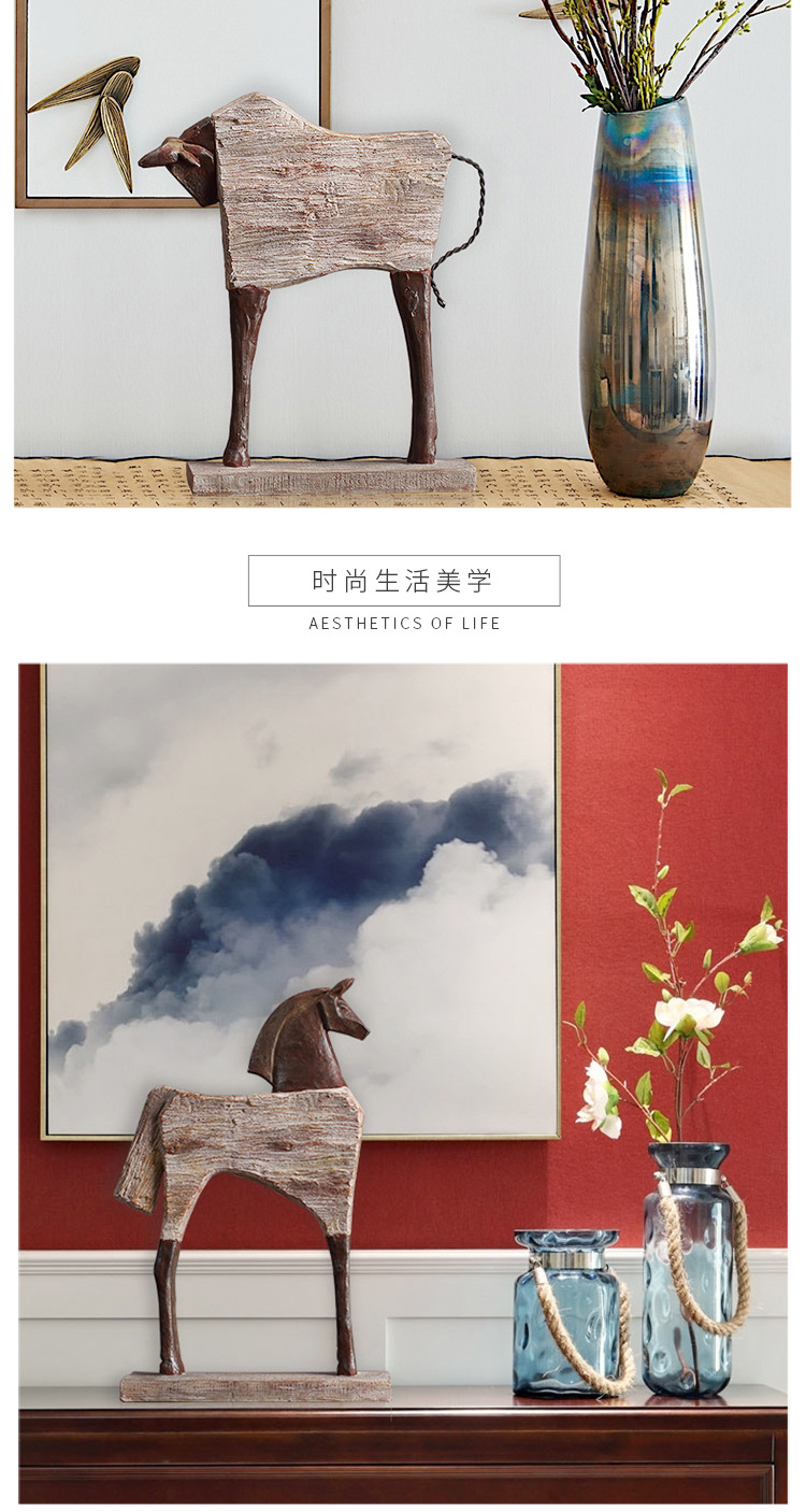 아메리칸 스타일 빈티지 말 장식품 수지 공예 거실 장식 동물 TV 내각 와인 캐비닛 복도 집들이 장식품스토어 가기