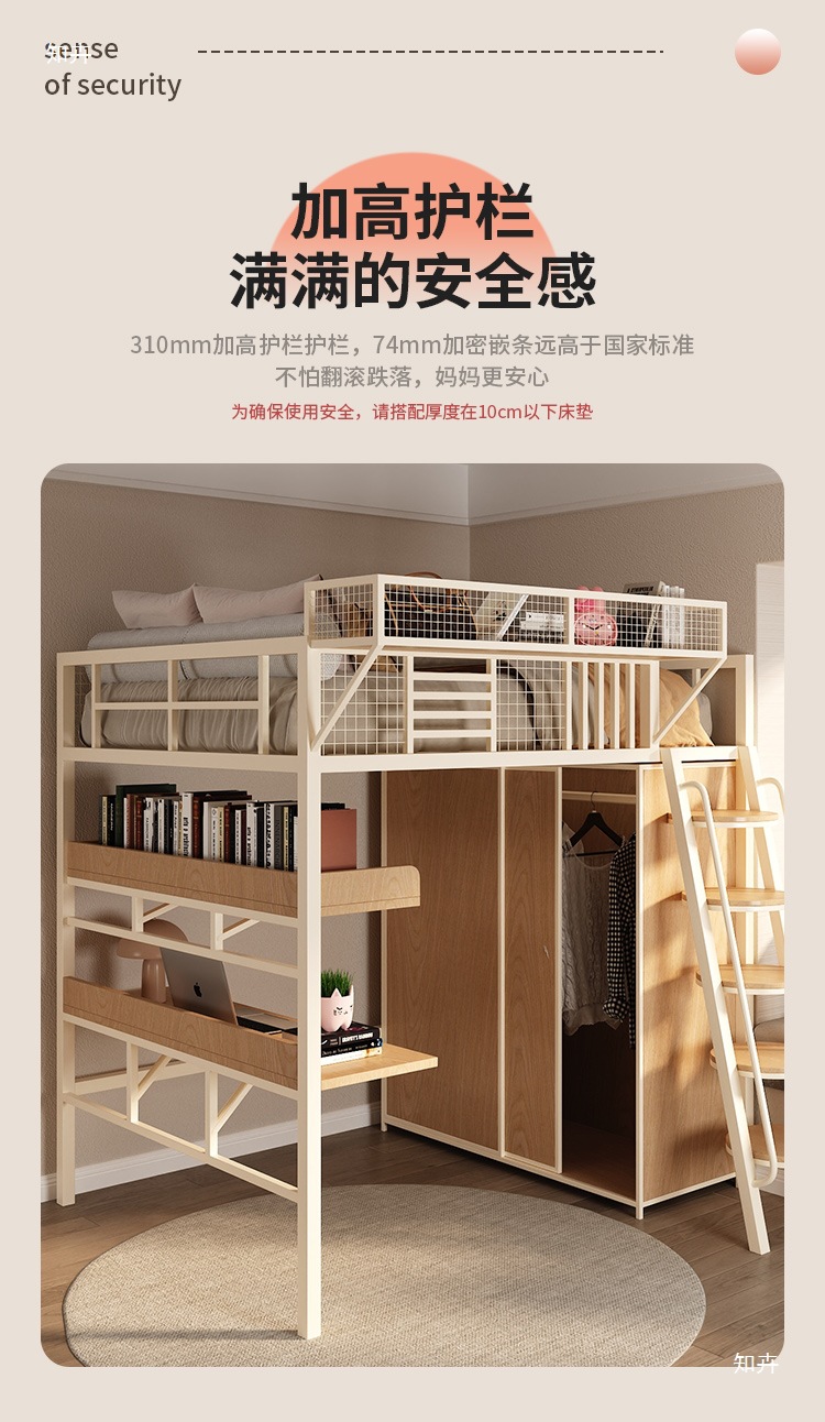 철제 이층침대, 2층 공중침대, 이층침대, 싱글 로프트침대, 소형 침대 밑 캐비닛