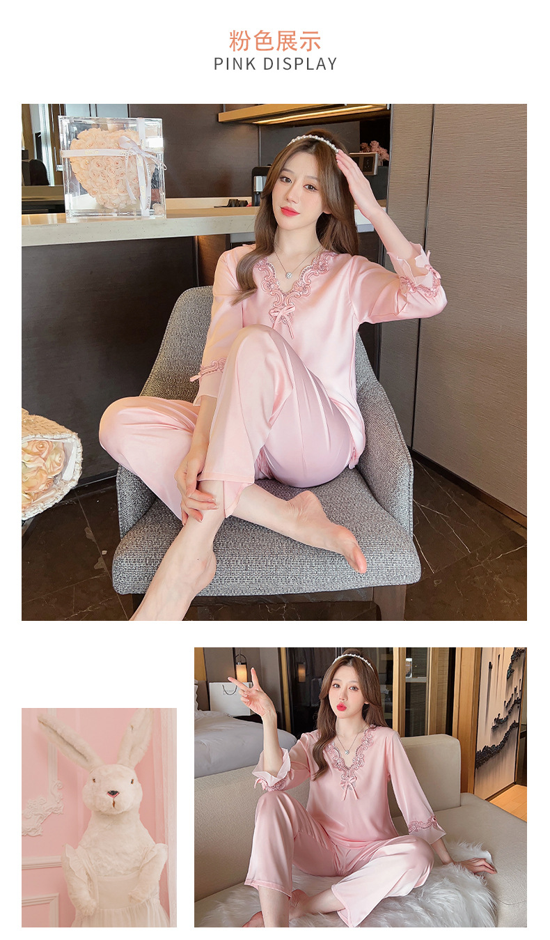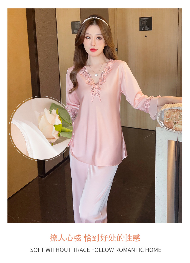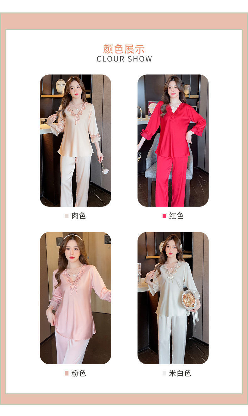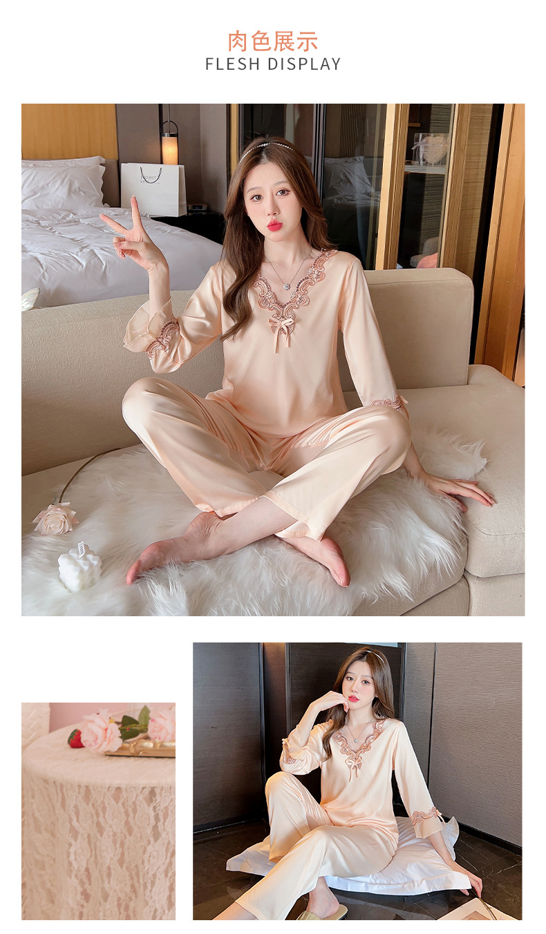 중국 발렌타인데이 여성용 섹시 잠옷, 루즈핏 긴팔 투피스 세트, 얇은 아이스 실크 섹시 홈웨어, 외출복으로도 활용 가능스토어 가기