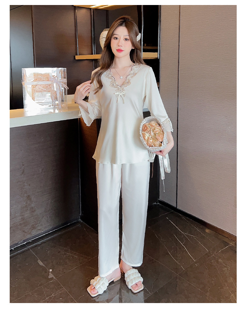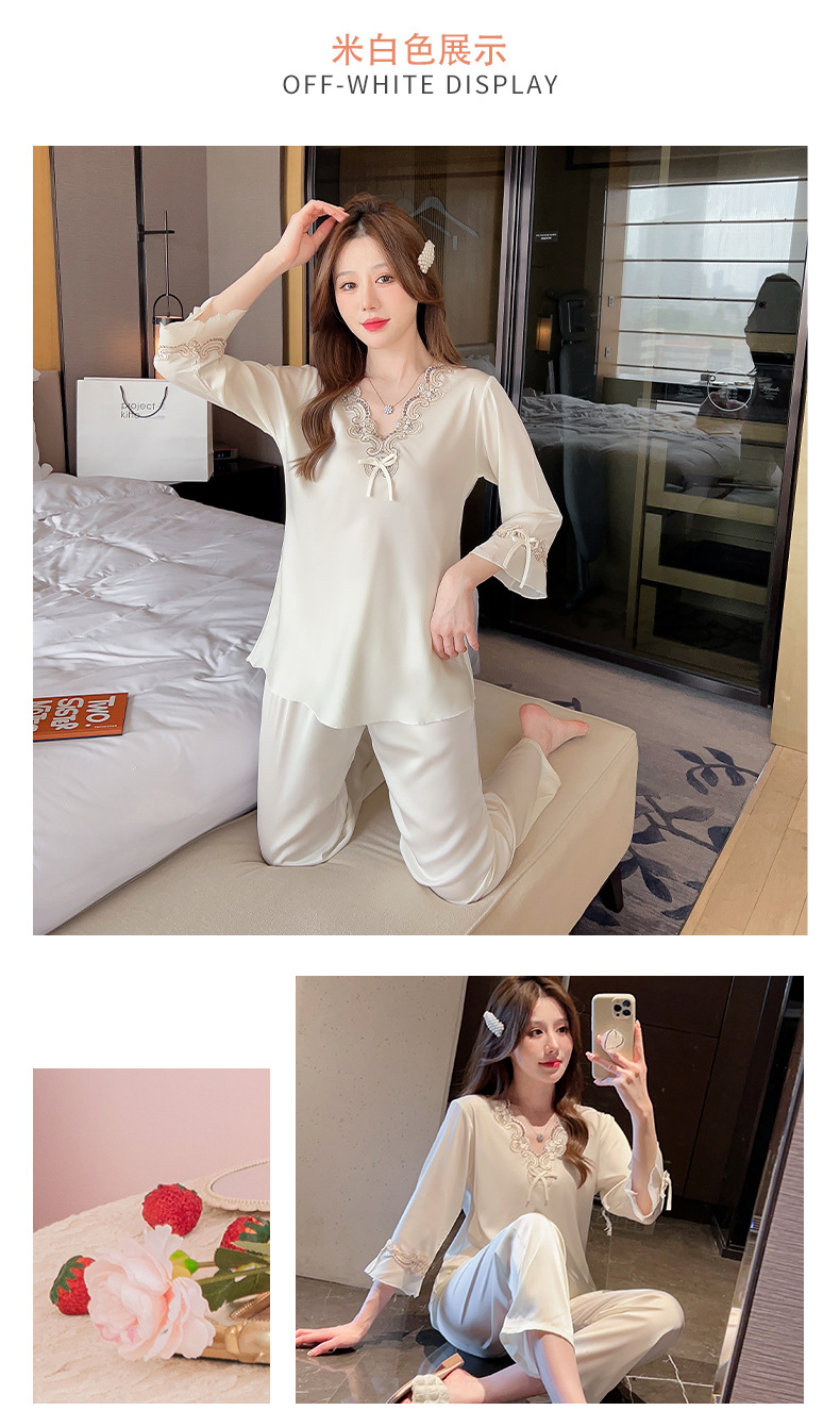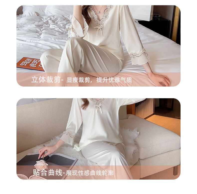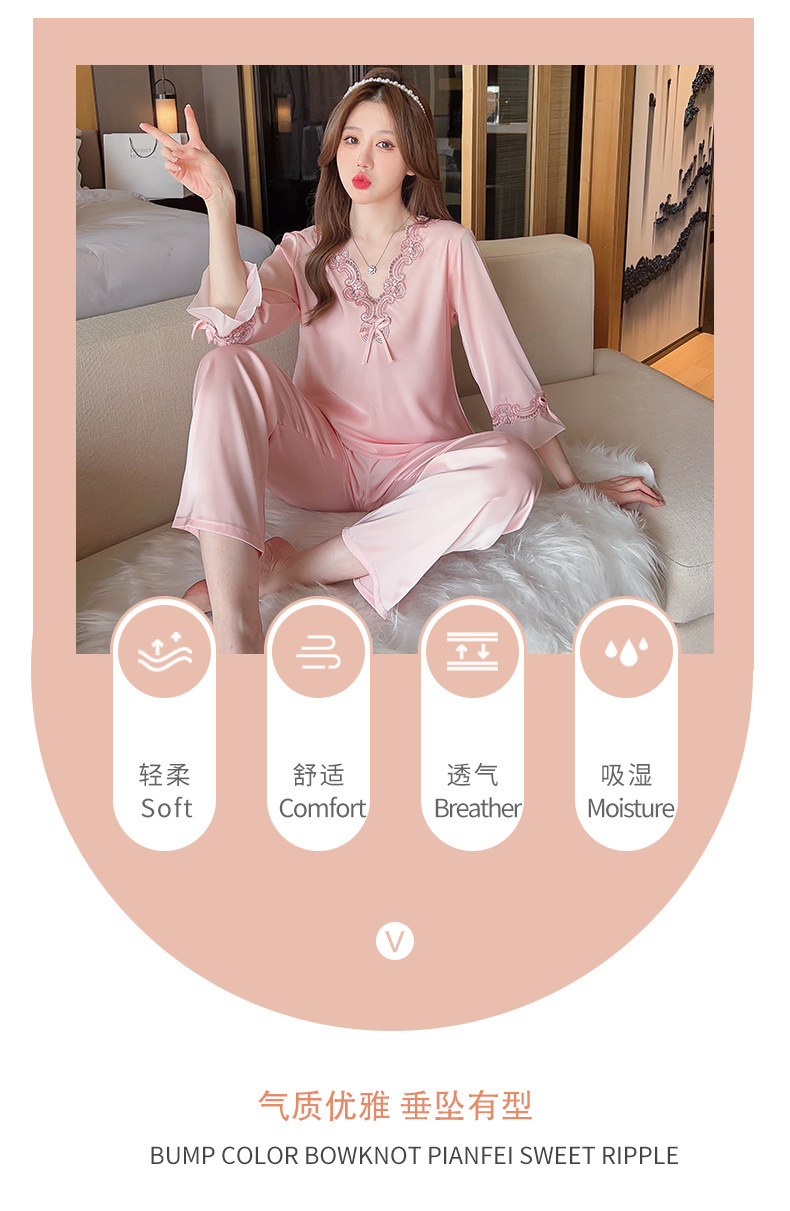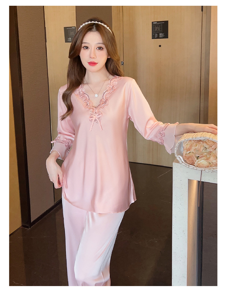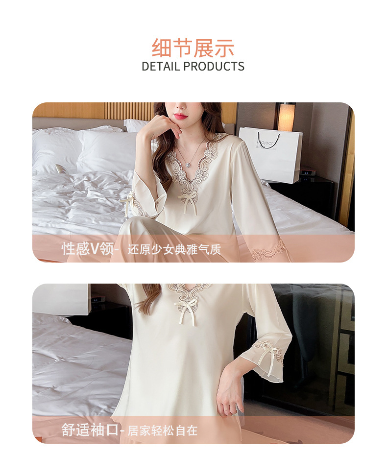 중국 발렌타인데이 여성용 섹시 잠옷, 루즈핏 긴팔 투피스 세트, 얇은 아이스 실크 섹시 홈웨어, 외출복으로도 활용 가능스토어 가기