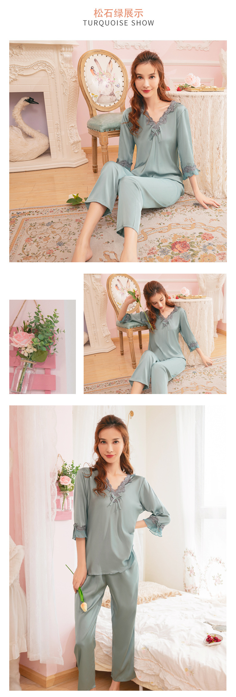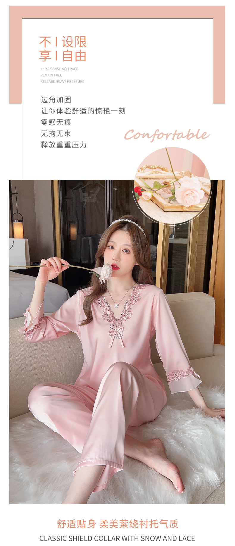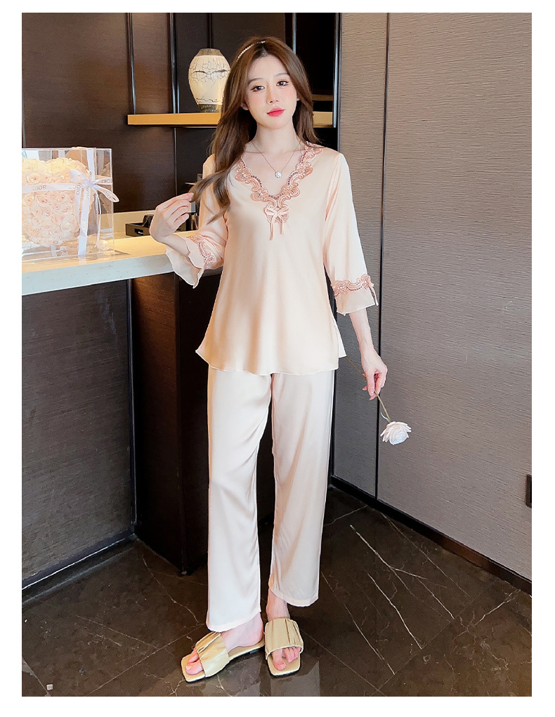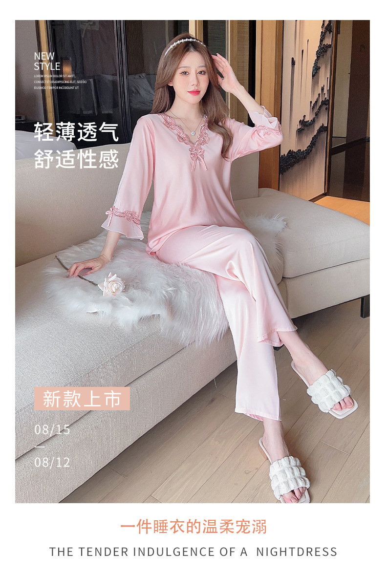 중국 발렌타인데이 여성용 섹시 잠옷, 루즈핏 긴팔 투피스 세트, 얇은 아이스 실크 섹시 홈웨어, 외출복으로도 활용 가능스토어 가기