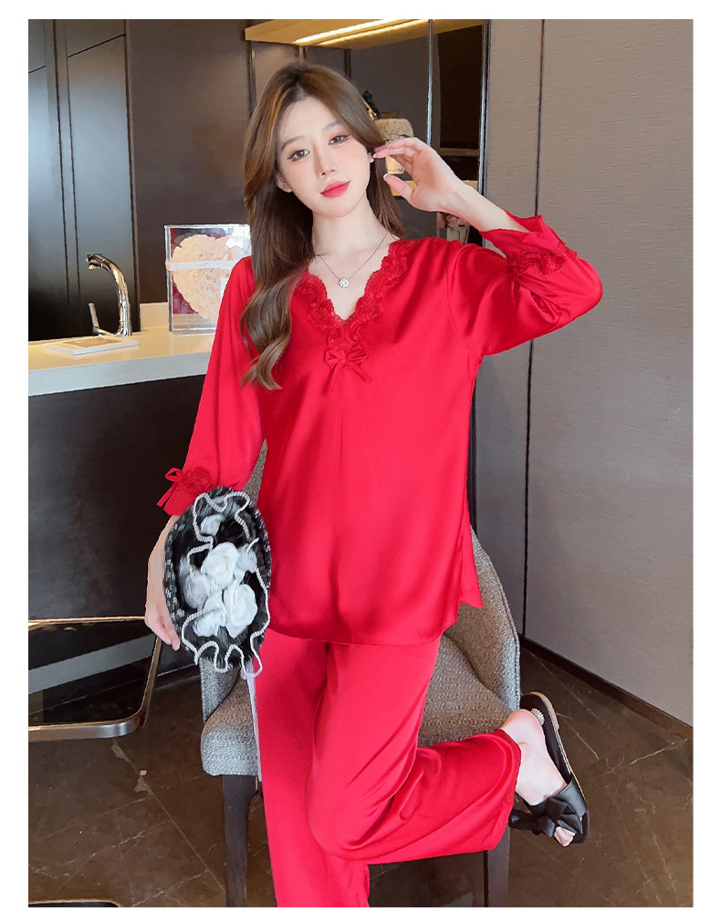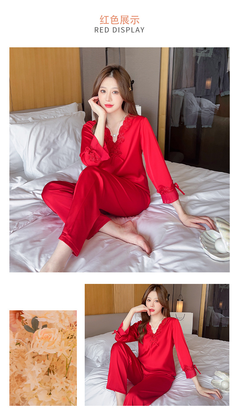 중국 발렌타인데이 여성용 섹시 잠옷, 루즈핏 긴팔 투피스 세트, 얇은 아이스 실크 섹시 홈웨어, 외출복으로도 활용 가능