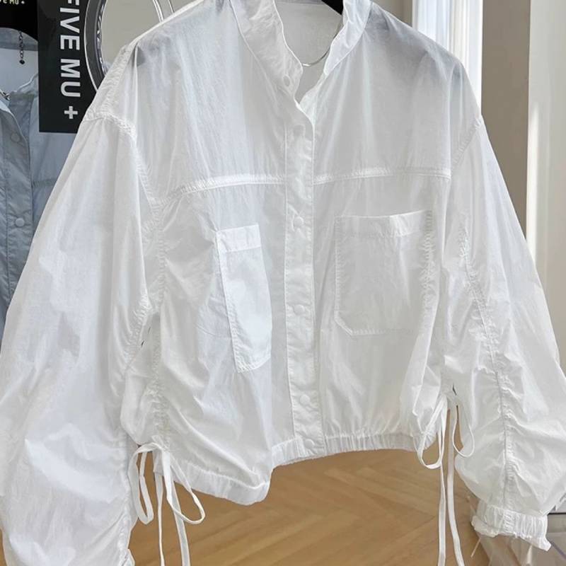 디자인 틈새 고급 주름진 얇은 스탠드 칼라 자외선 차단 의류 여성 유럽 여름 느슨한 짧은 재킷스토어 가기