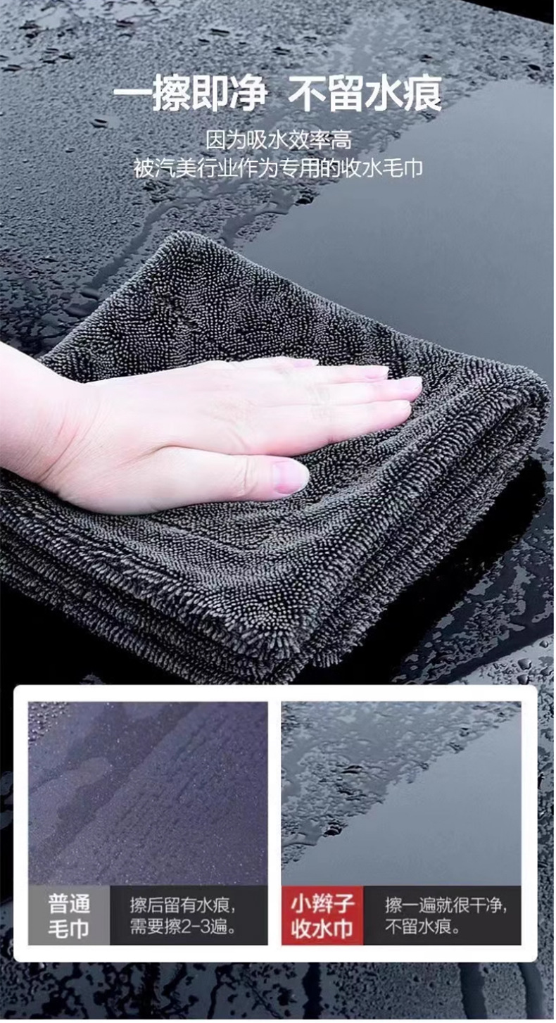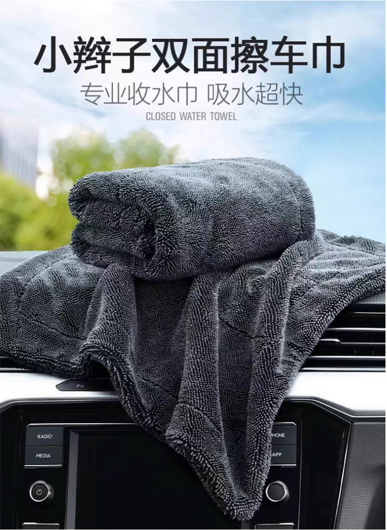 대외 무역 크로스보더 공급 소형 땋은 머리 모양 자동차 닦는 수건 세차용 흡수성 양면 꼬임 천 60*90 가장자리 처리된 대형 수건스토어 가기