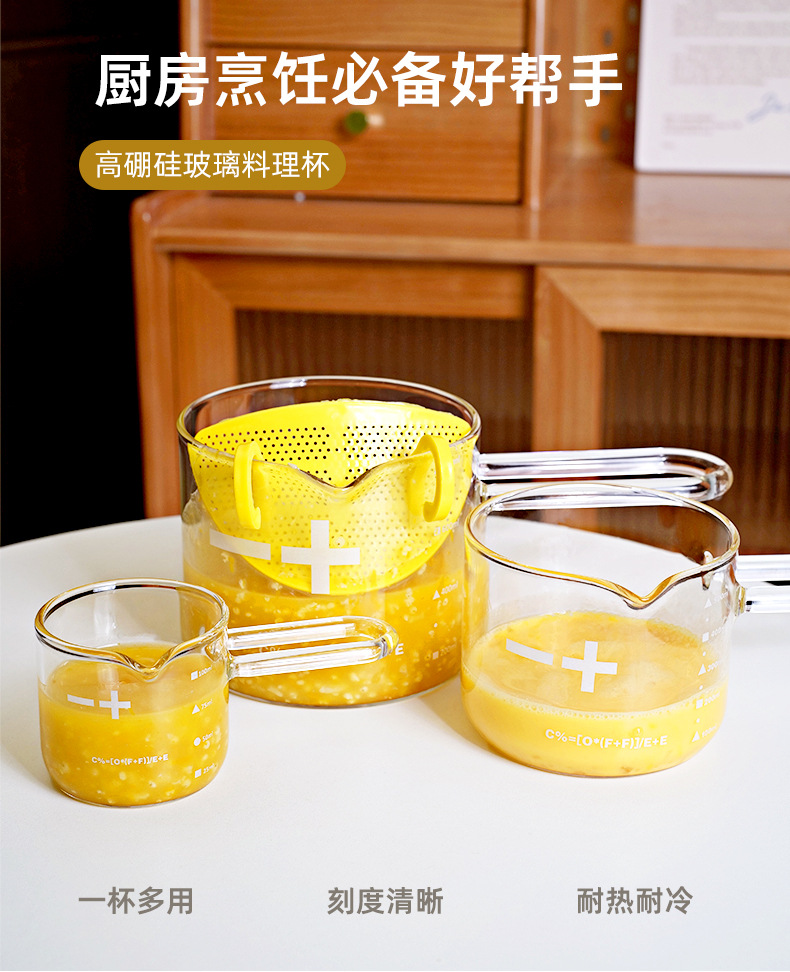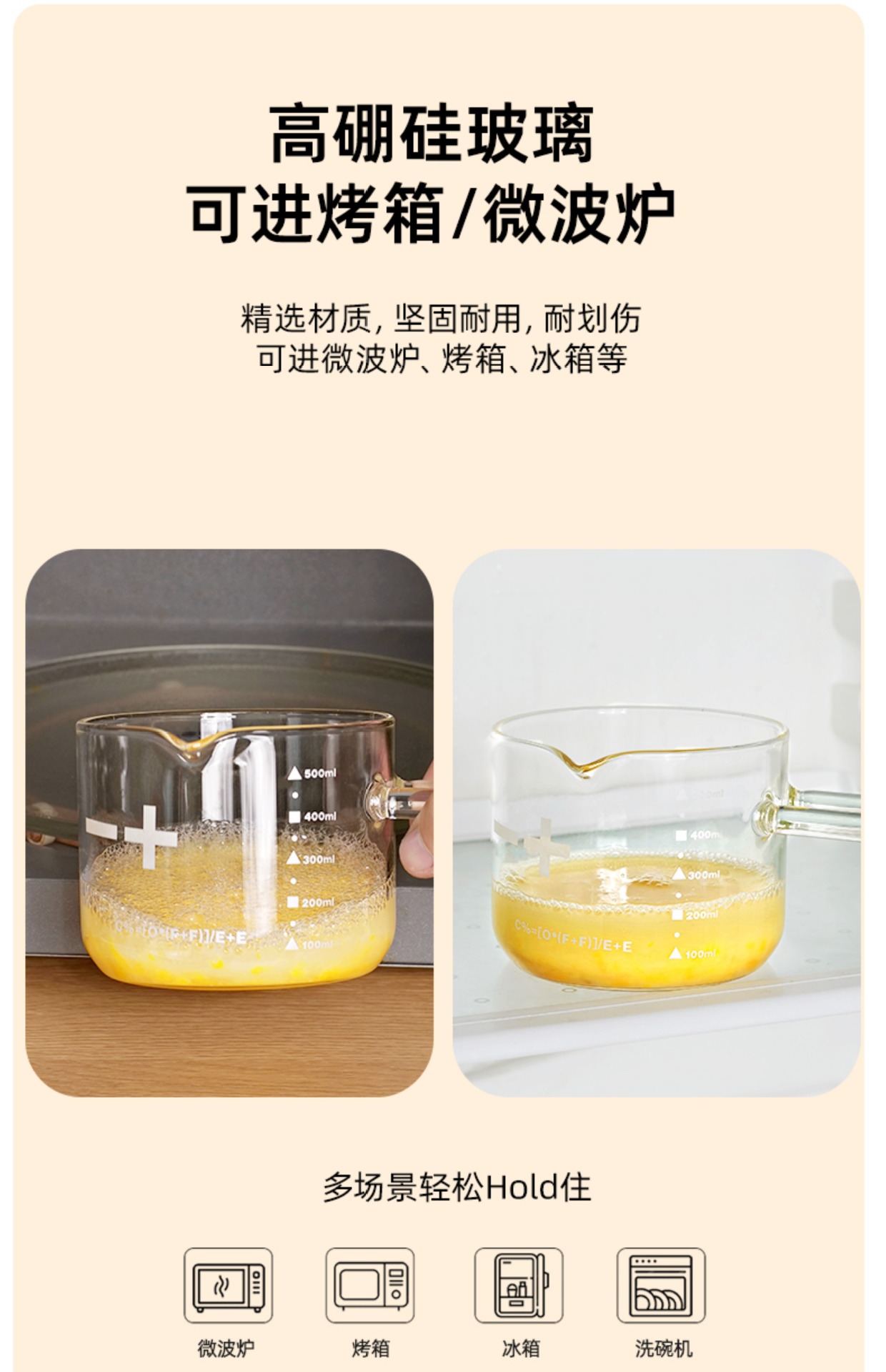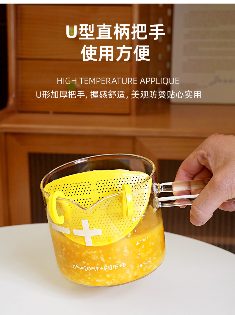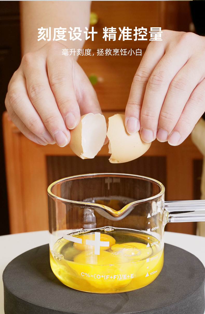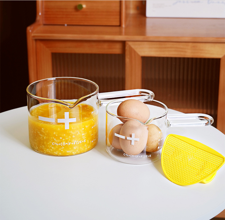 저울이 있는 새로운 유리 요리 컵, 고온 방지 가정용 우유 컵, 식품 등급 베이킹 계란 컵, 계량 컵