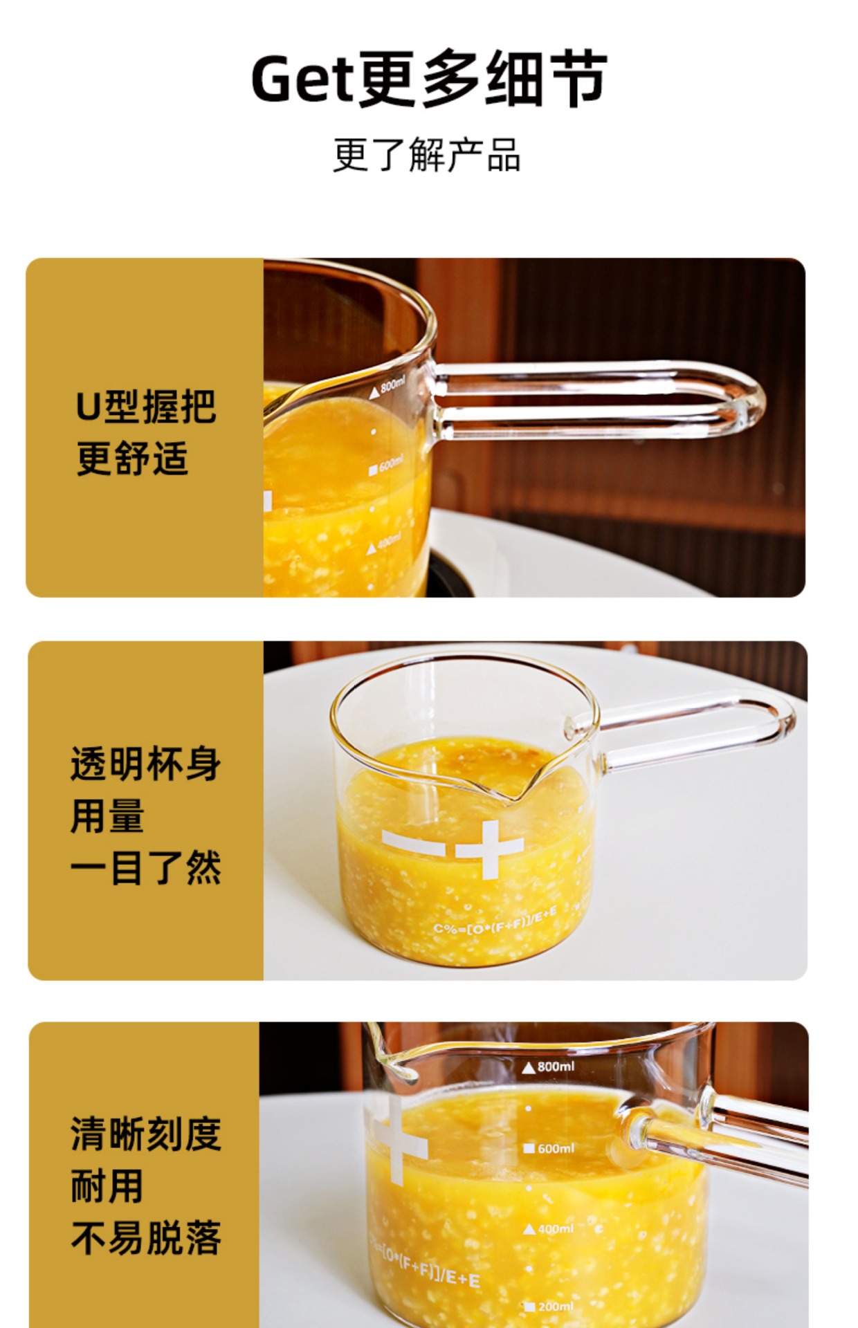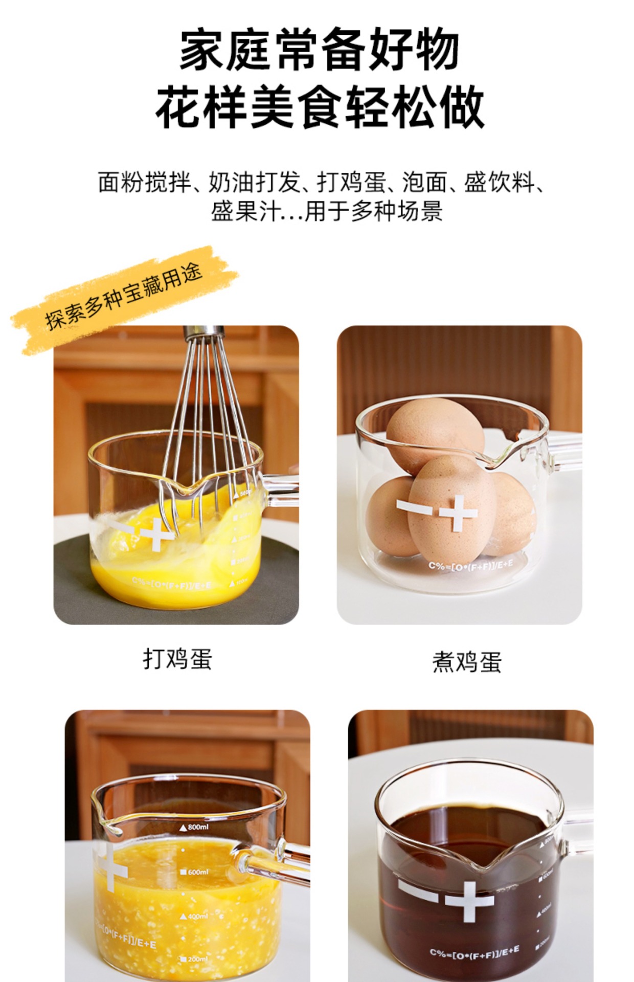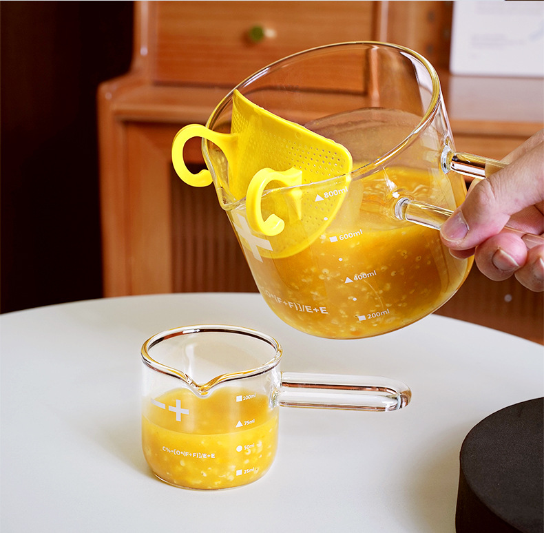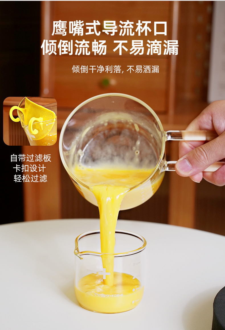 저울이 있는 새로운 유리 요리 컵, 고온 방지 가정용 우유 컵, 식품 등급 베이킹 계란 컵, 계량 컵
