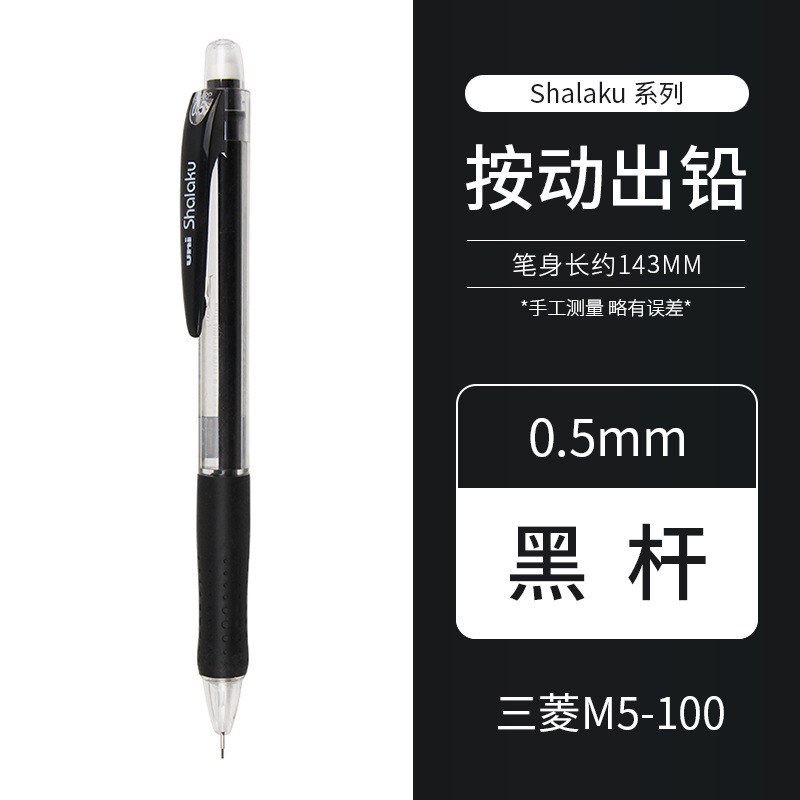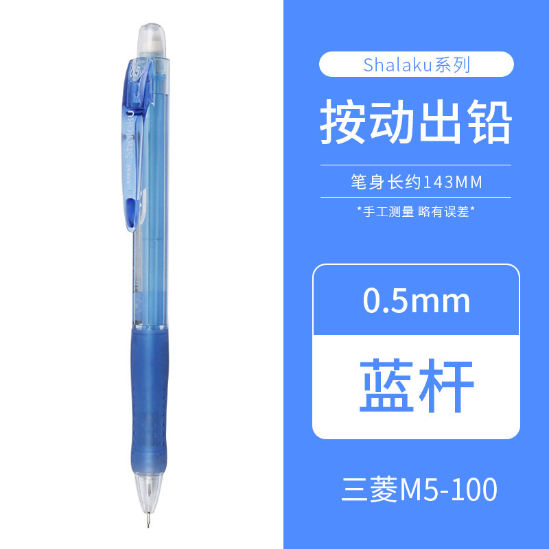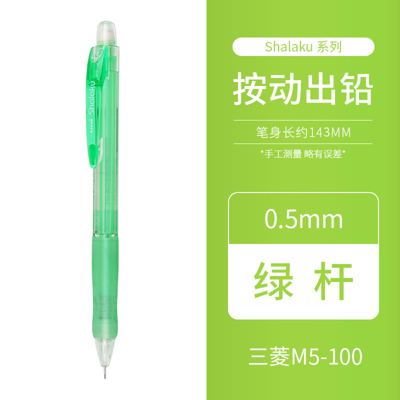 일본 UNI 미쓰비시 자동 연필 학생 쓰기 투명 막대 0.5mm 지우개가있는 샤프 펜슬 M5-100스토어 가기