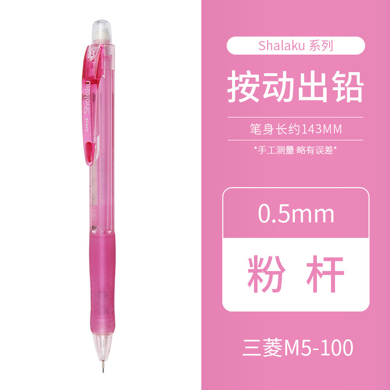 일본 UNI 미쓰비시 자동 연필 학생 쓰기 투명 막대 0.5mm 지우개가있는 샤프 펜슬 M5-100