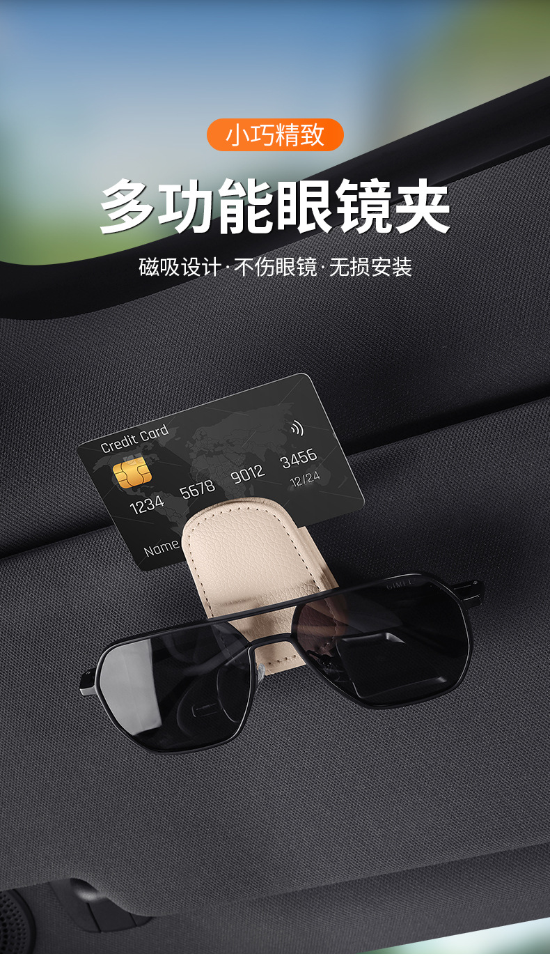 자동차 안경 홀더 자동차 장착 다기능 가죽 선글라스 프레임 빌 클립 썬 바이저 보관 선글라스스토어 가기