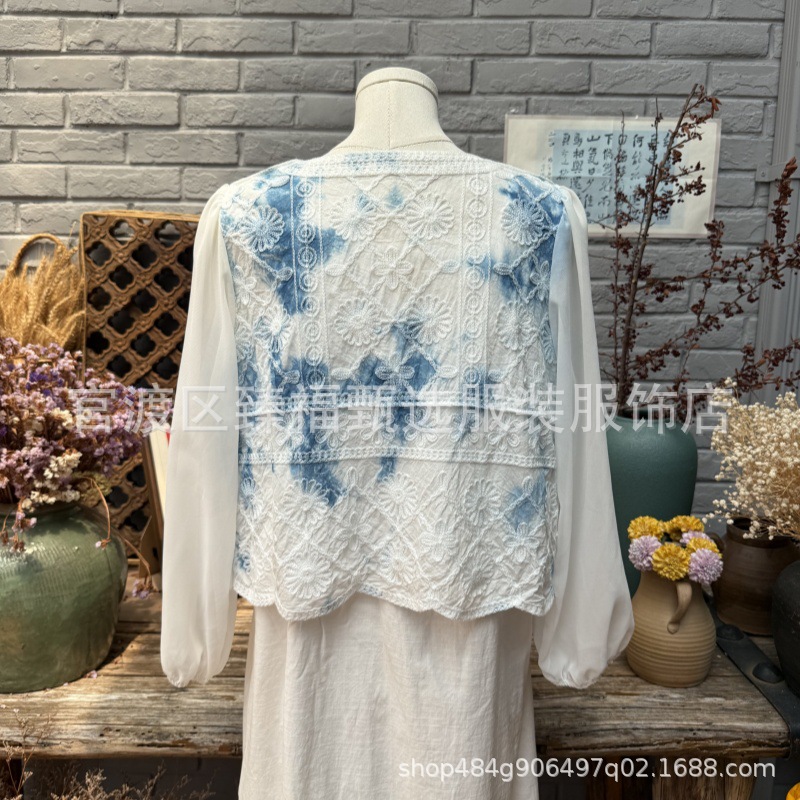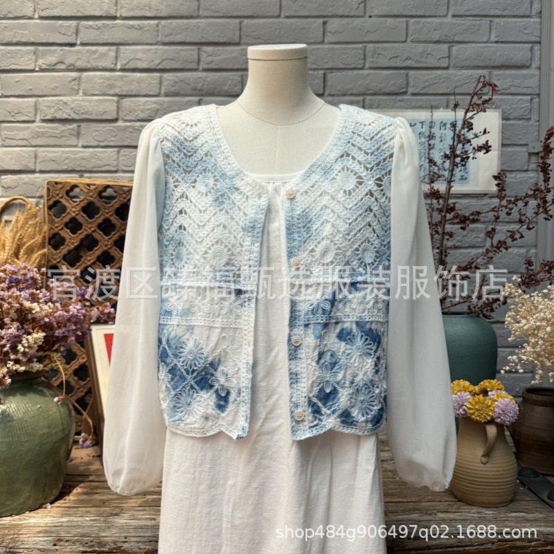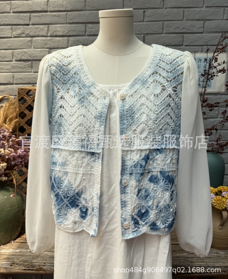 棉线针织镂空刺绣花朵外套