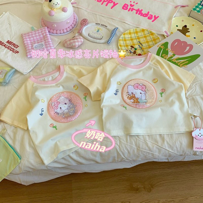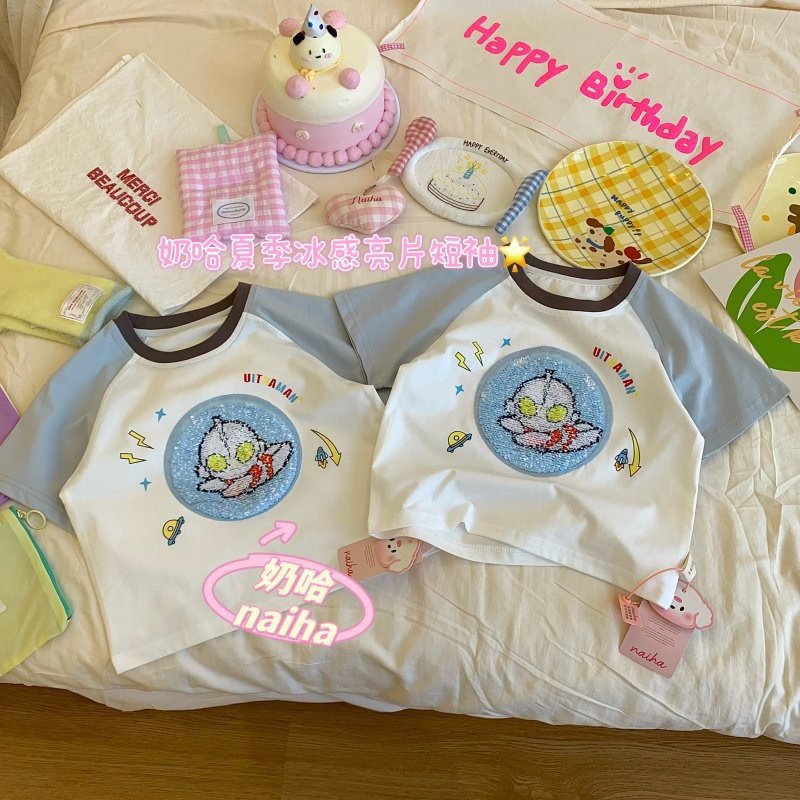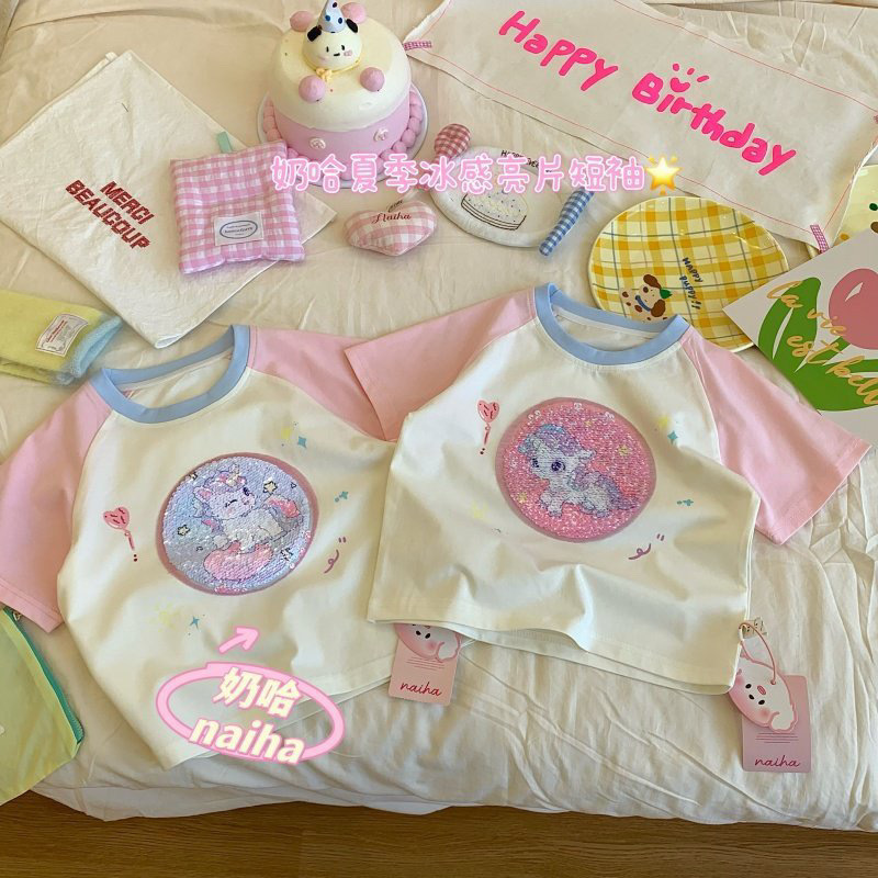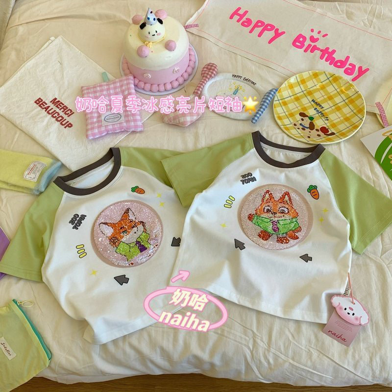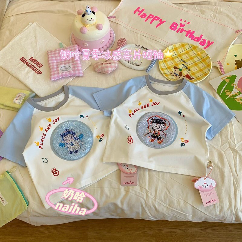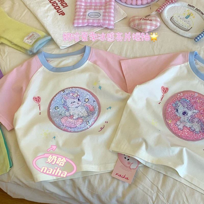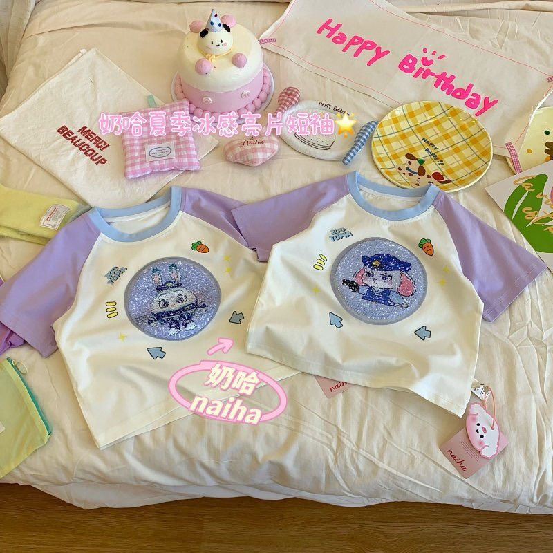 여름 새로운 만화 스타일 소년과 소녀 아기 귀여운 대비 색상 반팔 티셔츠 탑스토어 가기