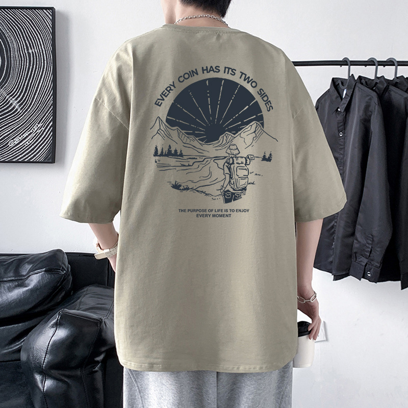 220g 헤비웨이트 반팔 티셔츠 남성용 면 소재 드롭숄더 스타일 반팔 젊은층을 위한 루즈핏 여름 신상 한국 스타일 커플룩 해외배송