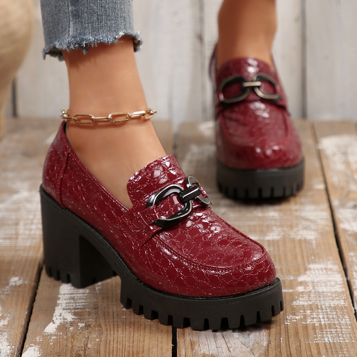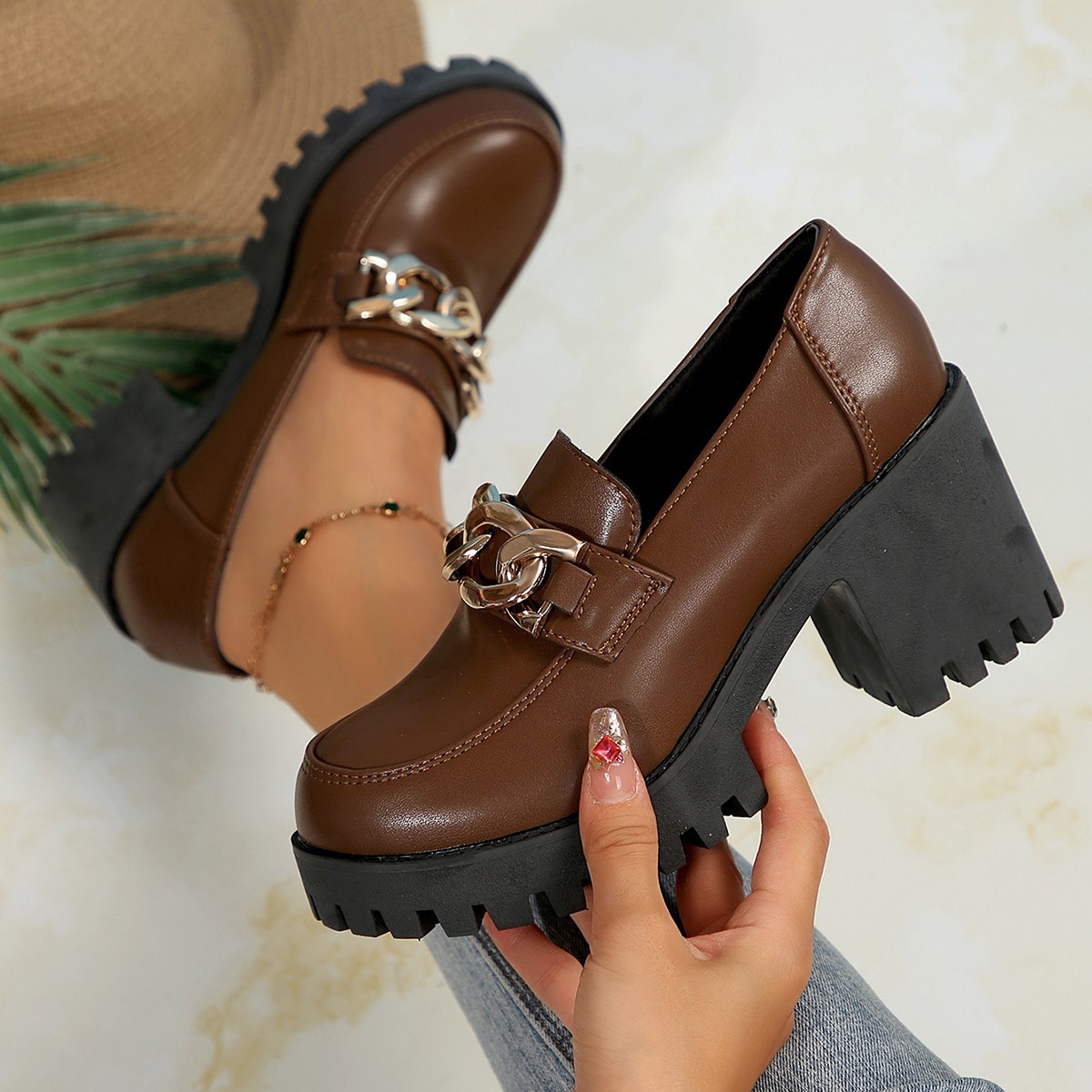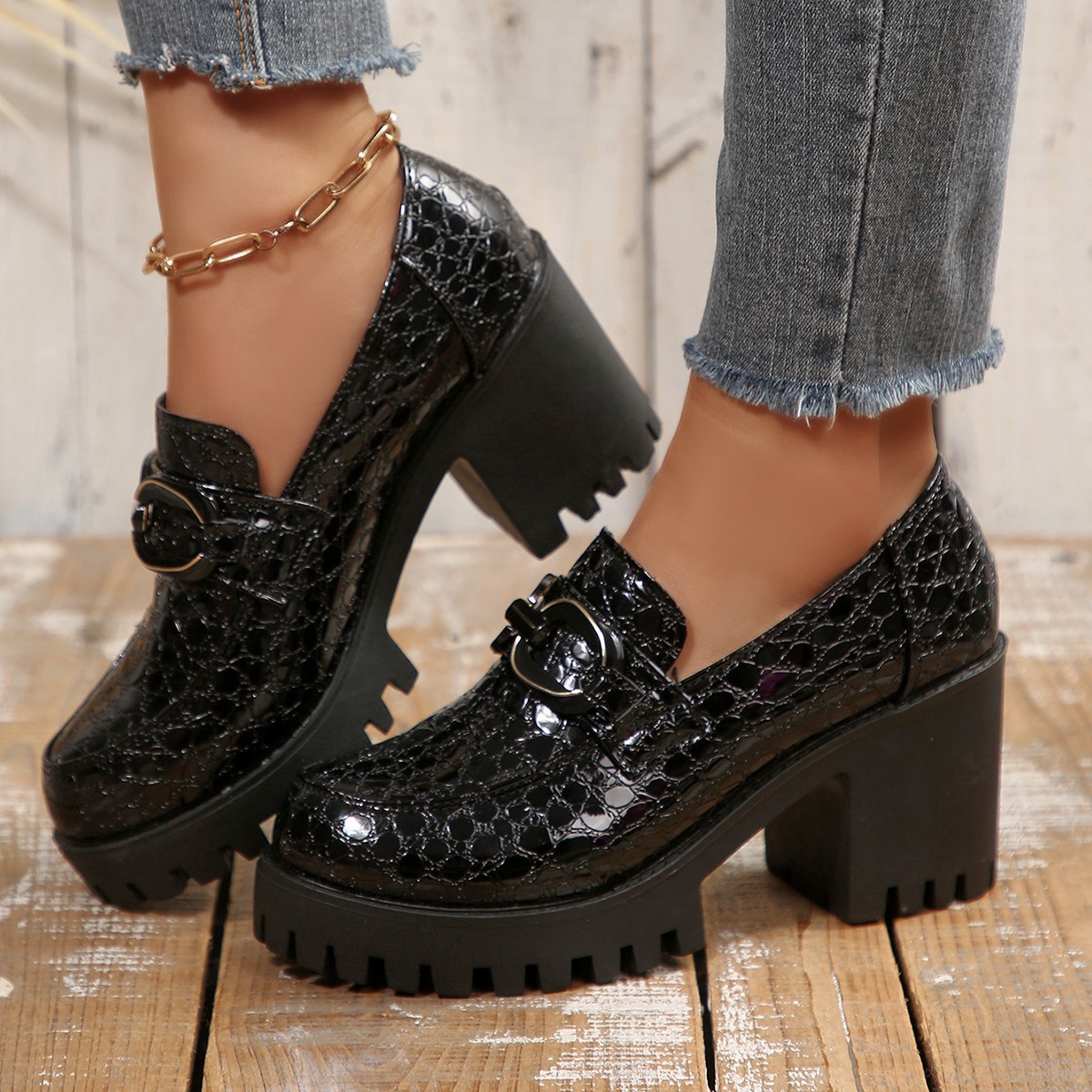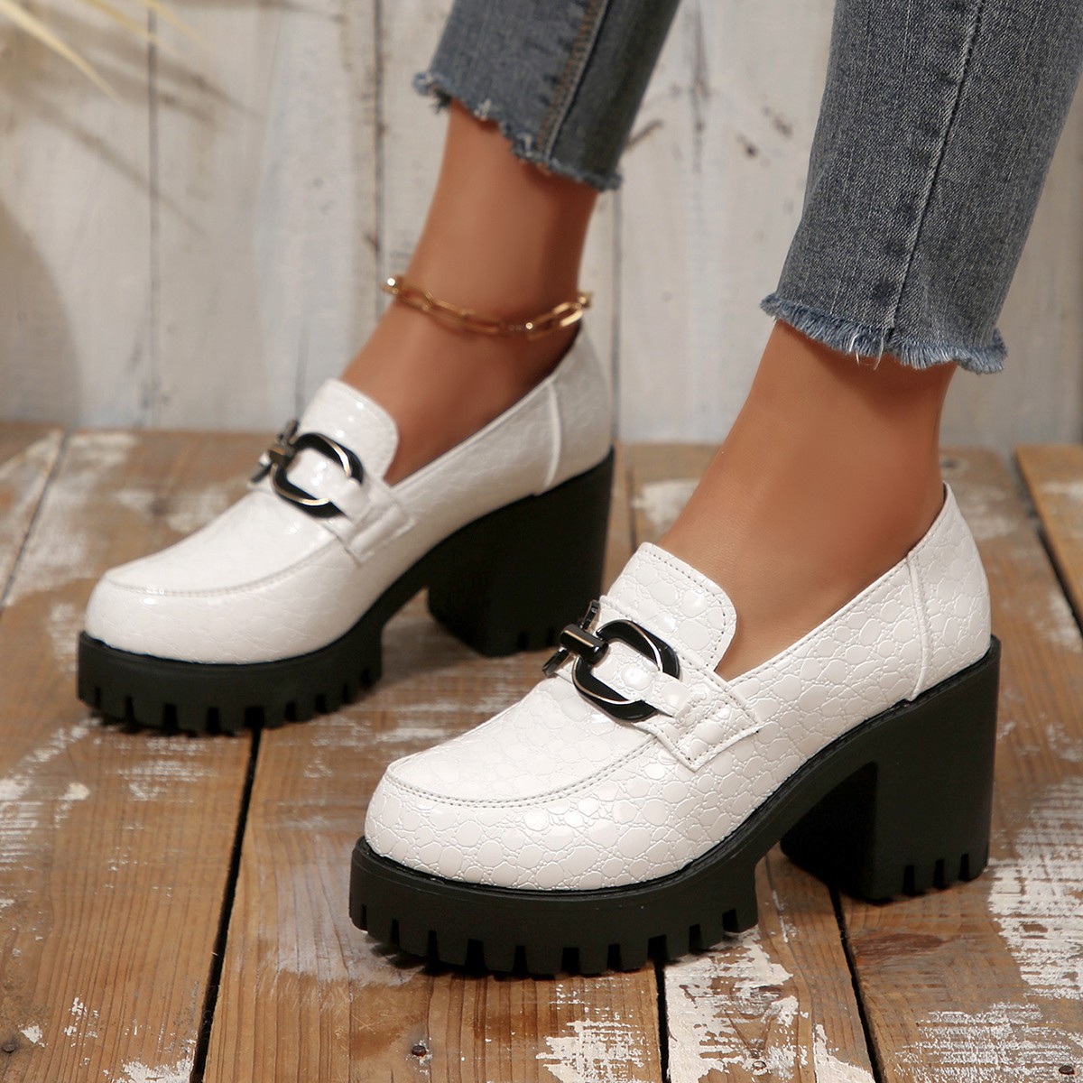 여성 로퍼 가죽 신발 여성 2025 새로운 봄 인터넷 연예인 하이힐 여성 신발 두꺼운 굽 영국 스타일 높이 증가 패션 신발스토어 가기