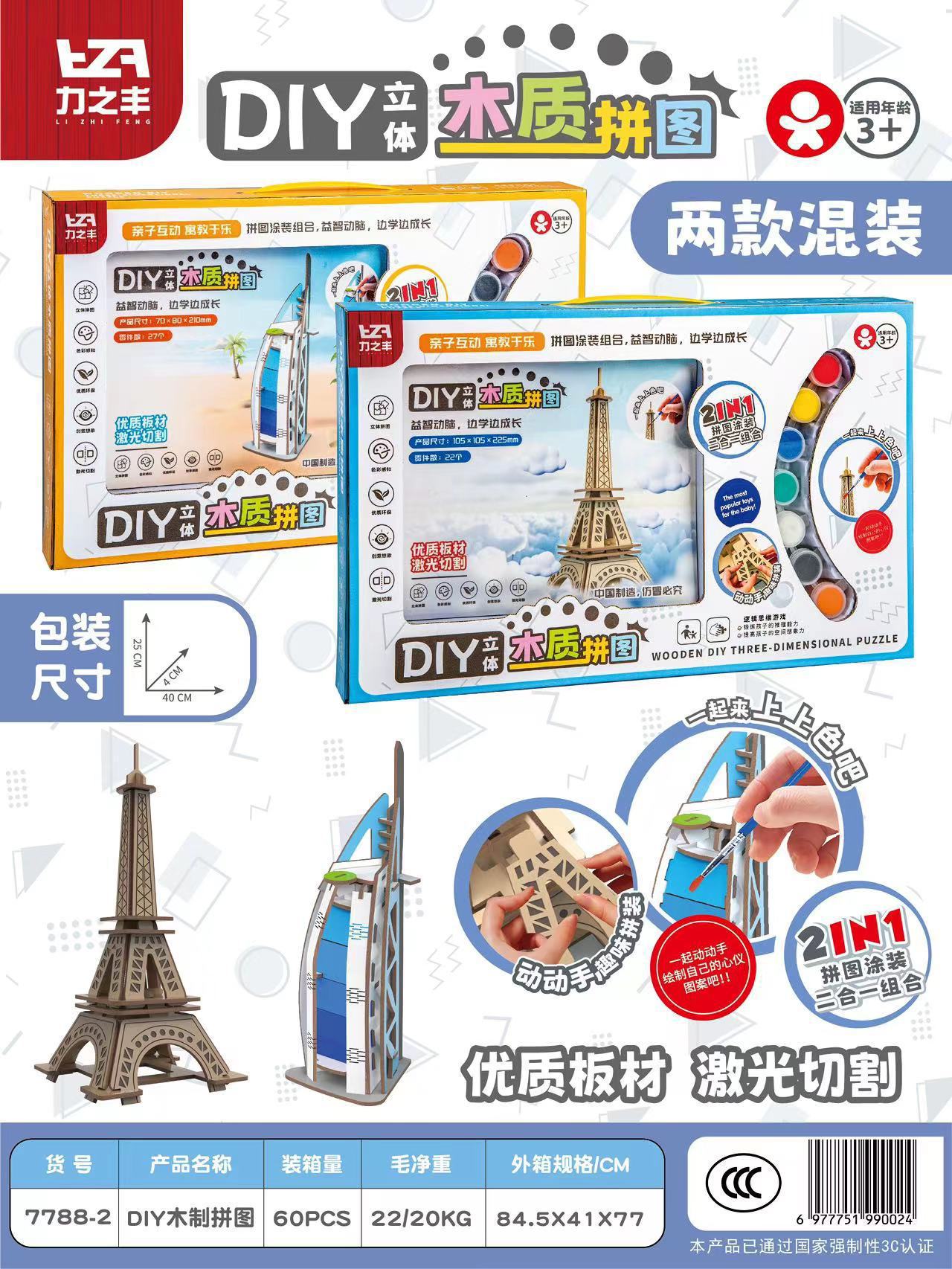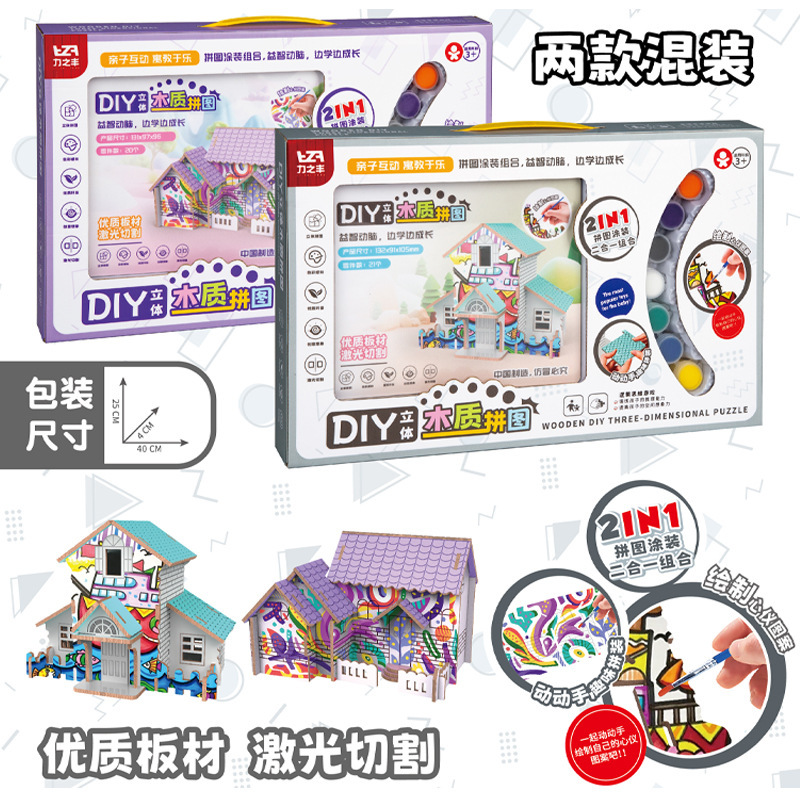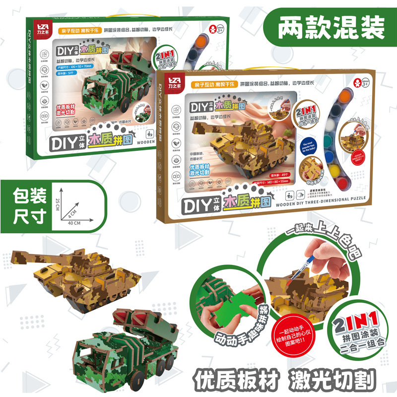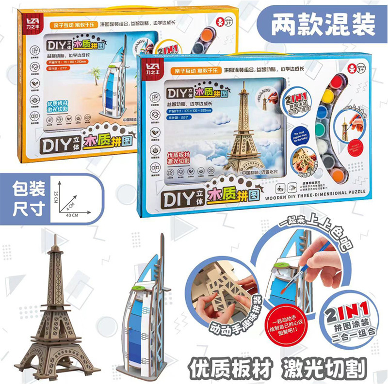 어린이 나무 퍼즐 페인트 입체 3D 조립 모델 장난감 소년과 소녀 교육 수제 선물 노점 도매스토어 가기