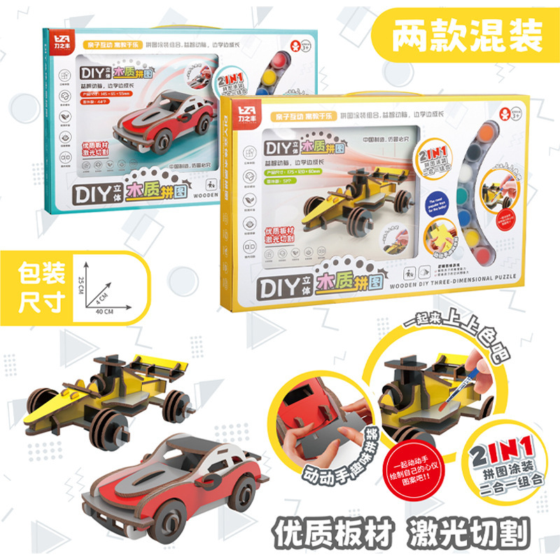 어린이 나무 퍼즐 페인트 입체 3D 조립 모델 장난감 소년과 소녀 교육 수제 선물 노점 도매