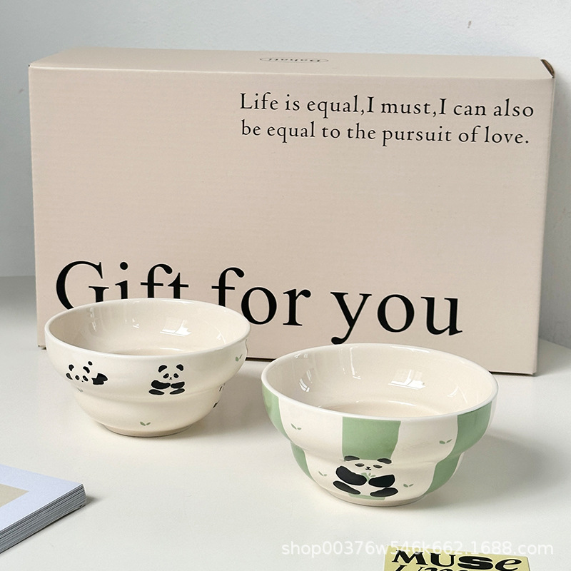 • 조롱박 그릇 세트 (나뭇잎 팬더 + 줄무늬 팬더) 선물 상자