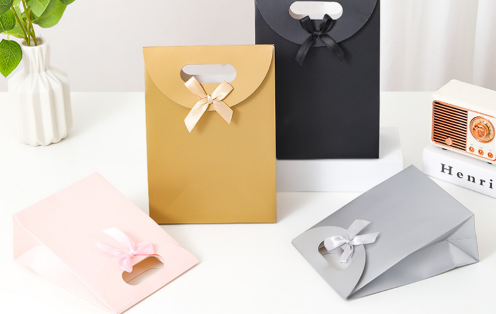 국경 간 스팟 플립 탑 보우 선물 가방 4 손가락 버클 핸들 종이 가방 벨크로 씰 도매 핸드백