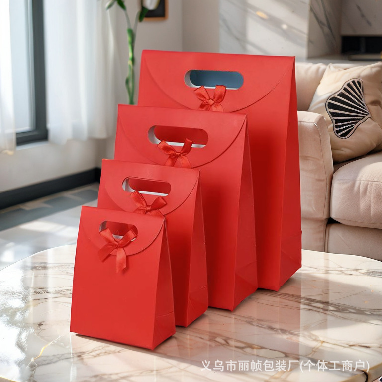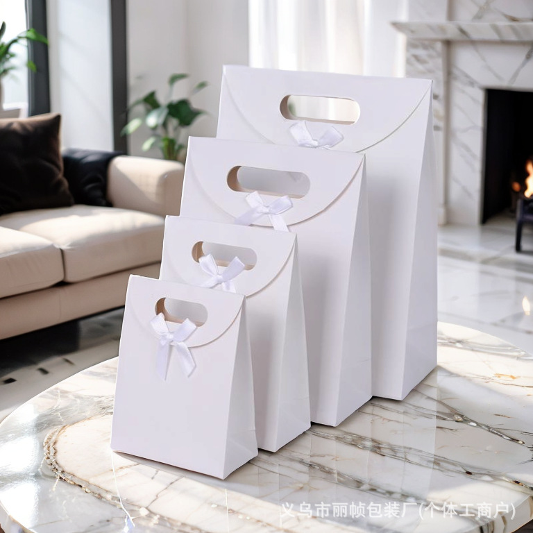 국경 간 스팟 플립 탑 보우 선물 가방 4 손가락 버클 핸들 종이 가방 벨크로 씰 도매 핸드백스토어 가기