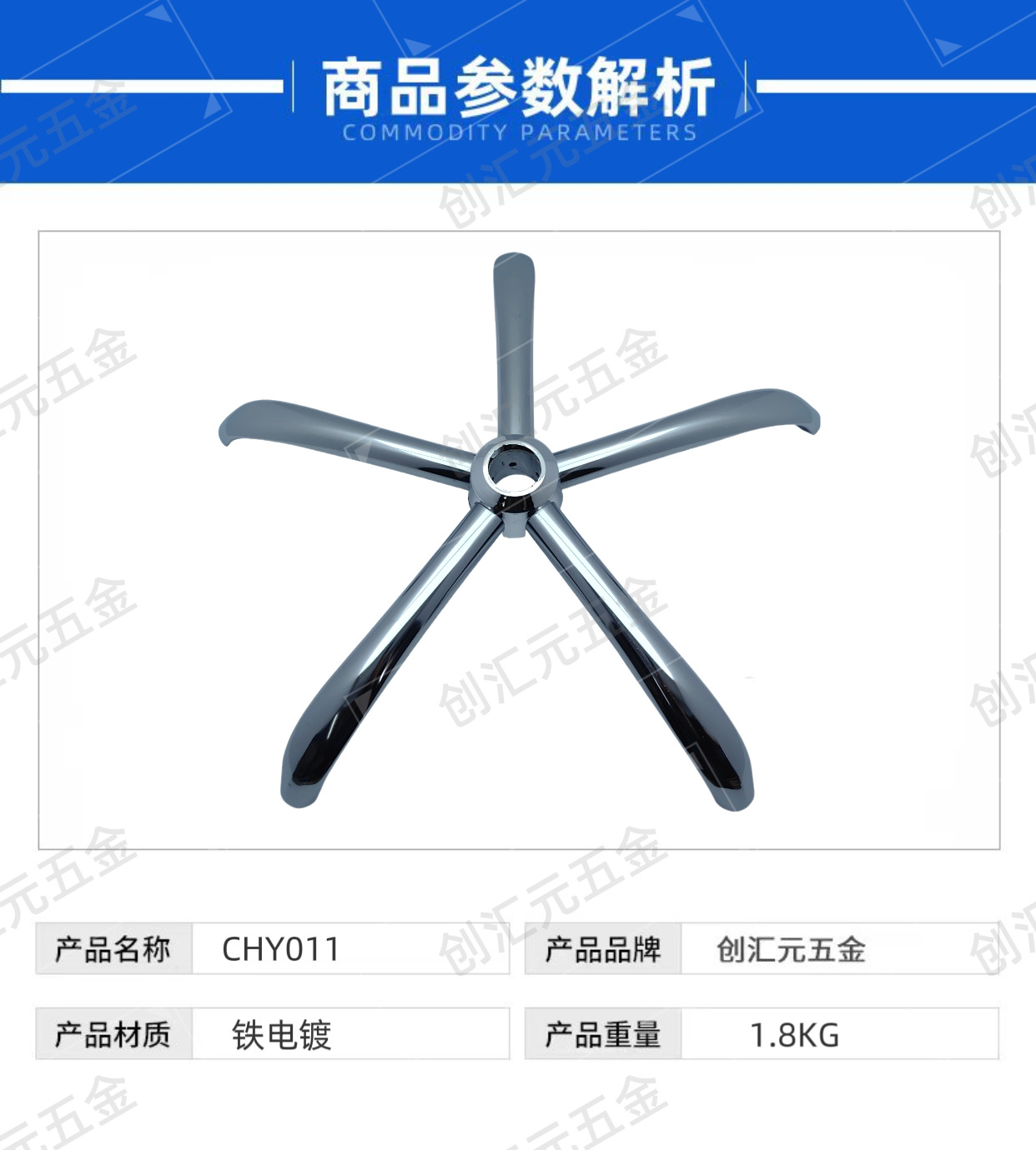 회전의자 부품 두꺼운 의자 다리 받침대 전기도금 가구 오각형 다리 컴퓨터 의자 베이스 스틸제