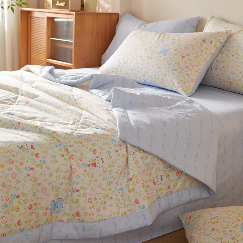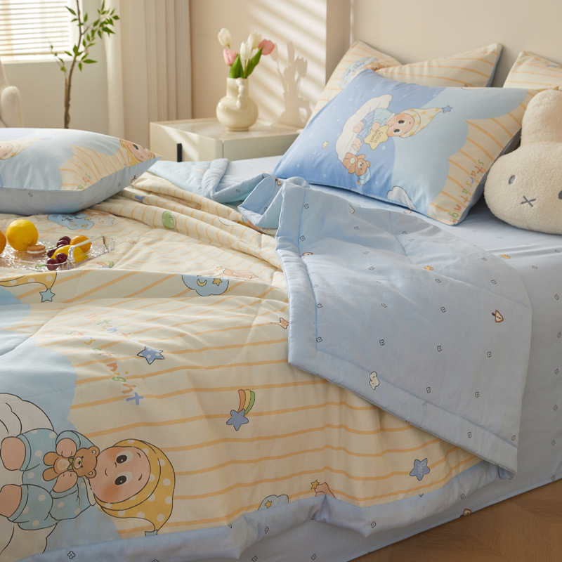 면 여름 이불, 에어컨 이불, 순면 세탁기 사용 가능 여름 이불 코어, 싱글 및 더블 순면 여름 이불