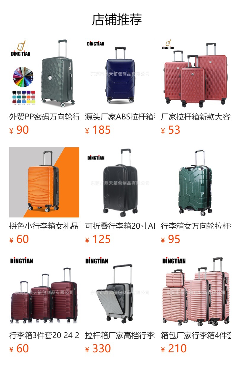 Dingtian 공장 가방 ABS 암호 가방 트롤리 케이스 탑승 케이스 가방 5 피스 세트 지퍼 케이스 대외 무역스토어 가기