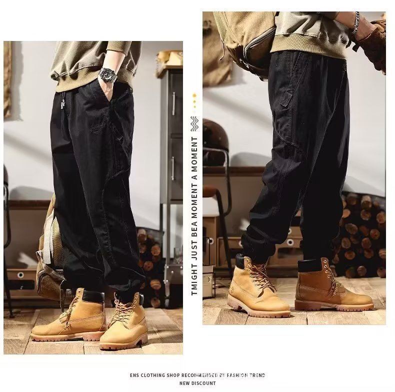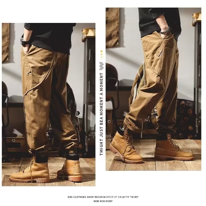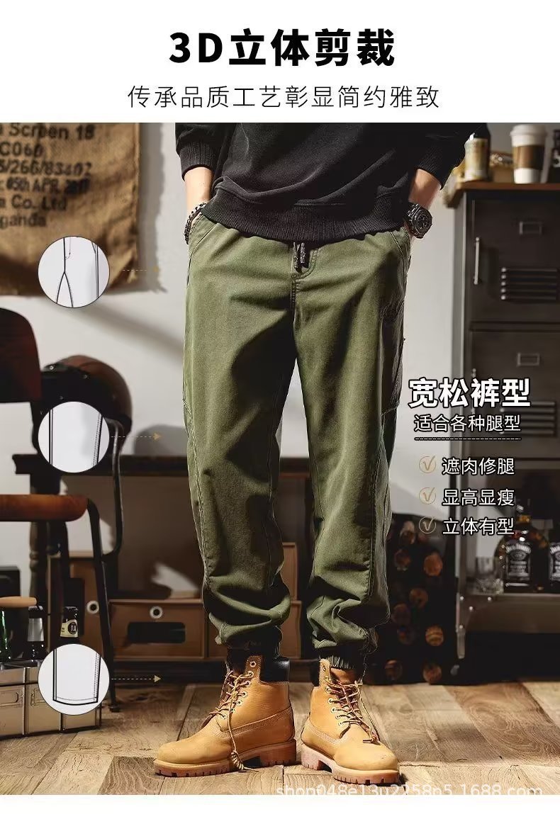 Maillard 남성 봄, 가을 캐주얼 루즈 스포츠 내마모성 작업복 남성 바지 남성 아메리칸 하이 스트리트 다용도 하렘 레깅스스토어 가기