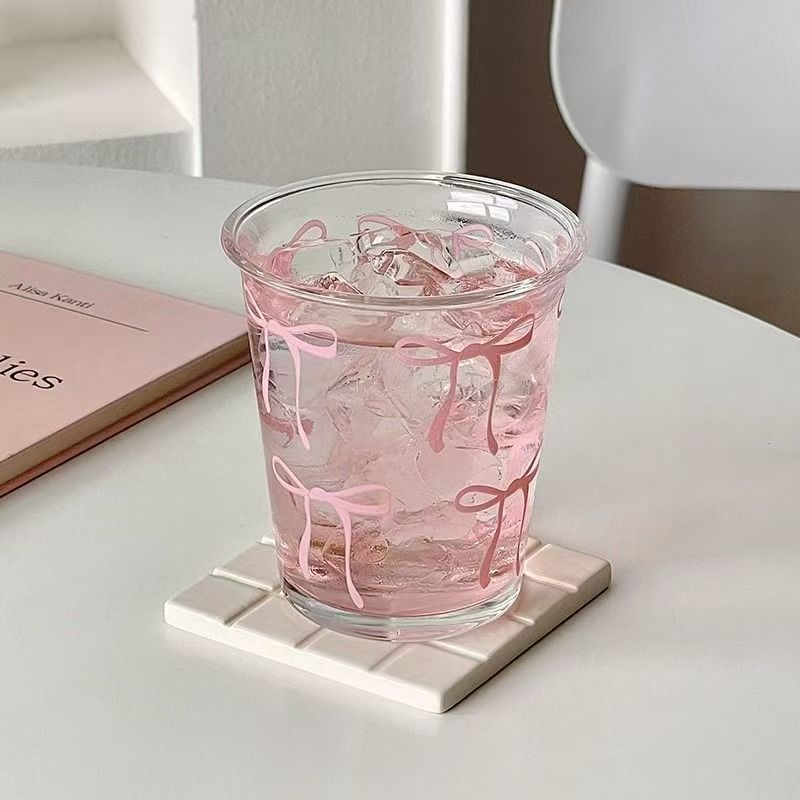 니치 디자인 소녀 귀여운 리본 도트 무늬 밀크 커피 아침 식사 투명 유리 컵