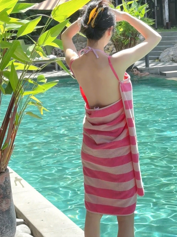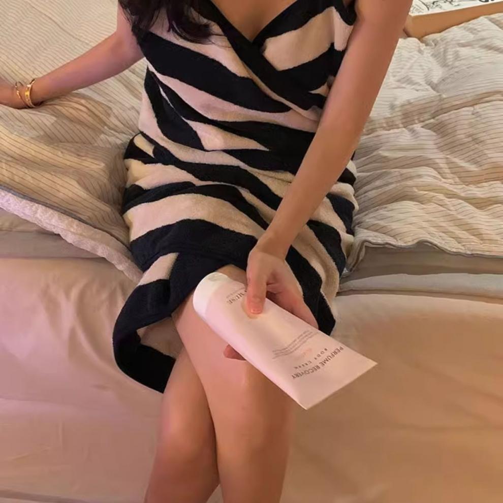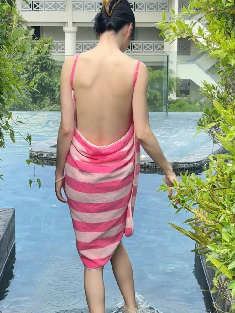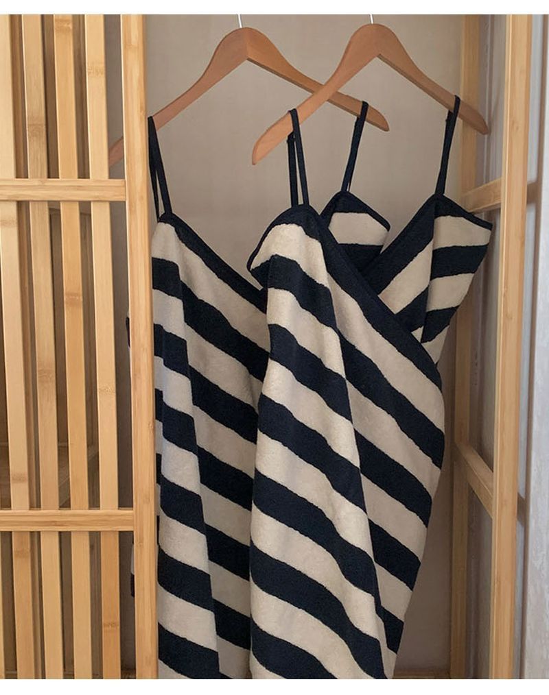 도매 섹시한 웨어러블 목욕 스커트 순수한 욕망 스타일 홈 백리스 목욕 가운 새로운 웨어러블 비치 타월 스트라이프 목욕 타월