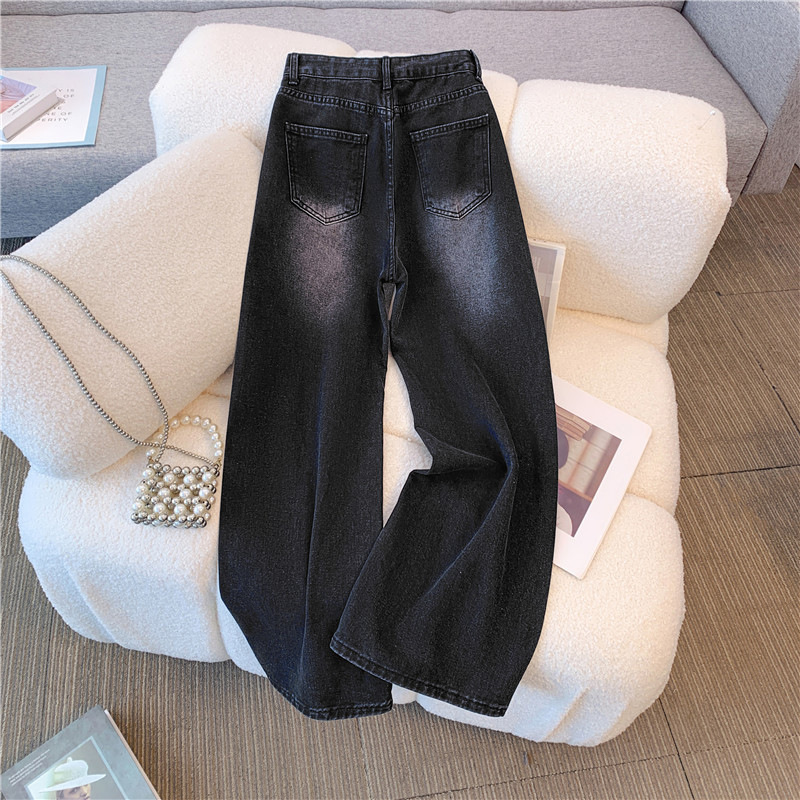 봄/겨울 신상 블랙 와이드 레그 청바지 여성용 스트레이트 루즈핏 슬리밍 하이웨이스트 슬림핏 다용도 드레이프 롱팬츠스토어 가기
