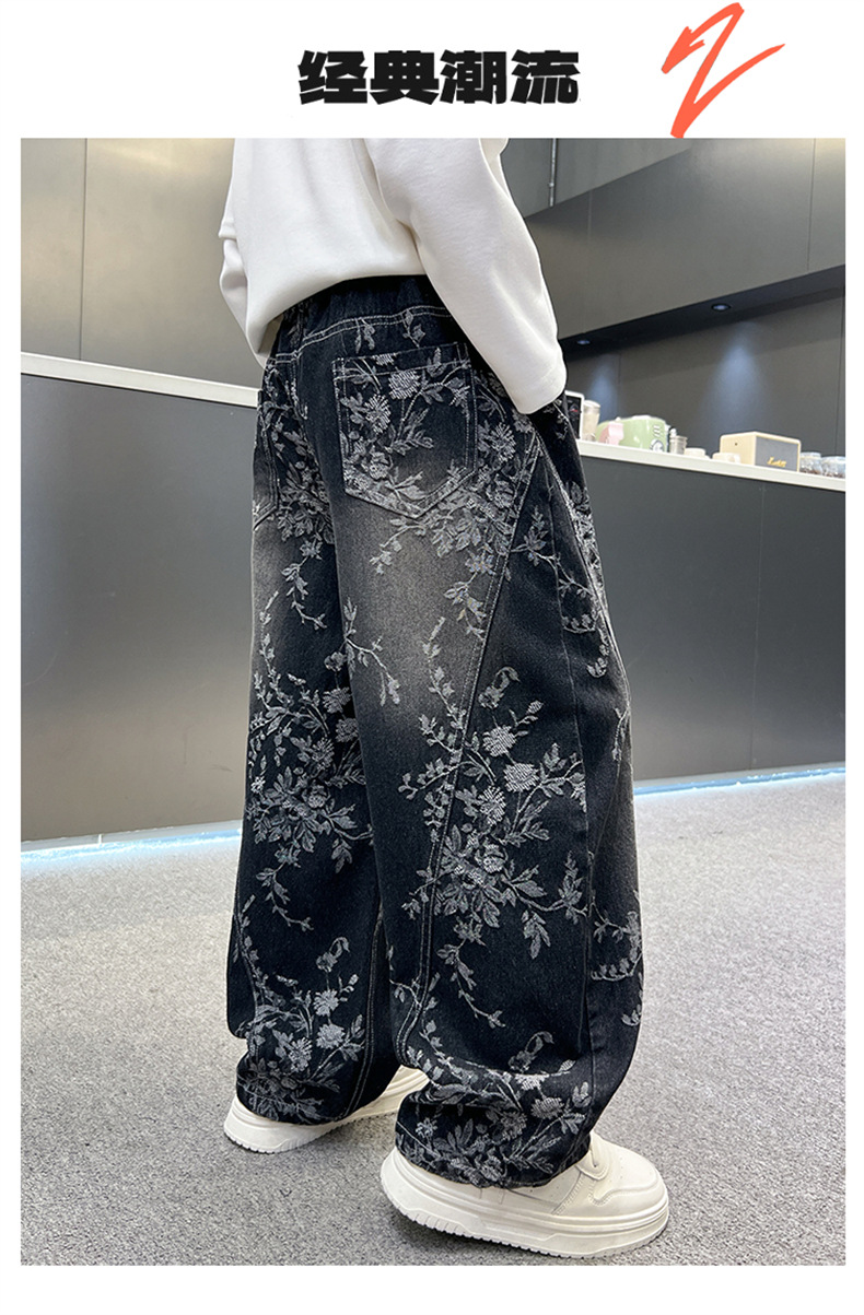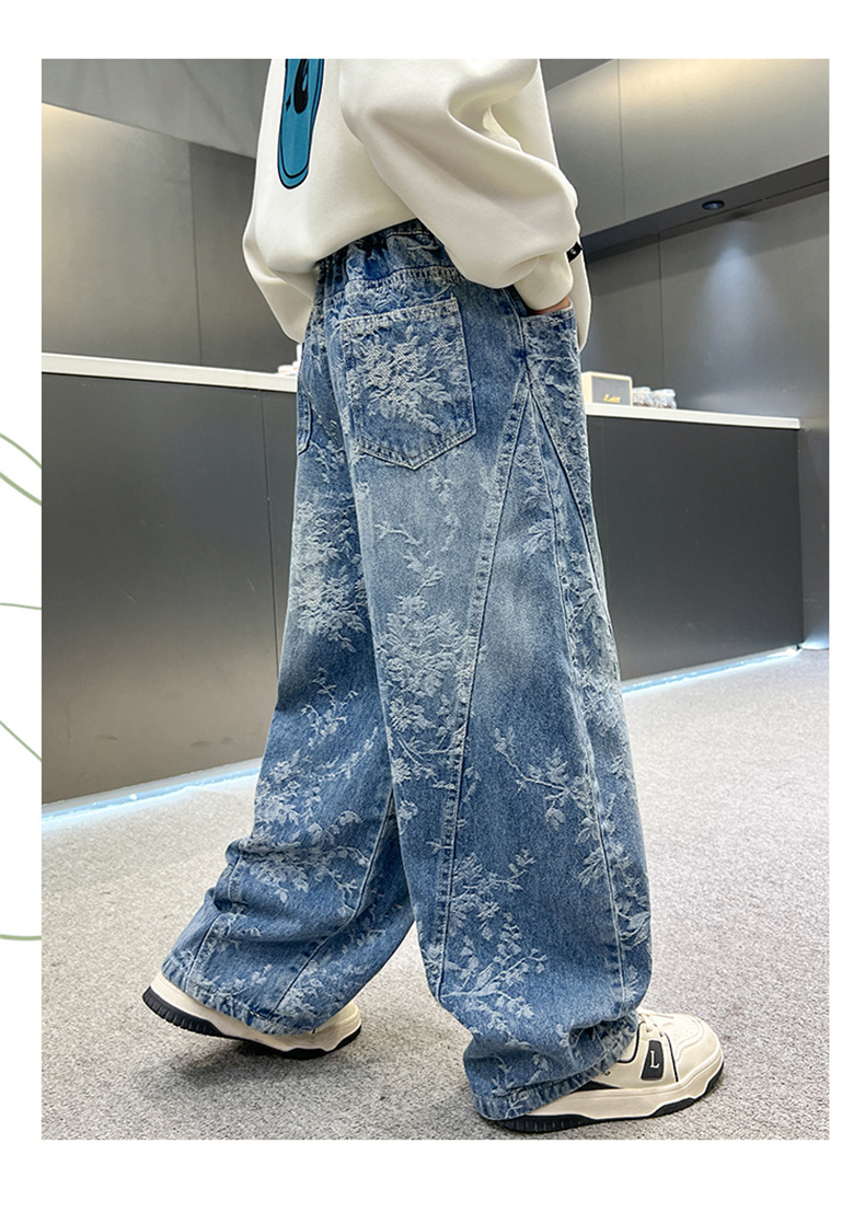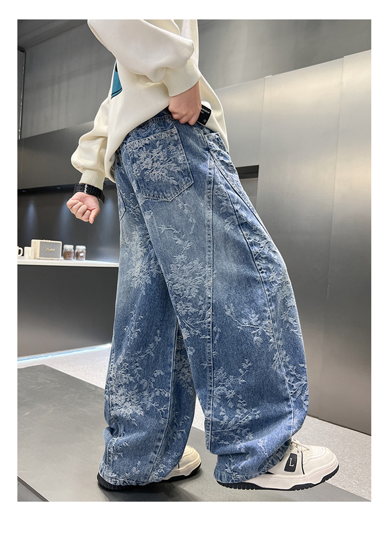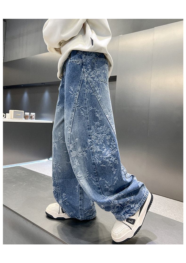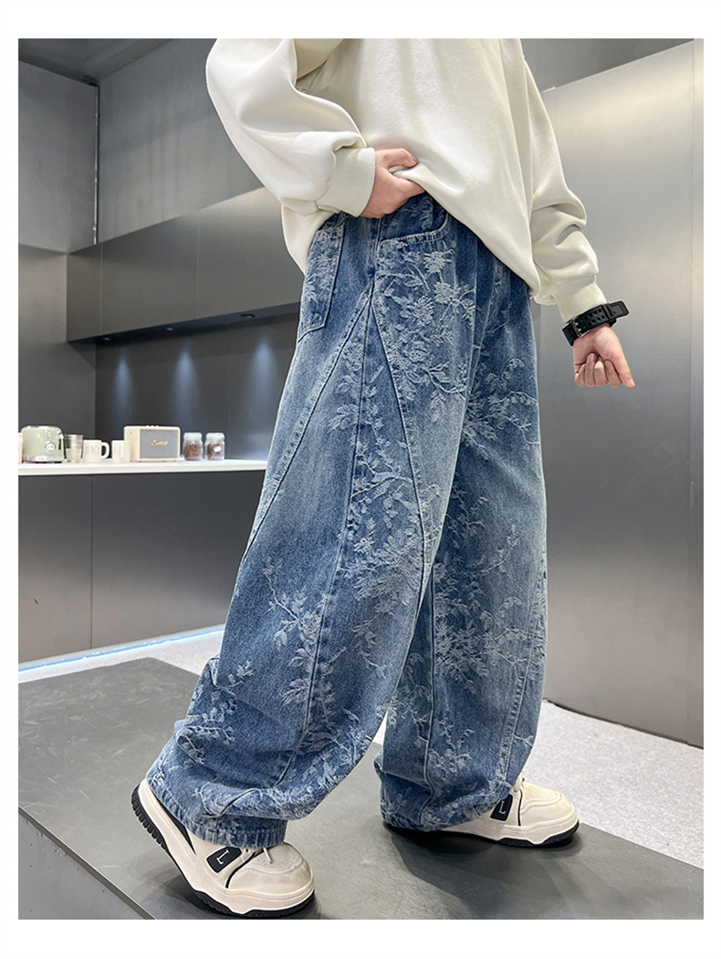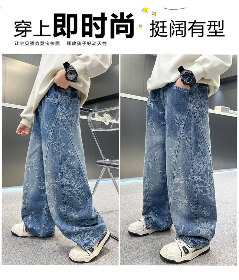 남아용 세련된 청바지 2025 새로운 아동 가을 바지, 멋진 스타일 바지, 루즈한 맞춤형 와이드 팬츠, 트렌디스토어 가기