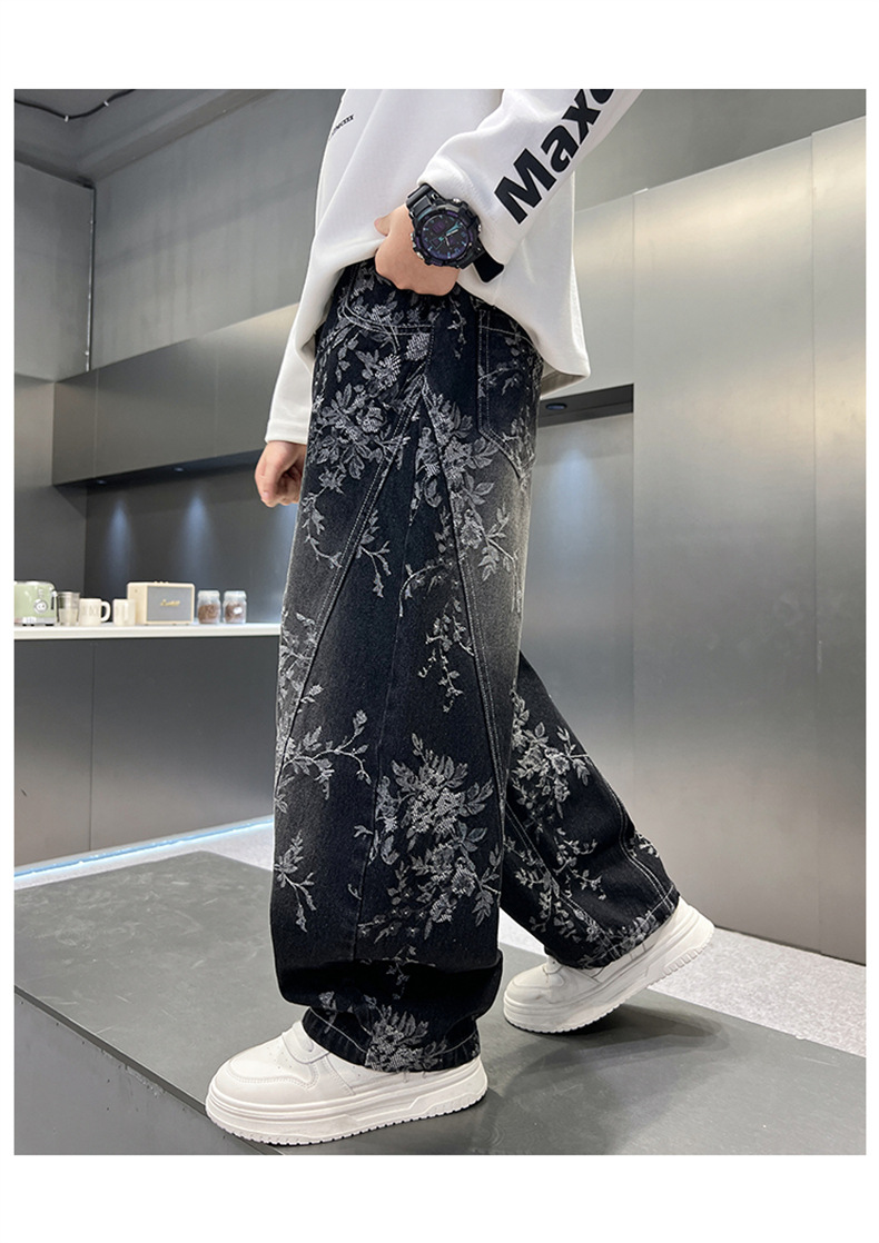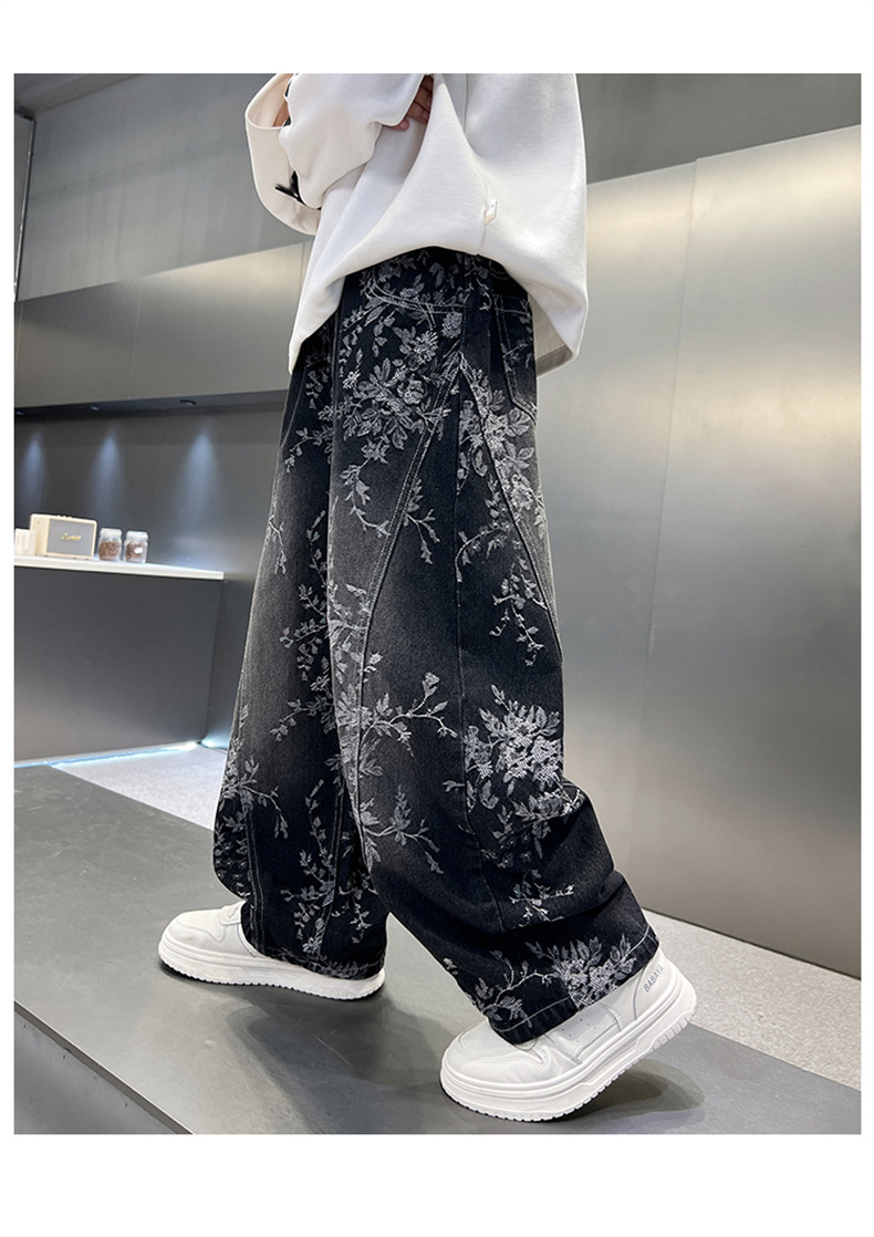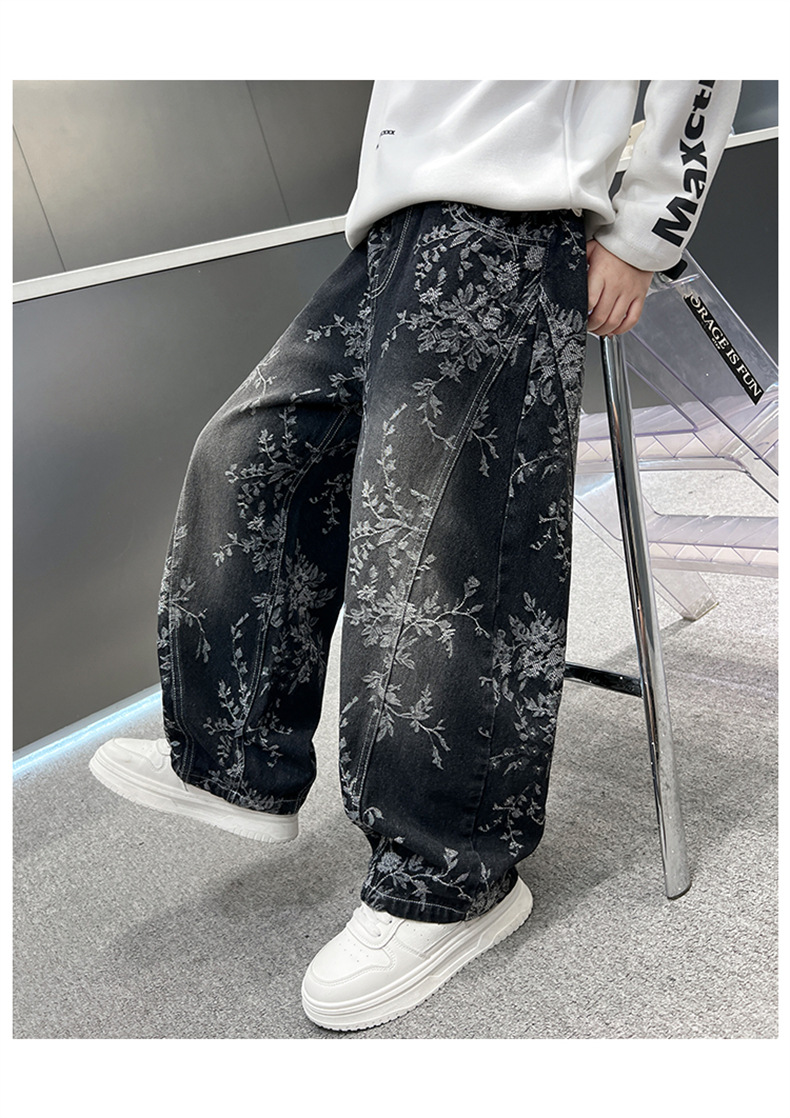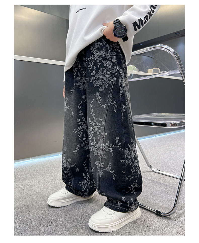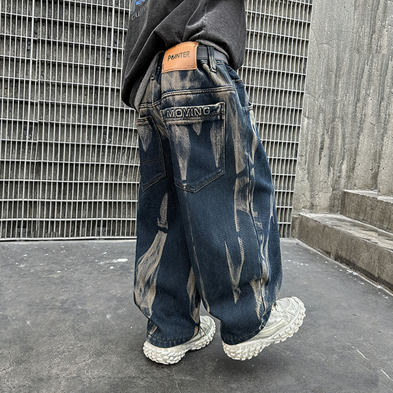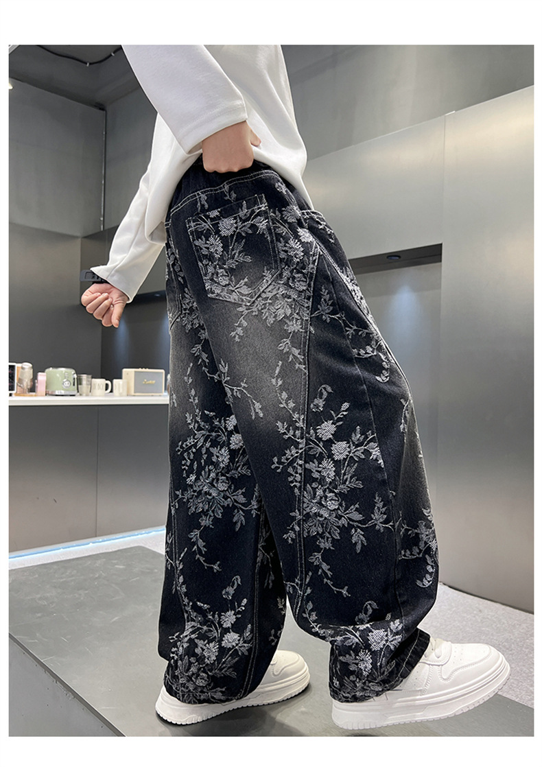 남아용 세련된 청바지 2025 새로운 아동 가을 바지, 멋진 스타일 바지, 루즈한 맞춤형 와이드 팬츠, 트렌디스토어 가기