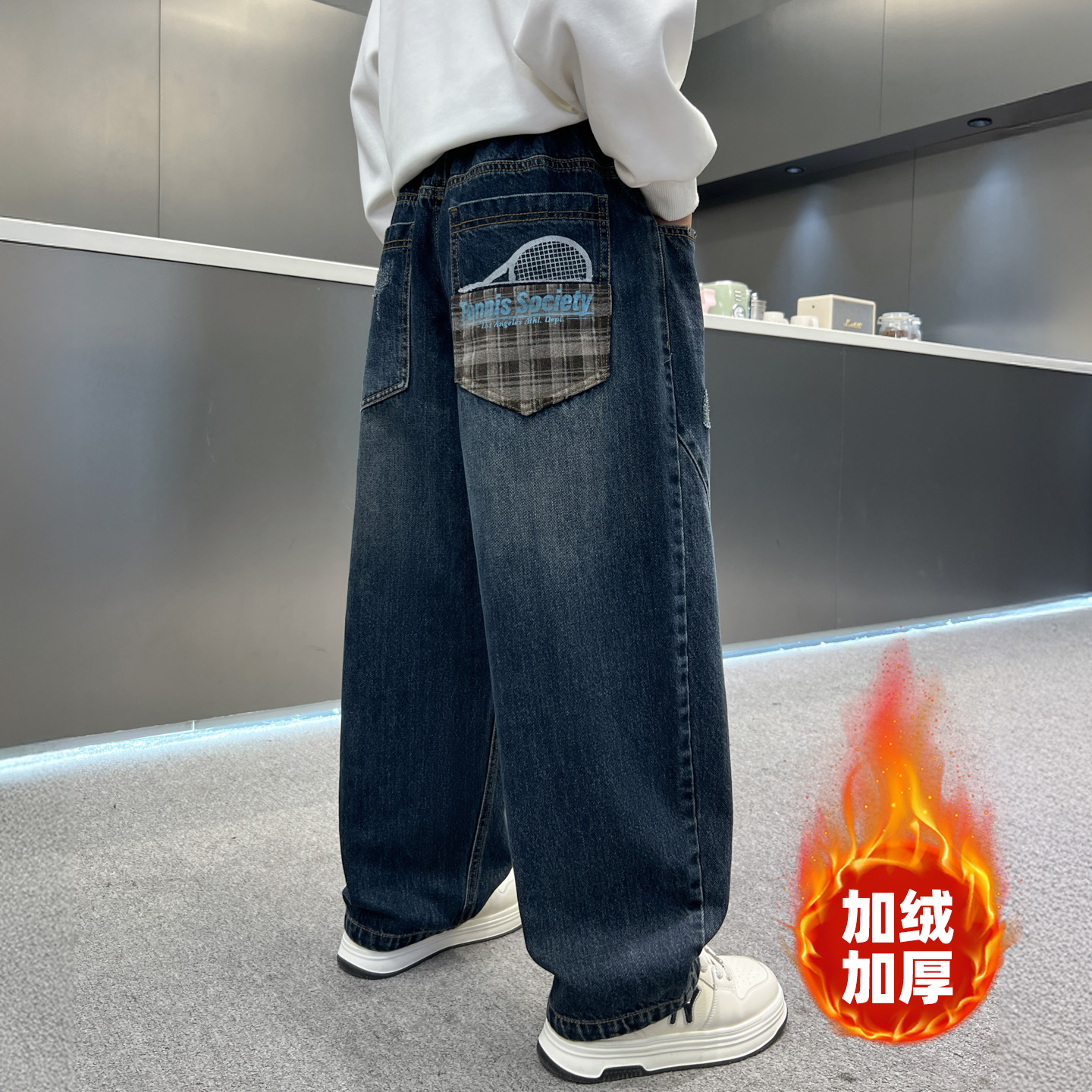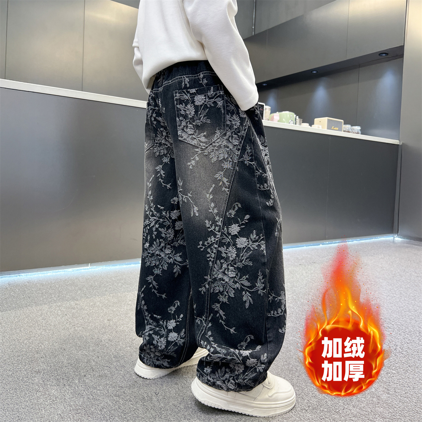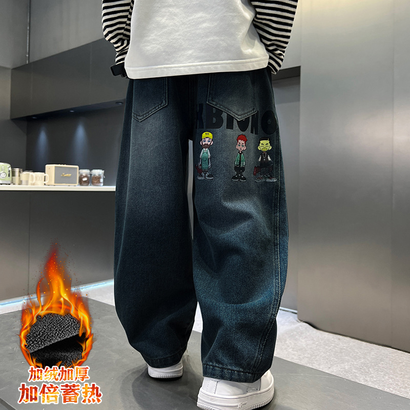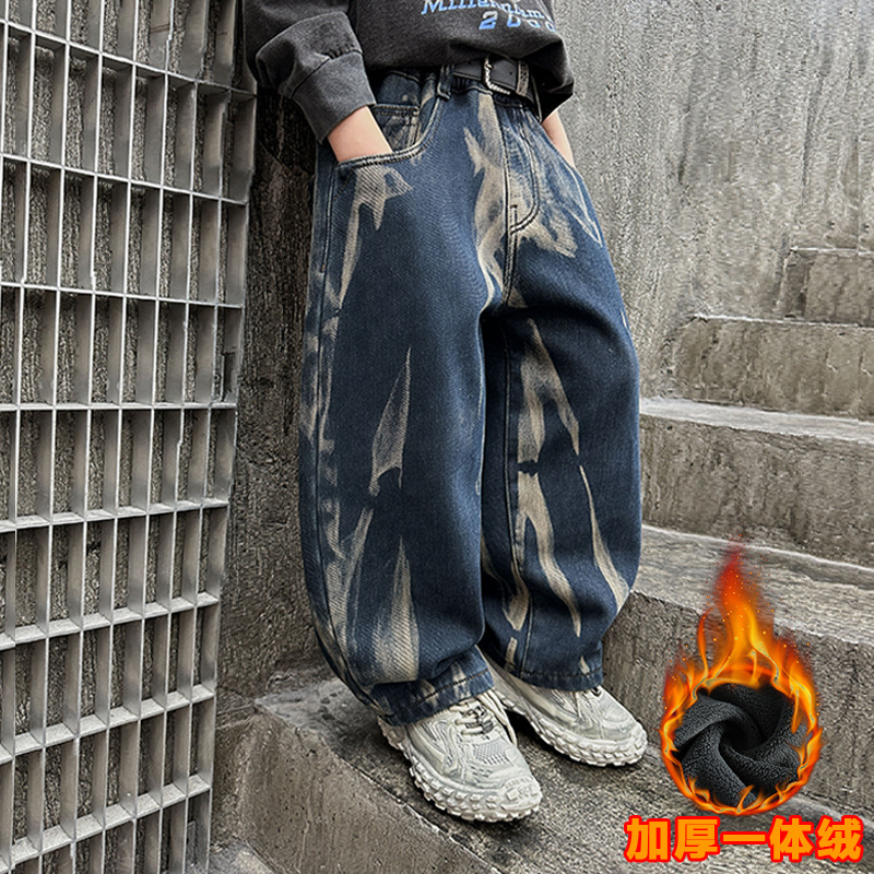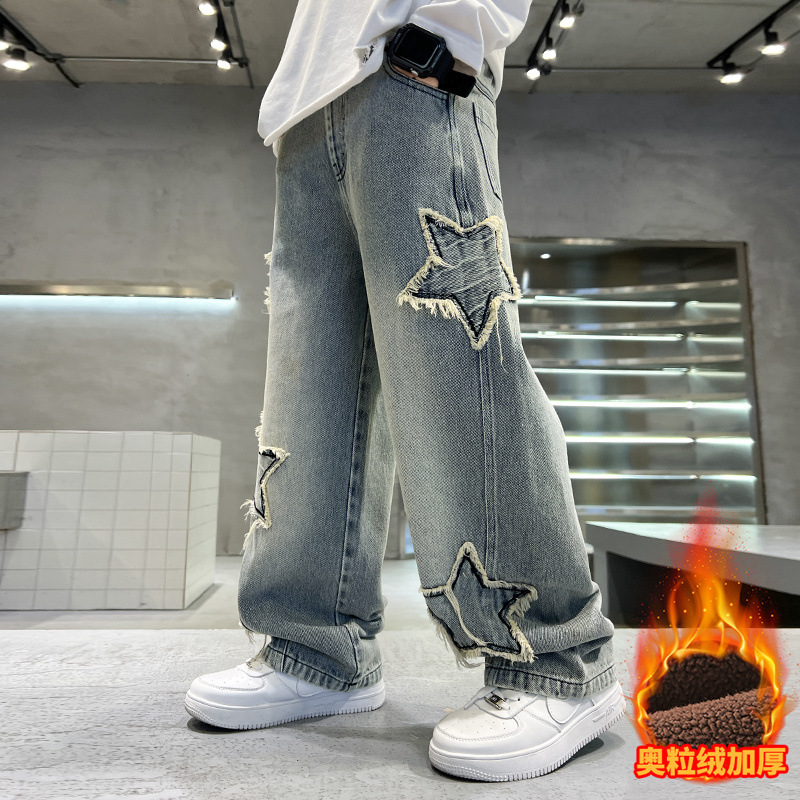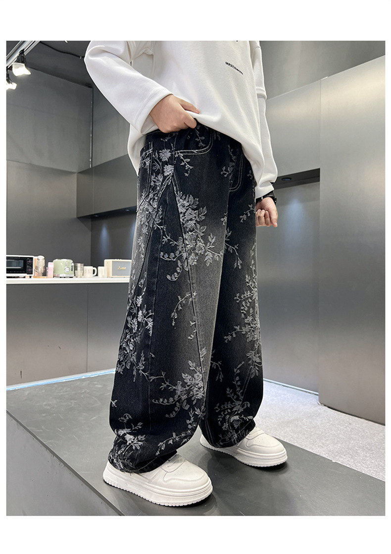 남아용 세련된 청바지 2025 새로운 아동 가을 바지, 멋진 스타일 바지, 루즈한 맞춤형 와이드 팬츠, 트렌디스토어 가기
