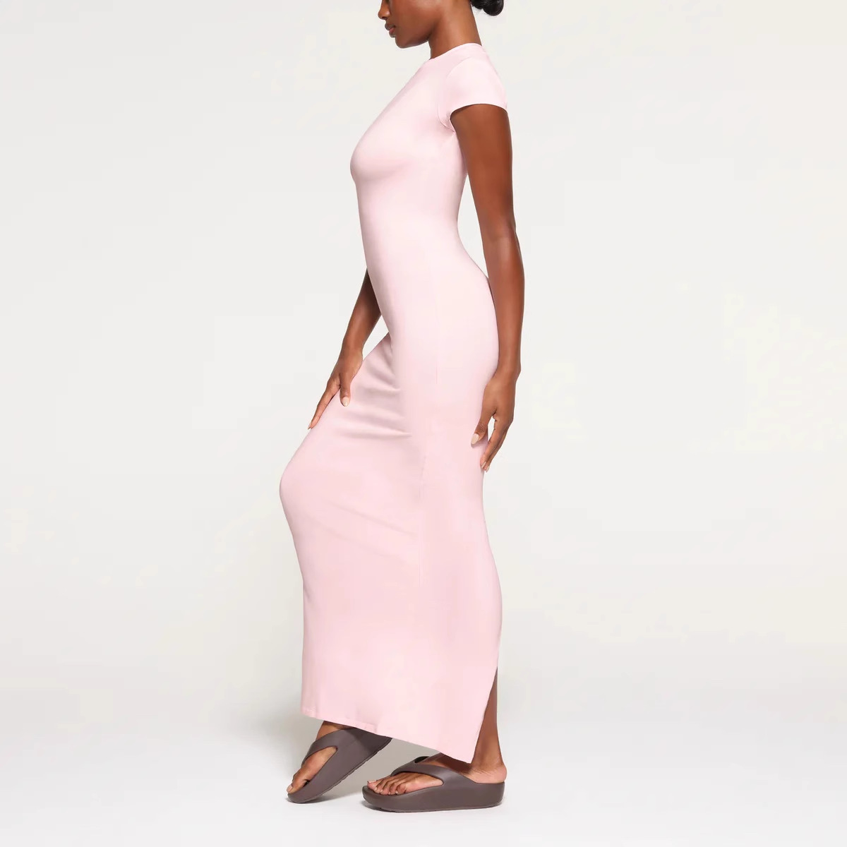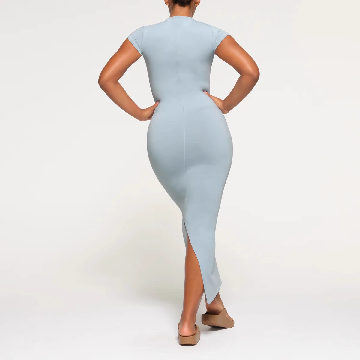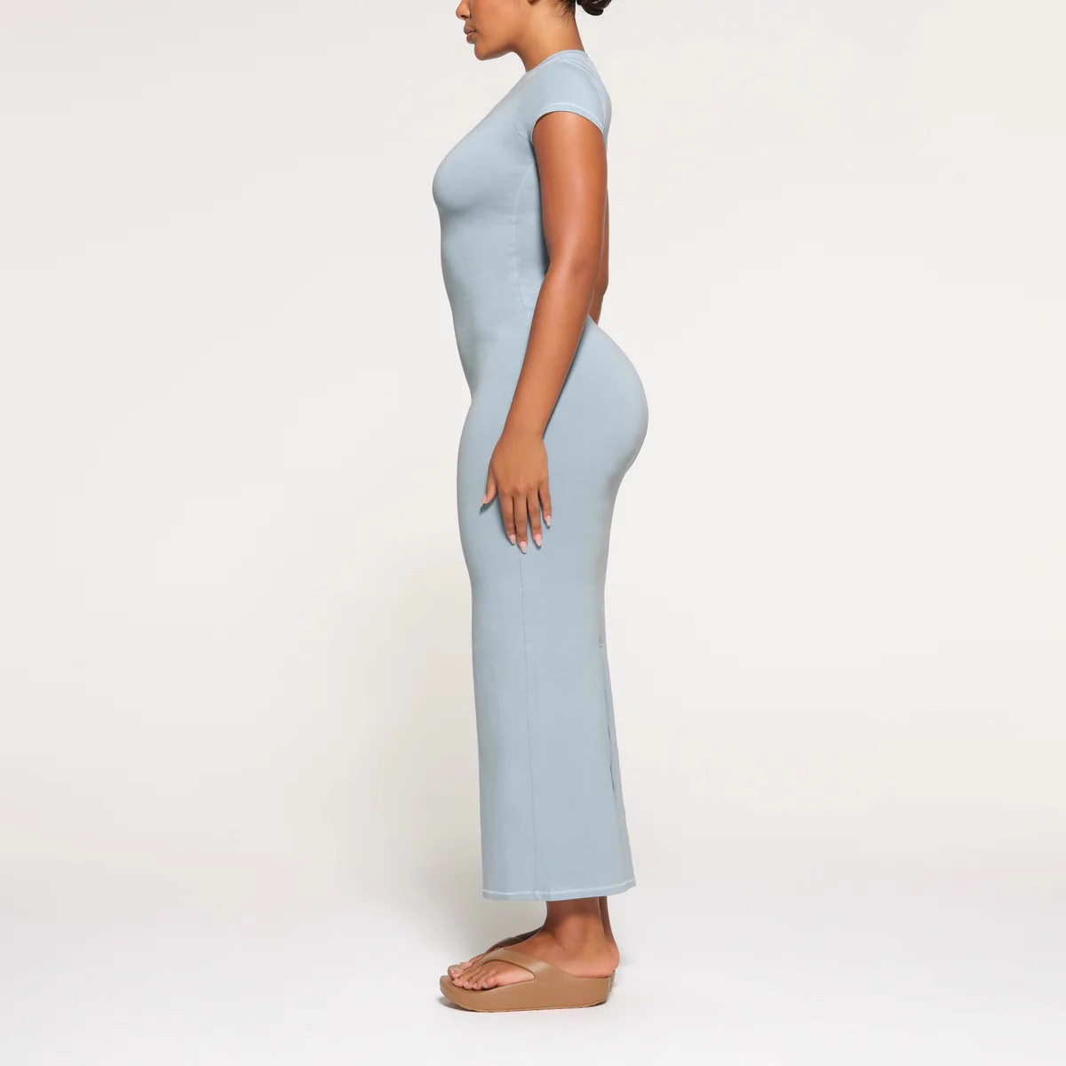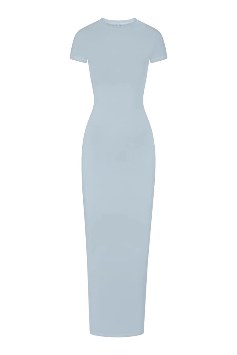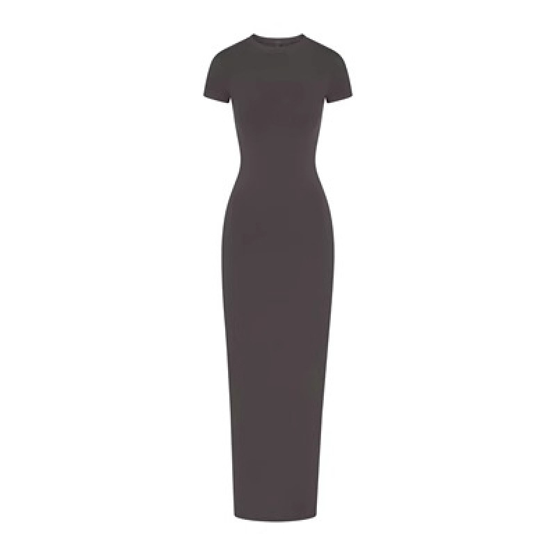 SKIMS Kardashian 새로운 빈티지 긴 원피스 분할 스레드 엉덩이 원피스 짧은 소매 긴 원피스스토어 가기