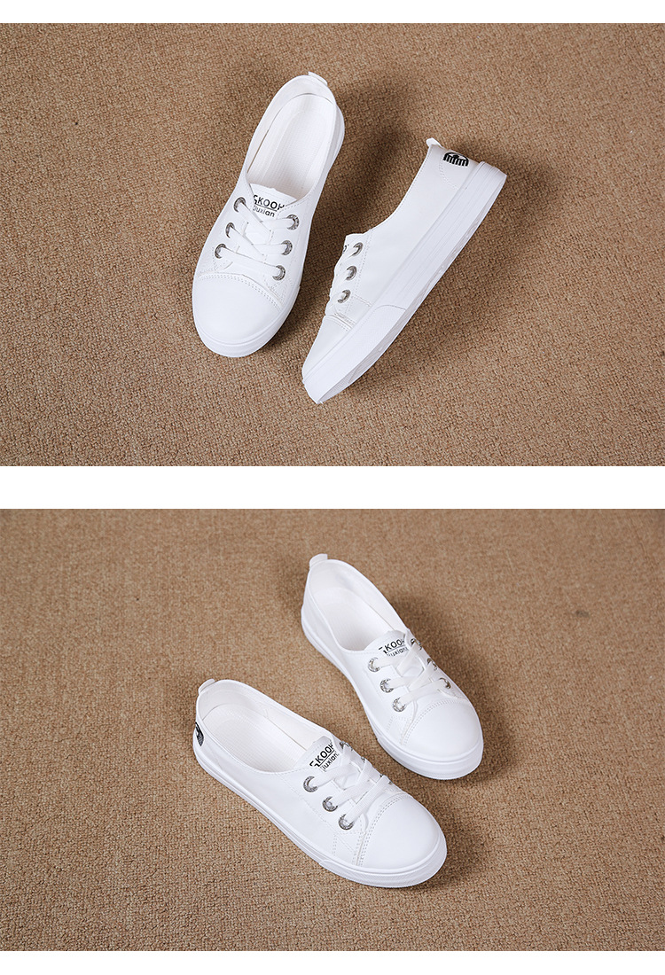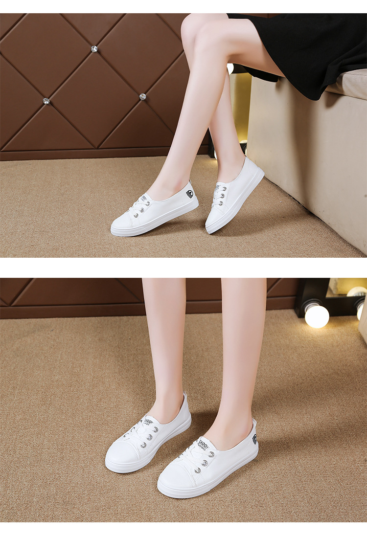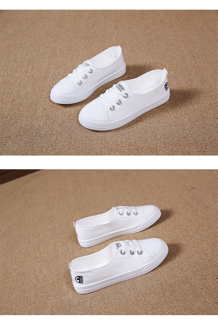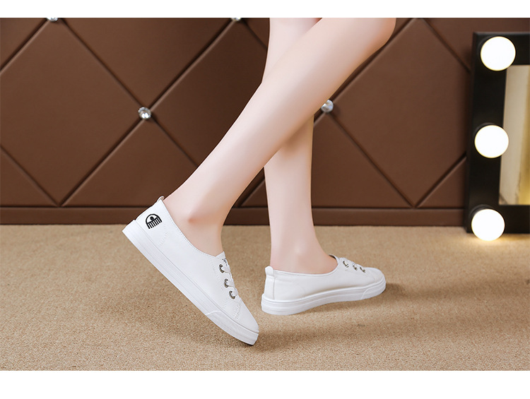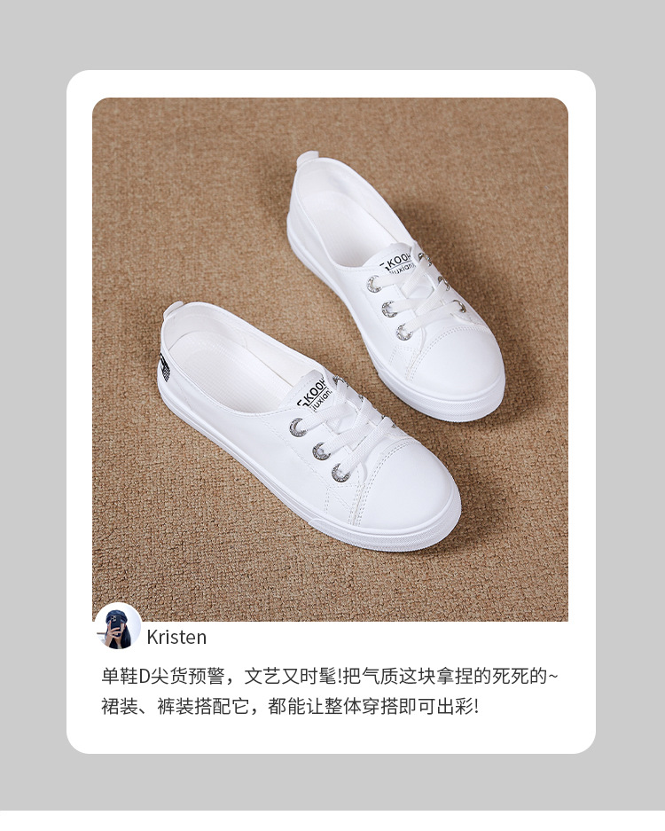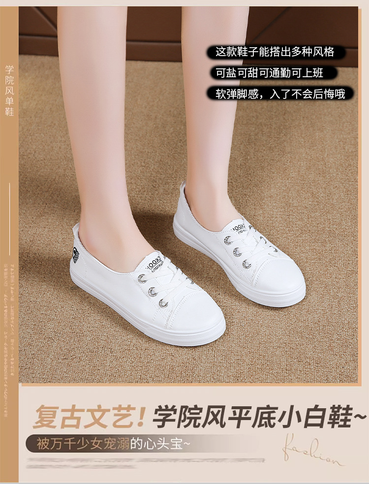 2025 새로운 가죽 흰색 신발 올 매치 플랫 투웨어 슬립 온 캐주얼 여성 신발 봄과 가을 단색 신발스토어 가기