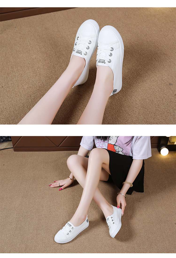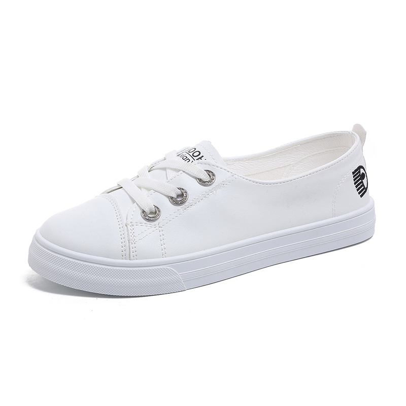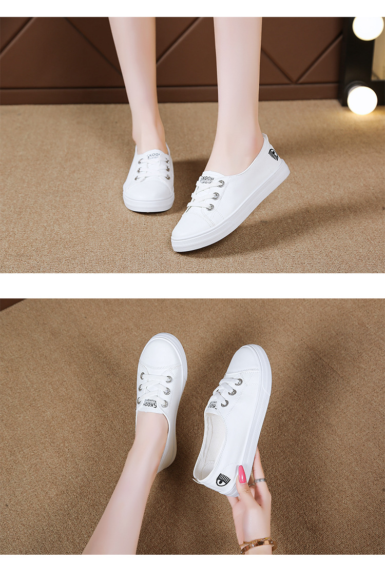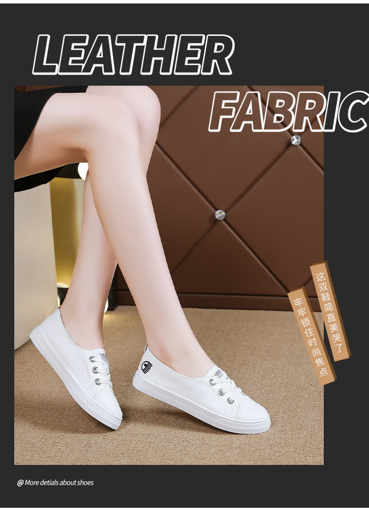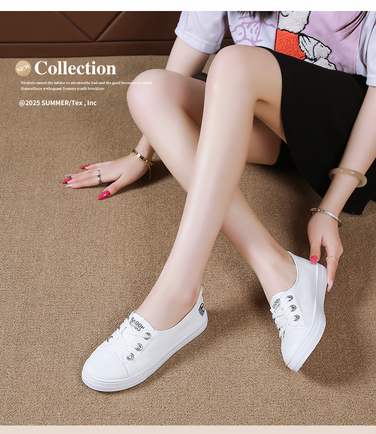 2025 새로운 가죽 흰색 신발 올 매치 플랫 투웨어 슬립 온 캐주얼 여성 신발 봄과 가을 단색 신발