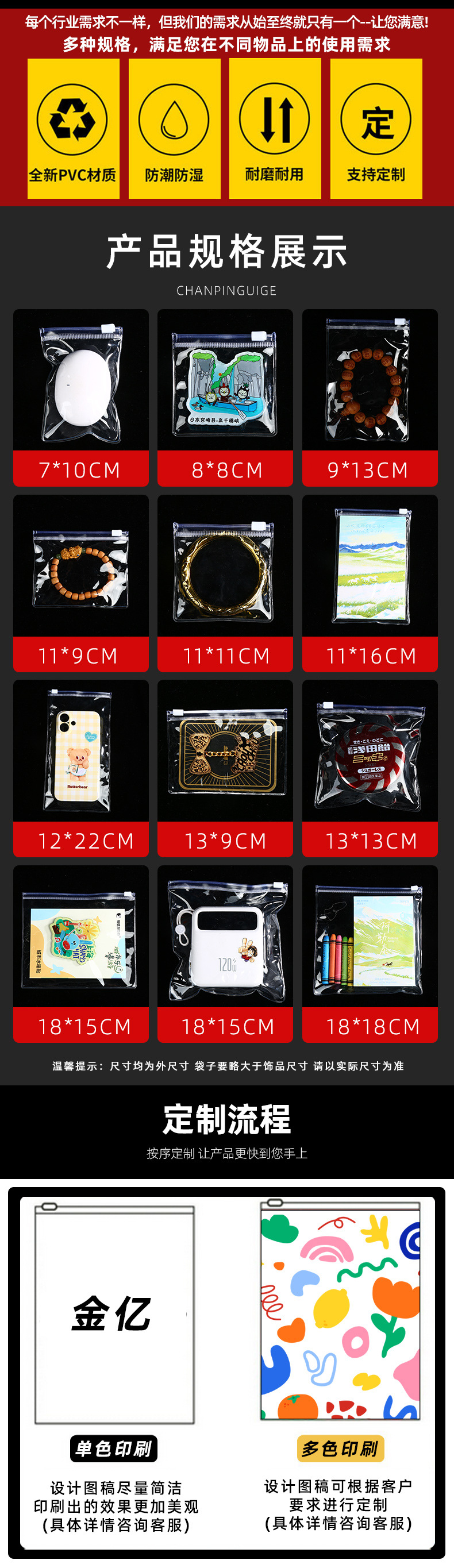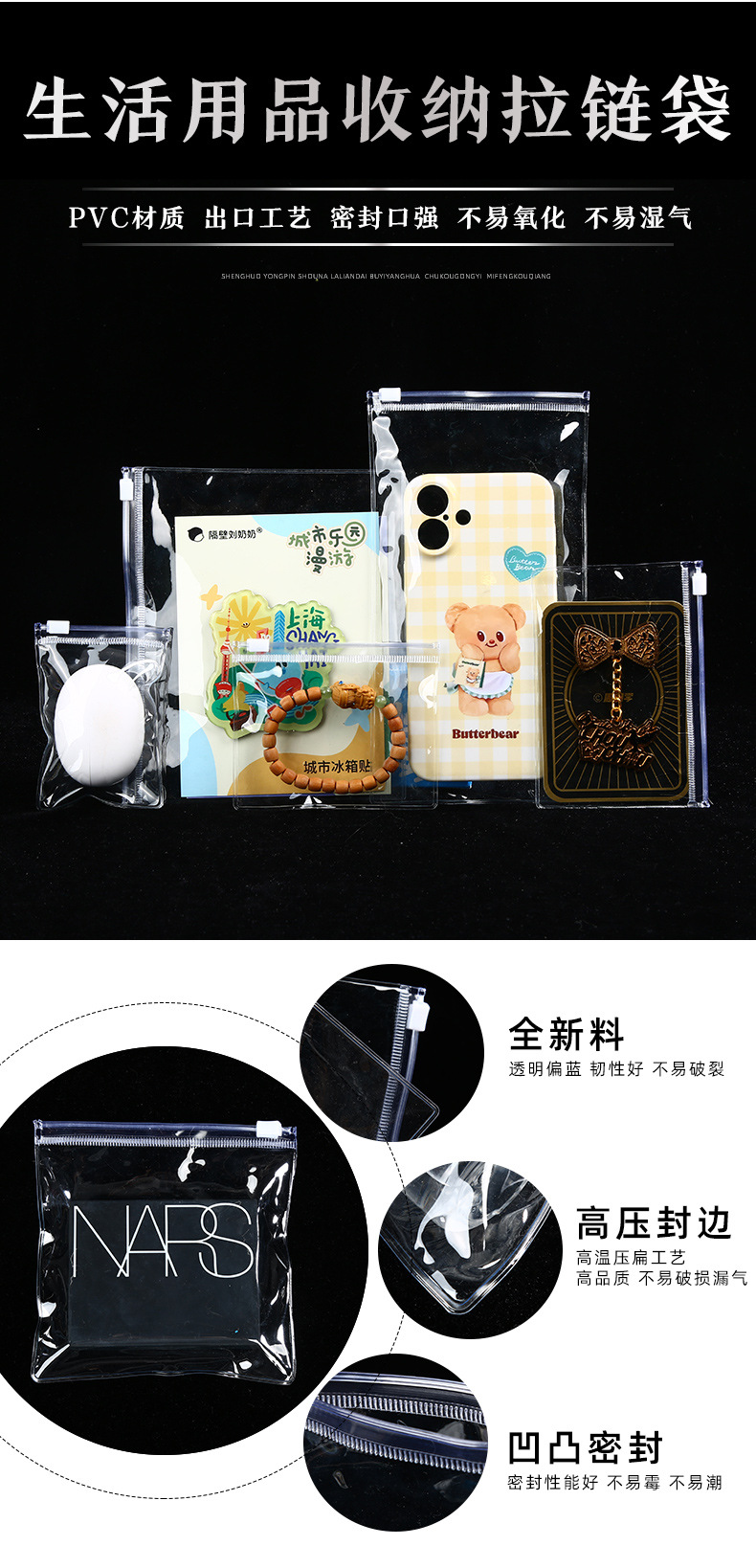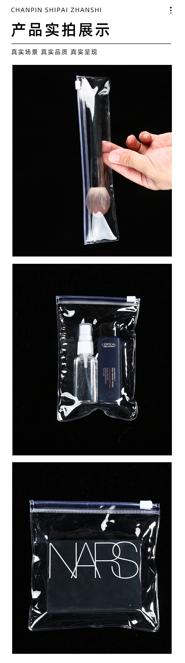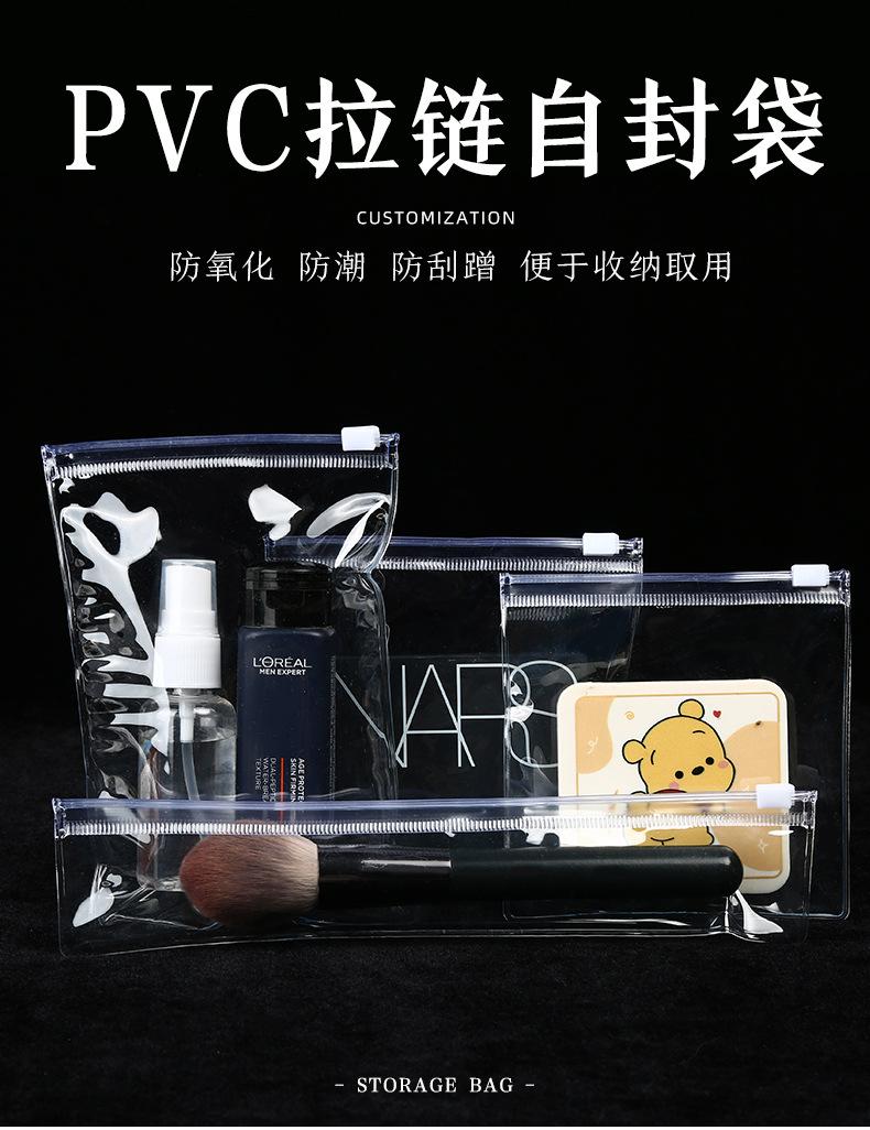 재고 투명한 화장품 지퍼 가방 방진 보석 두꺼운 수분 방지 플라스틱 포장 가방 PVC 보석 가방스토어 가기