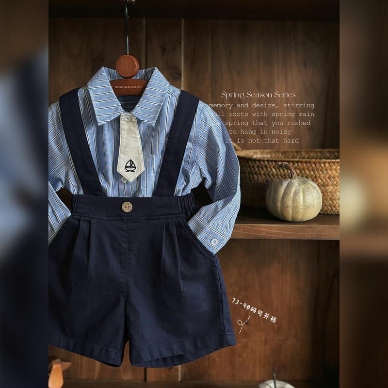 격자 무늬 얇은 줄무늬 남여 여성 풀오버 봄, 가을 정장 어린이 소년 아기 셔츠 정장 생일 유아스토어 가기