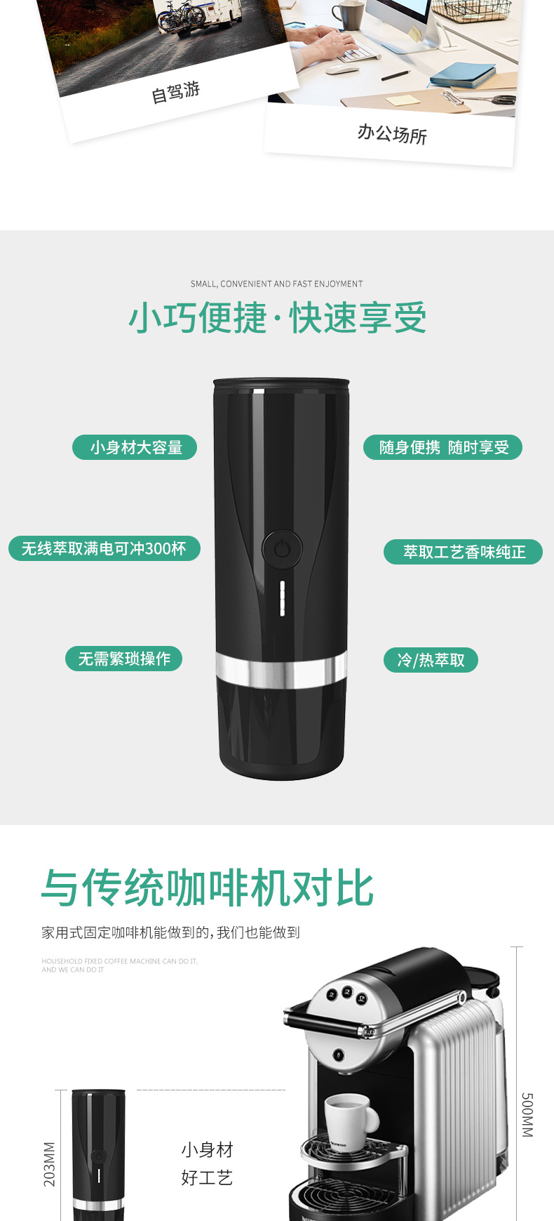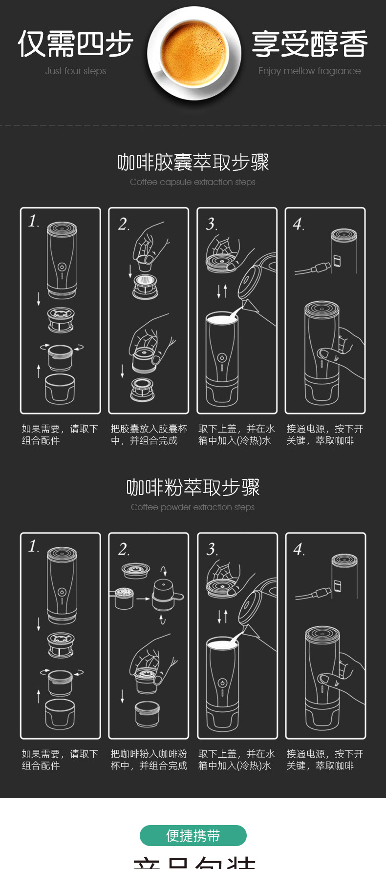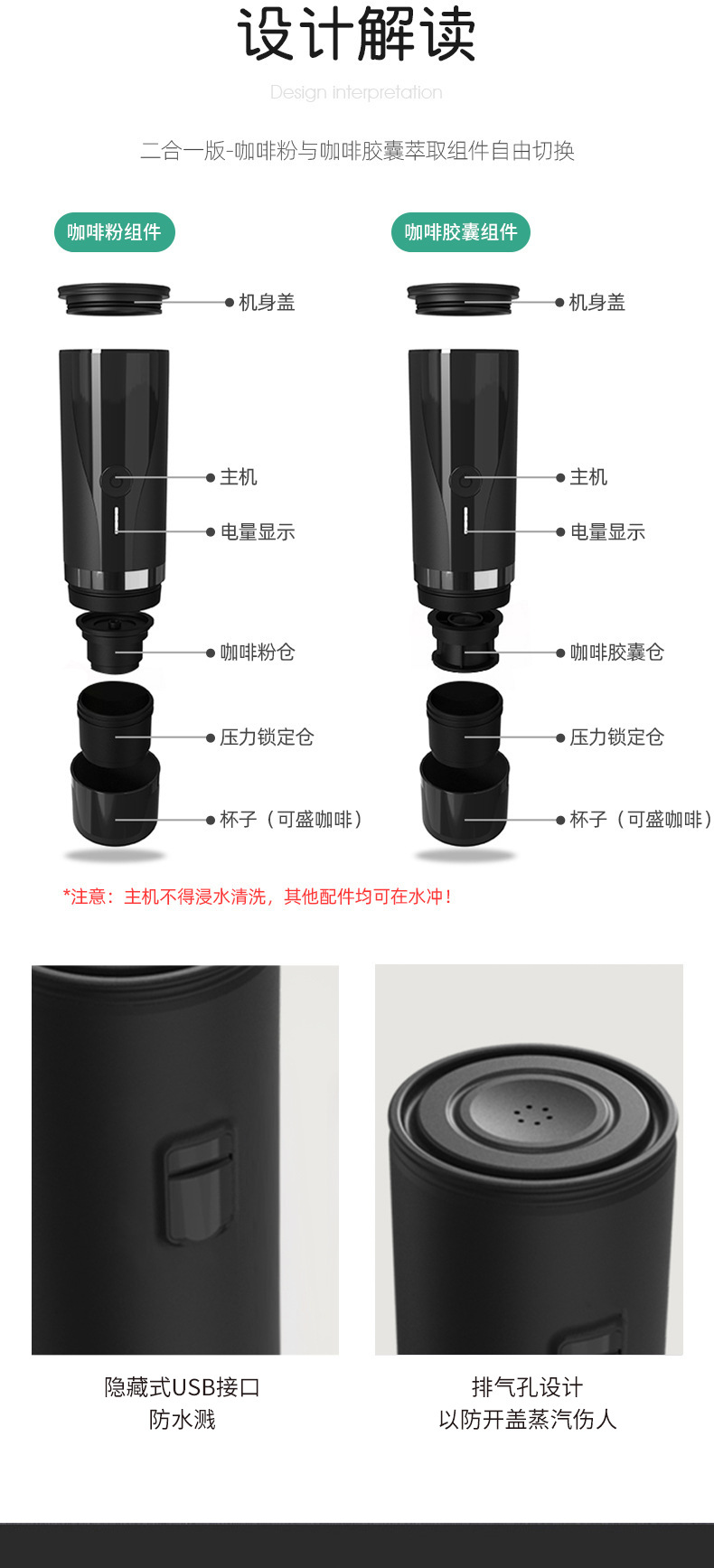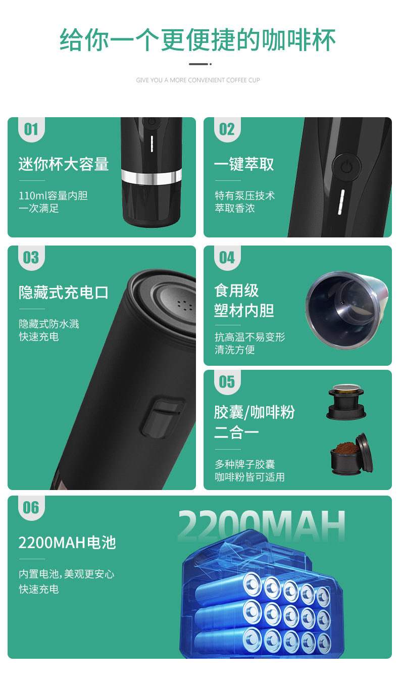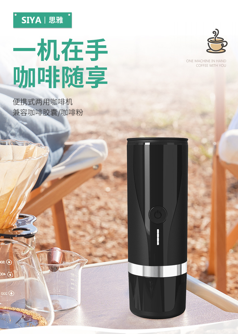 전기 휴대용 커피 머신 완전 자동 충전식 커피 머신 커피 캡슐 사무실 야외 휴대용 그라인더