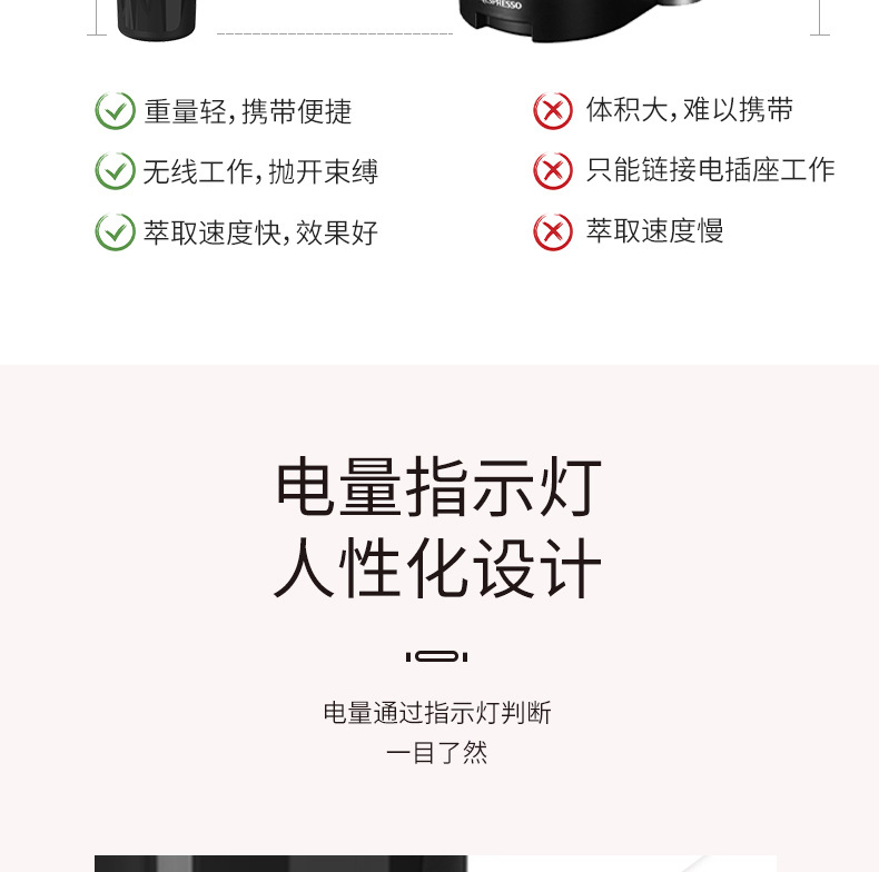 전기 휴대용 커피 머신 완전 자동 충전식 커피 머신 커피 캡슐 사무실 야외 휴대용 그라인더스토어 가기