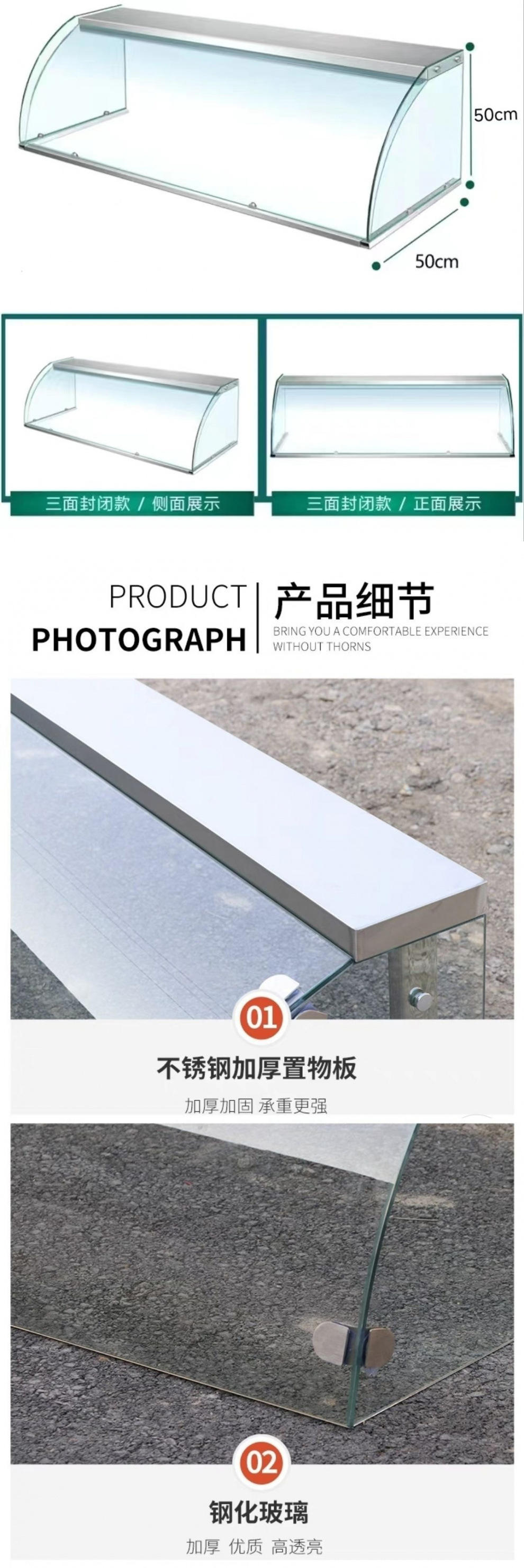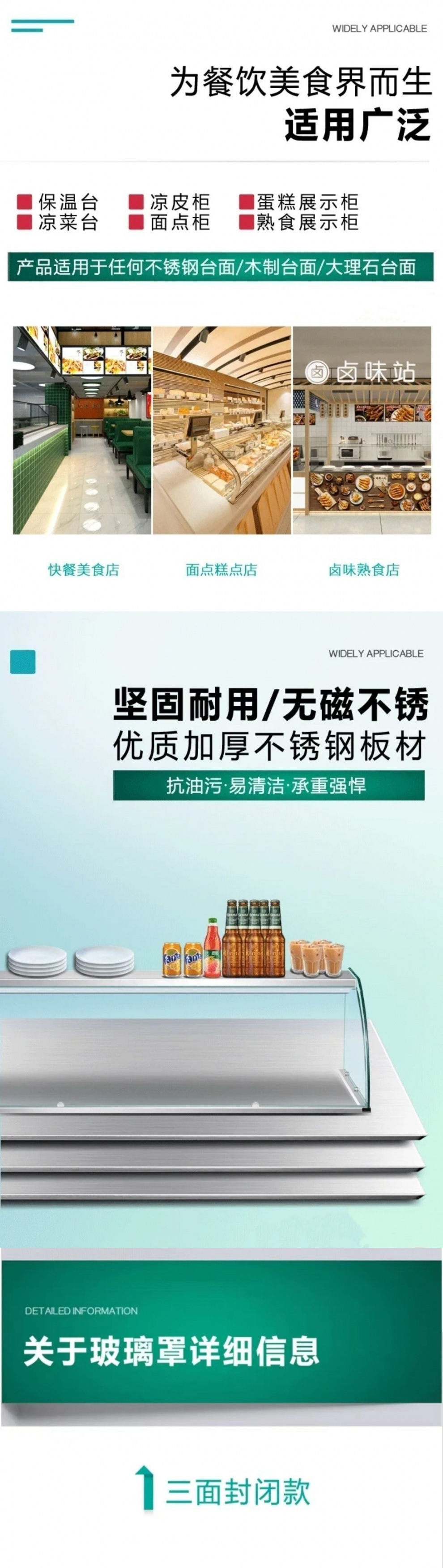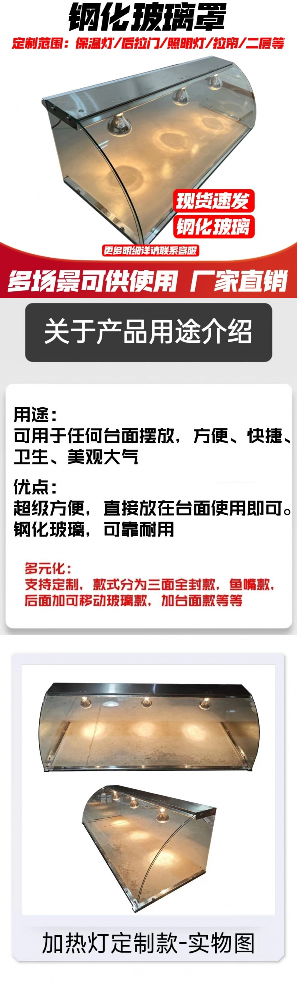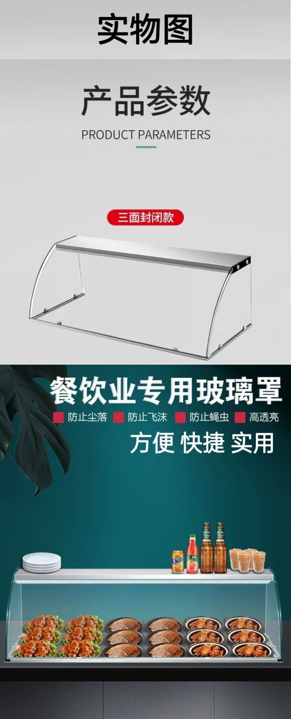 玻璃钢化玻璃商用定制快餐小吃店保温推拉门摆摊玻璃罩熟食防尘罩