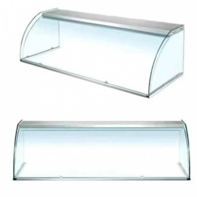 유리 강화 유리 상업용 패스트 푸드 스낵 바 단열 슬라이딩 도어 스톨 유리 커버 델리 더스트 커버