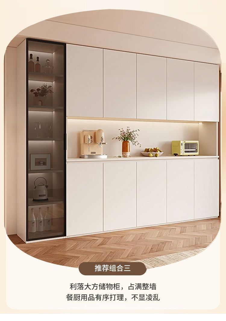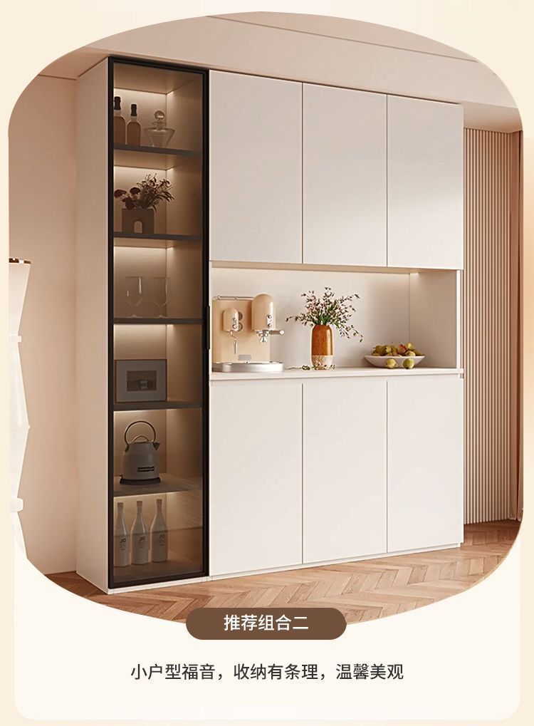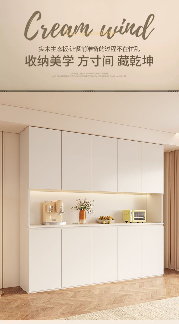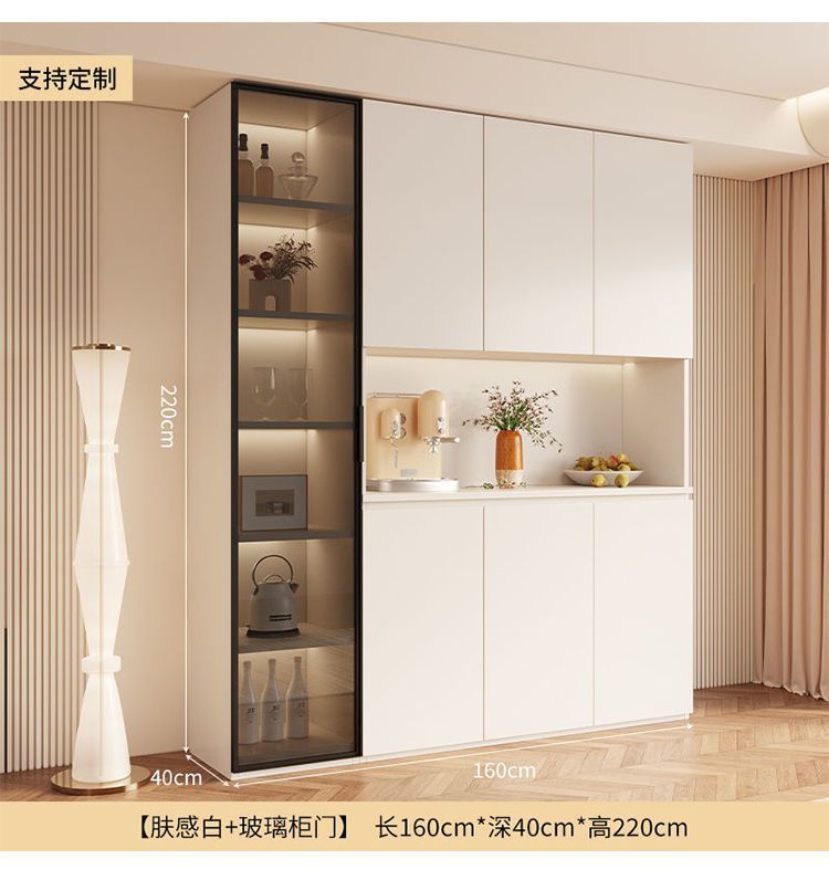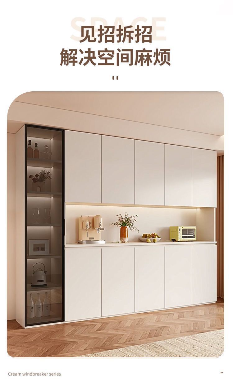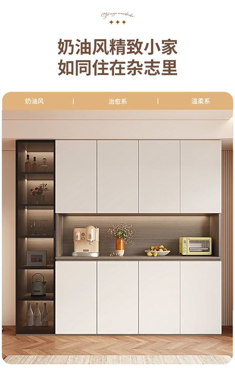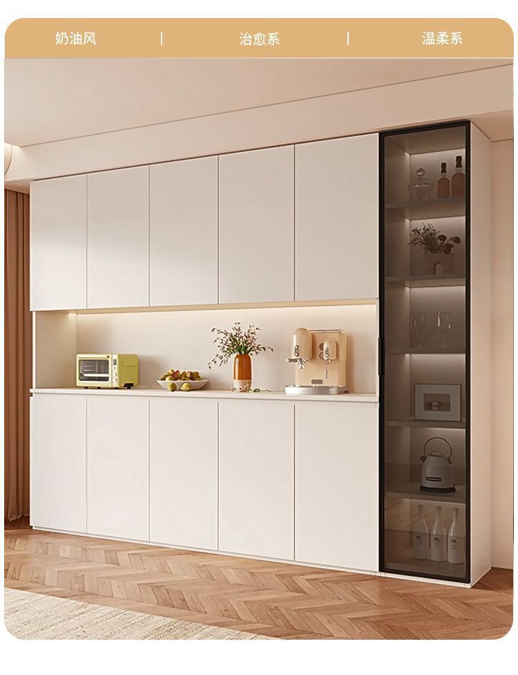 단단한 나무 찬장 벽 일체형 거실 식당 수납 캐비닛 크림 라이트 럭셔리 주방 캐비닛 와인 캐비닛 차 캐비닛