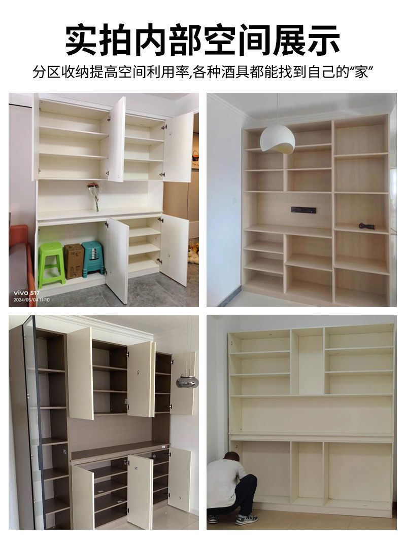 단단한 나무 찬장 벽 일체형 거실 식당 수납 캐비닛 크림 라이트 럭셔리 주방 캐비닛 와인 캐비닛 차 캐비닛스토어 가기