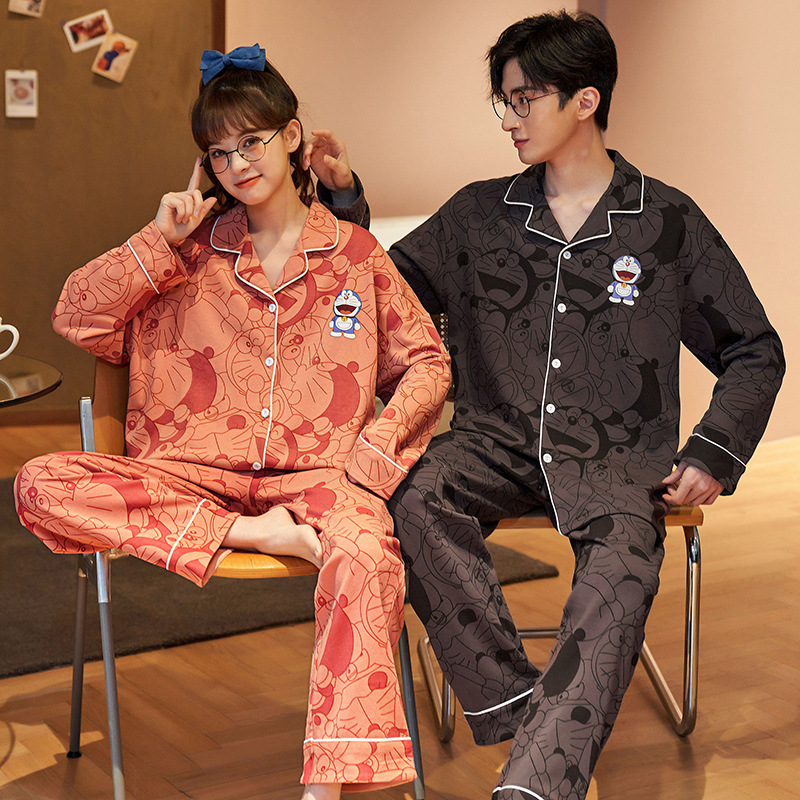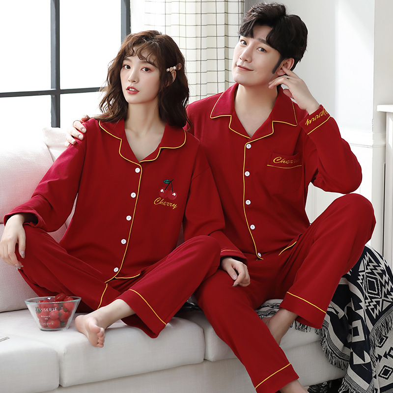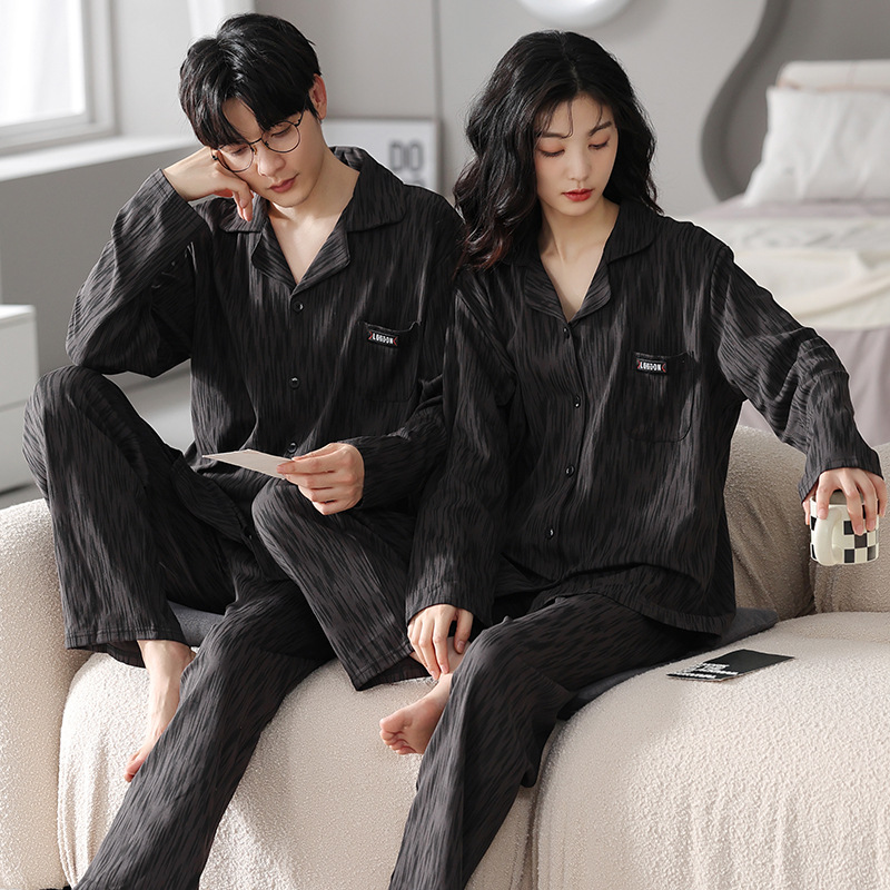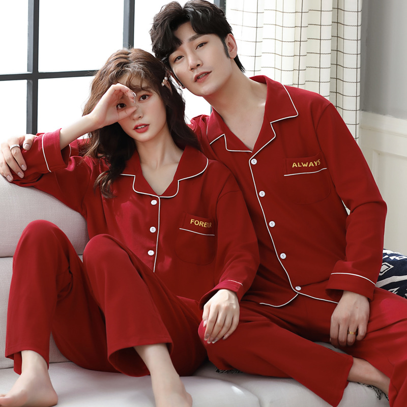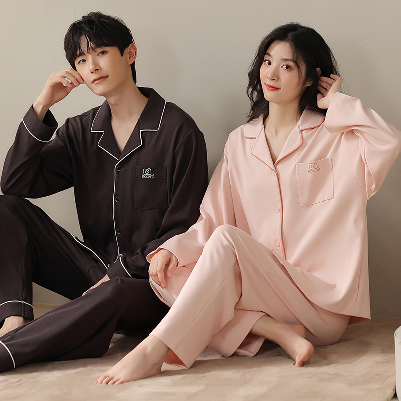 커플 잠옷 순면 봄, 가을 카디건 긴팔 느슨한 대형 가정복 한 남자와 한 여자 투피스 양복