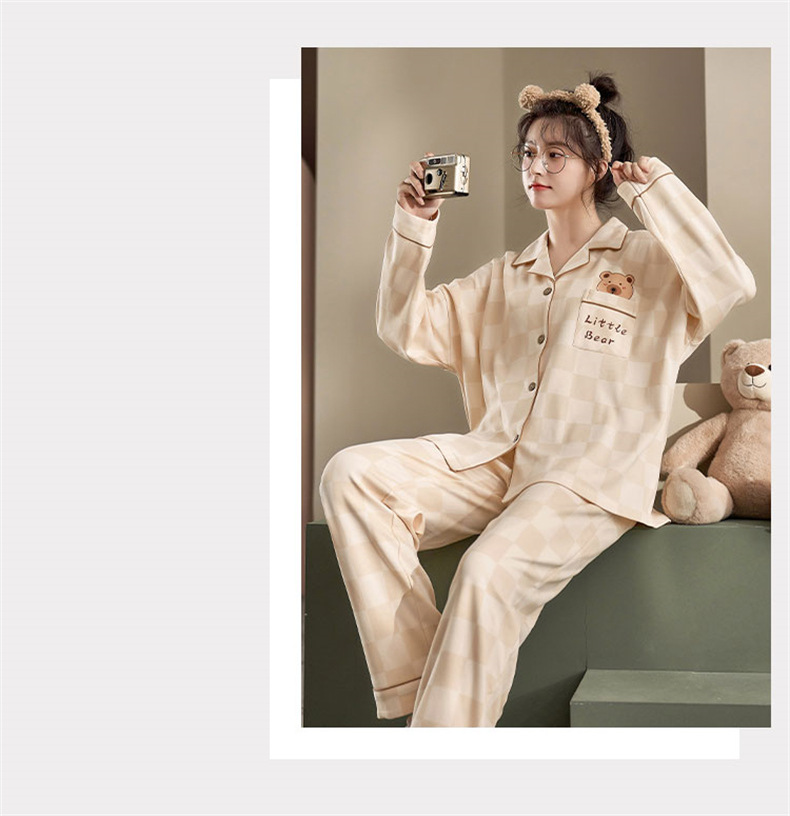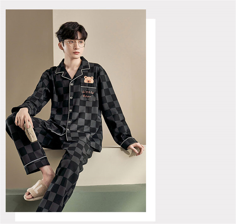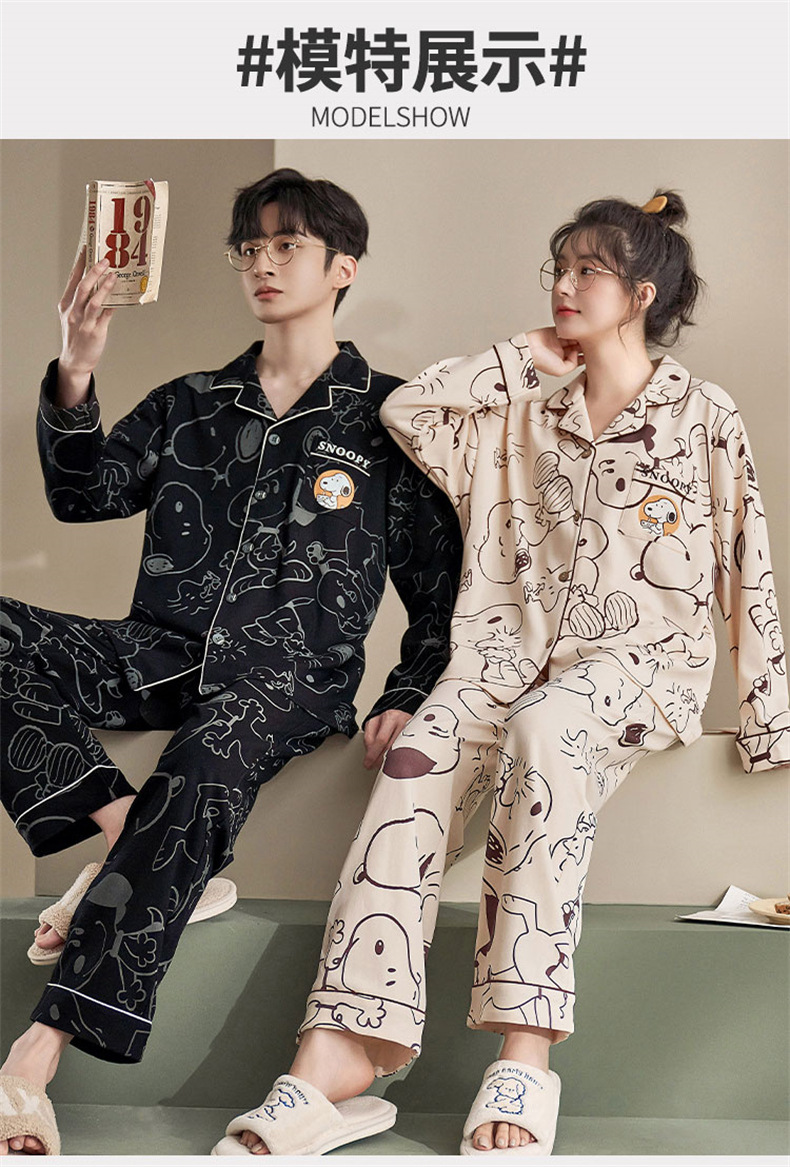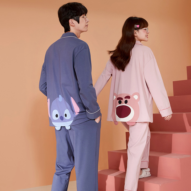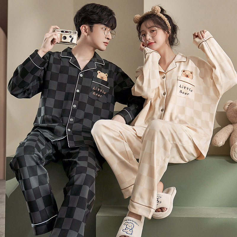 커플 잠옷 순면 봄, 가을 카디건 긴팔 느슨한 대형 가정복 한 남자와 한 여자 투피스 양복스토어 가기