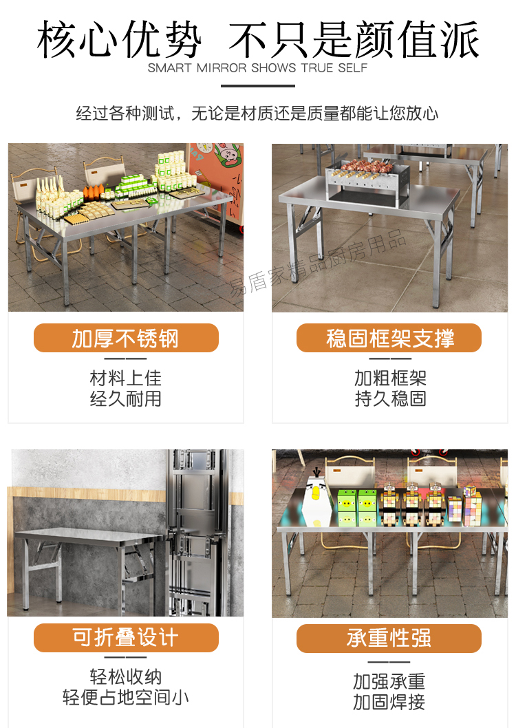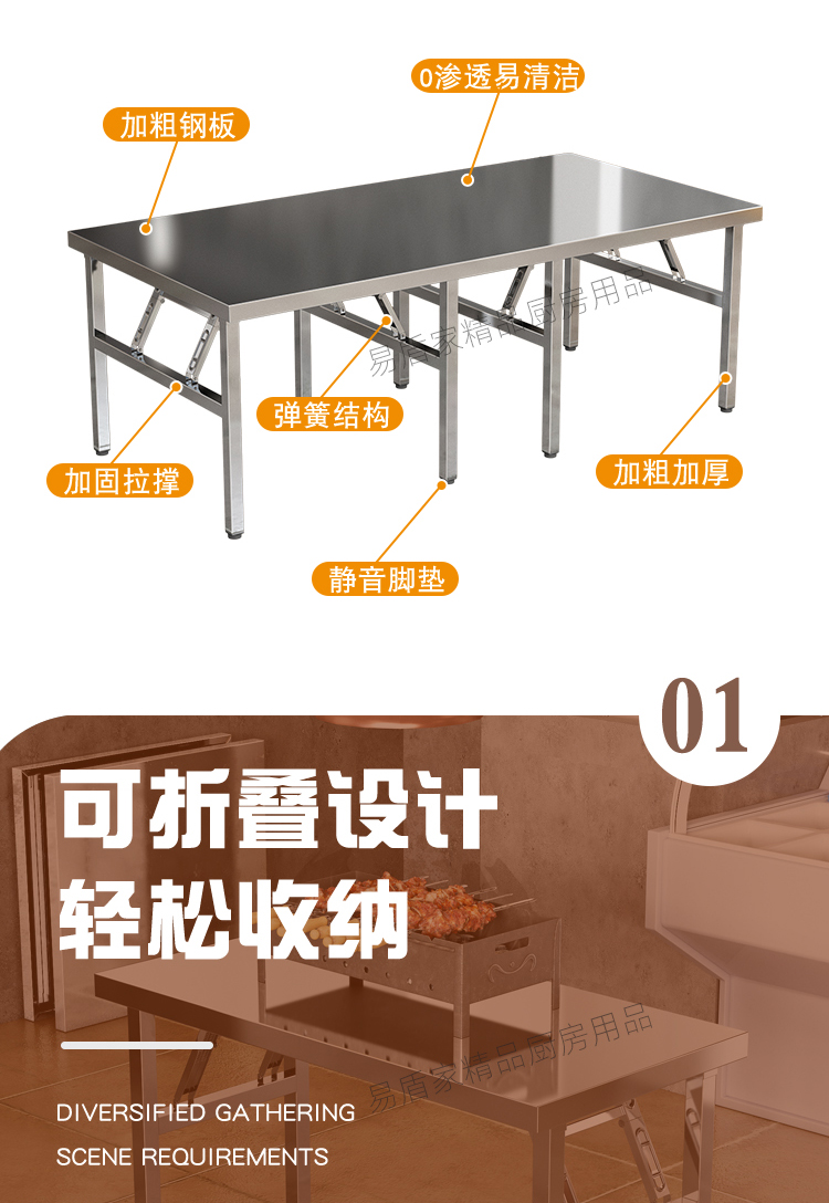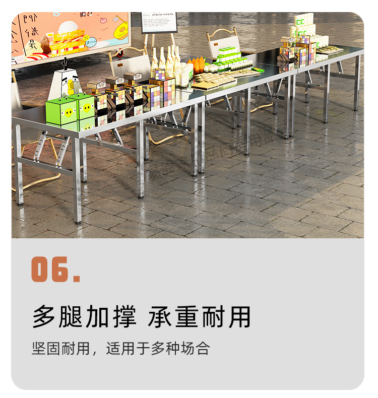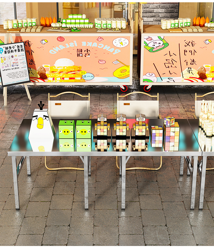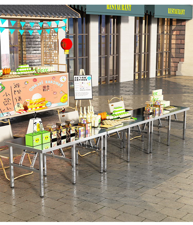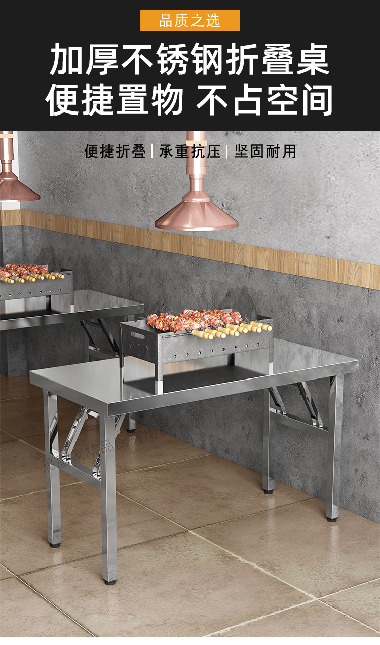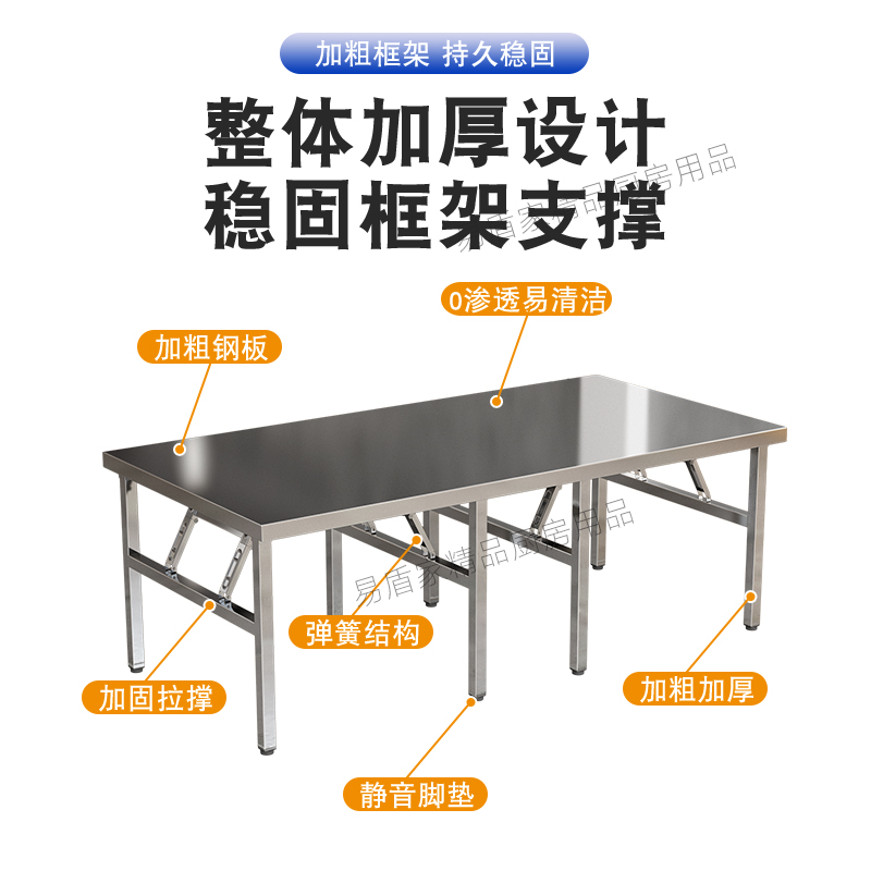 두꺼운 스테인레스 스틸 접이식 테이블 가정용 긴 테이블 상업용 직사각형 야외 바베큐 스톨 휴대용 식탁