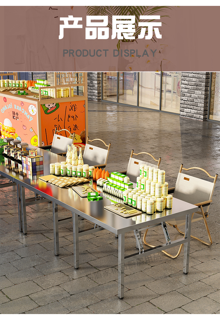 두꺼운 스테인레스 스틸 접이식 테이블 가정용 긴 테이블 상업용 직사각형 야외 바베큐 스톨 휴대용 식탁스토어 가기