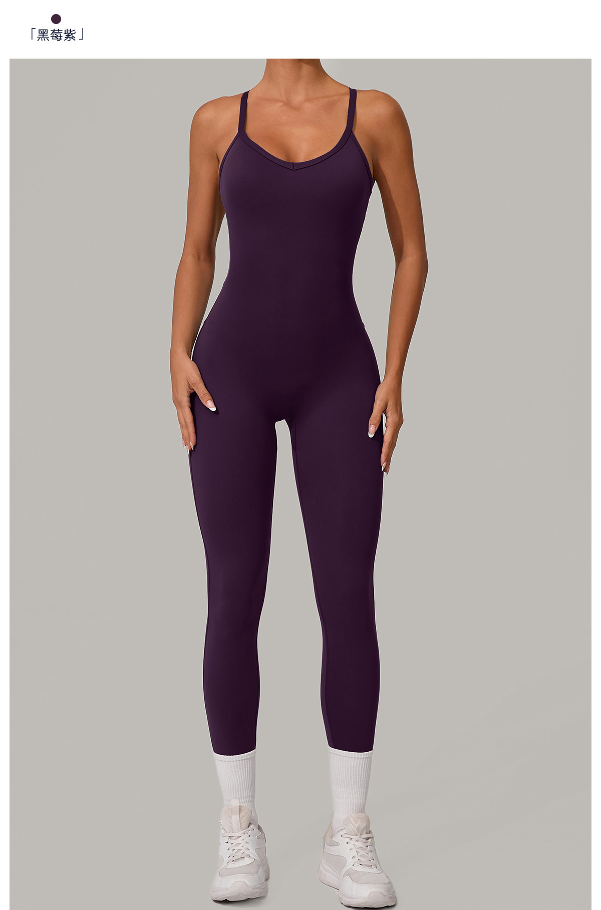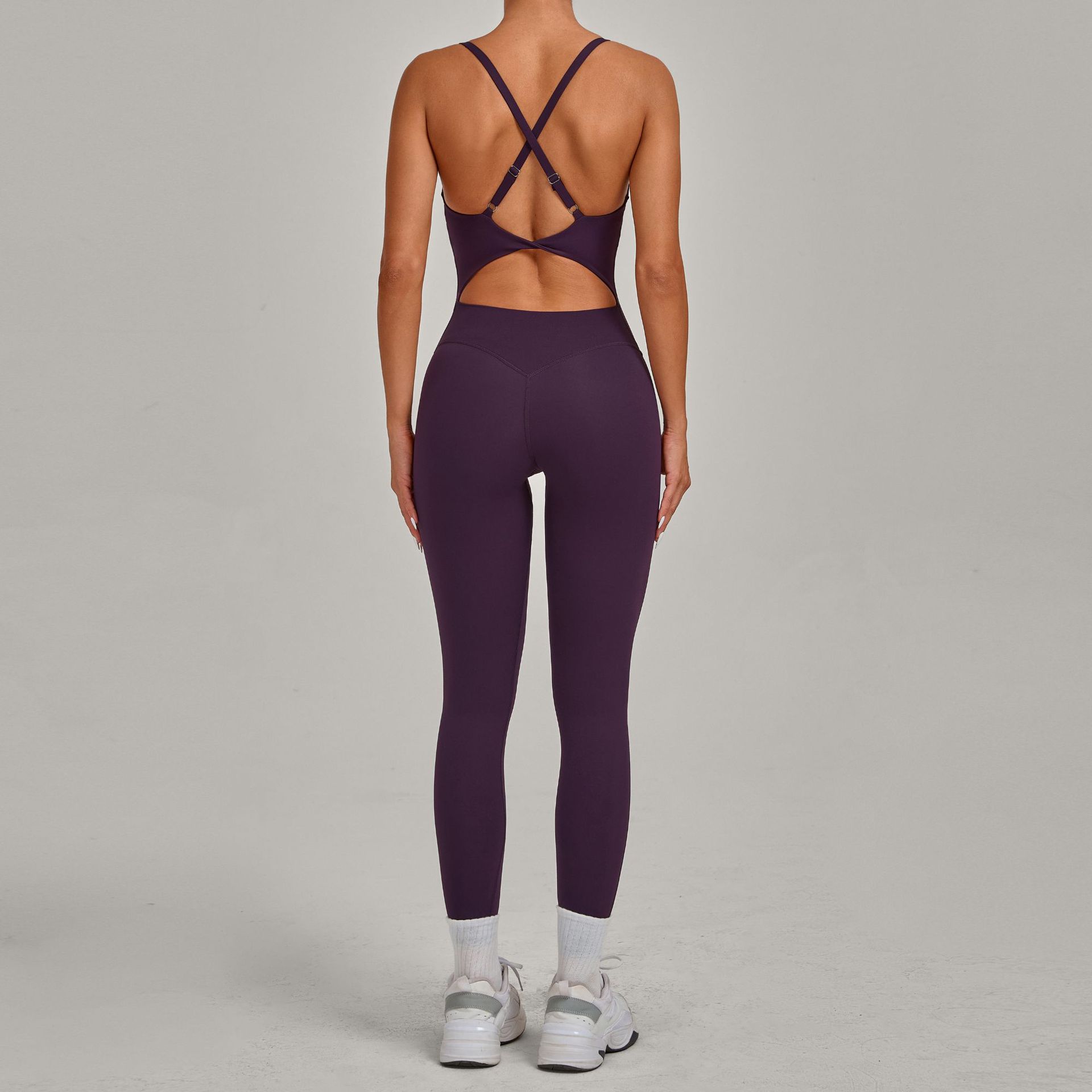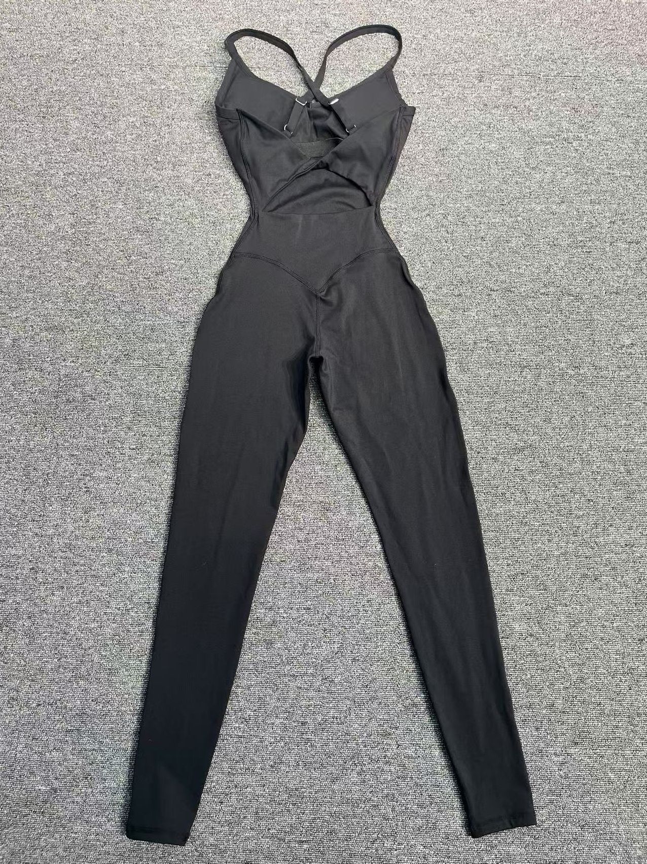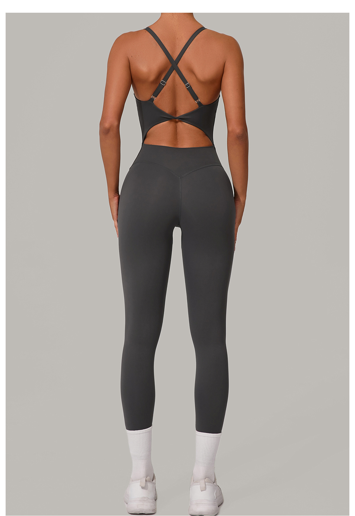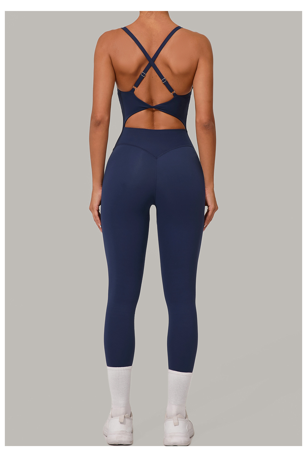 Qiusha 치킨 하트 칼라 조정 가능한 버클 점프 수트 교차 허리 및 엉덩이 리프팅 운동 요가 타이트 점프 수트 8376