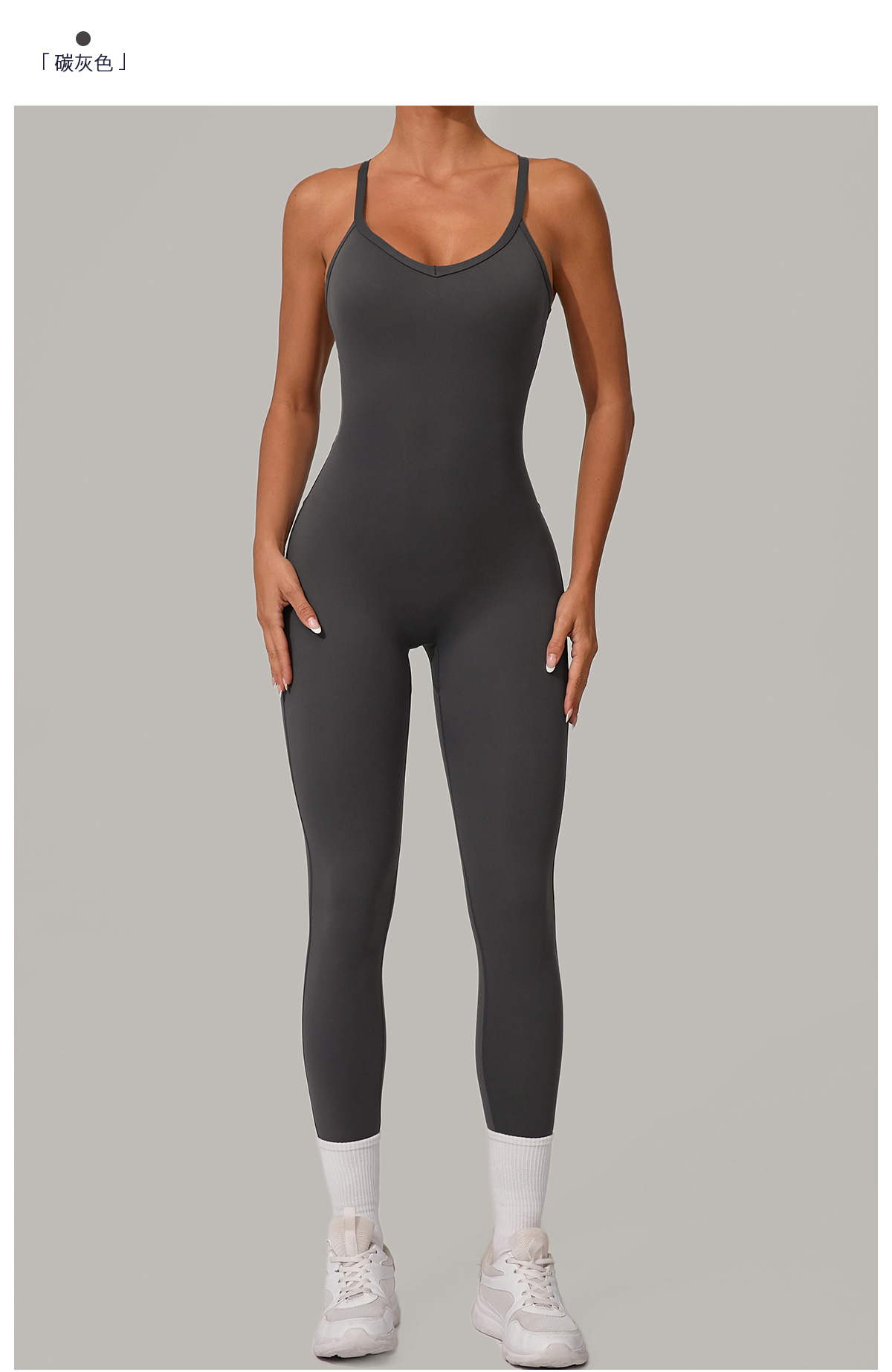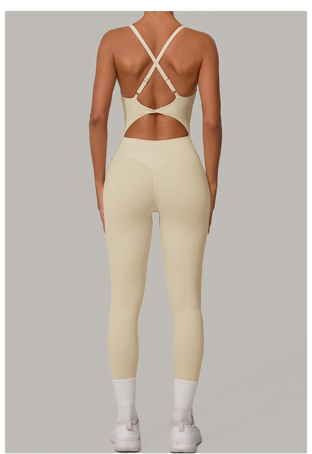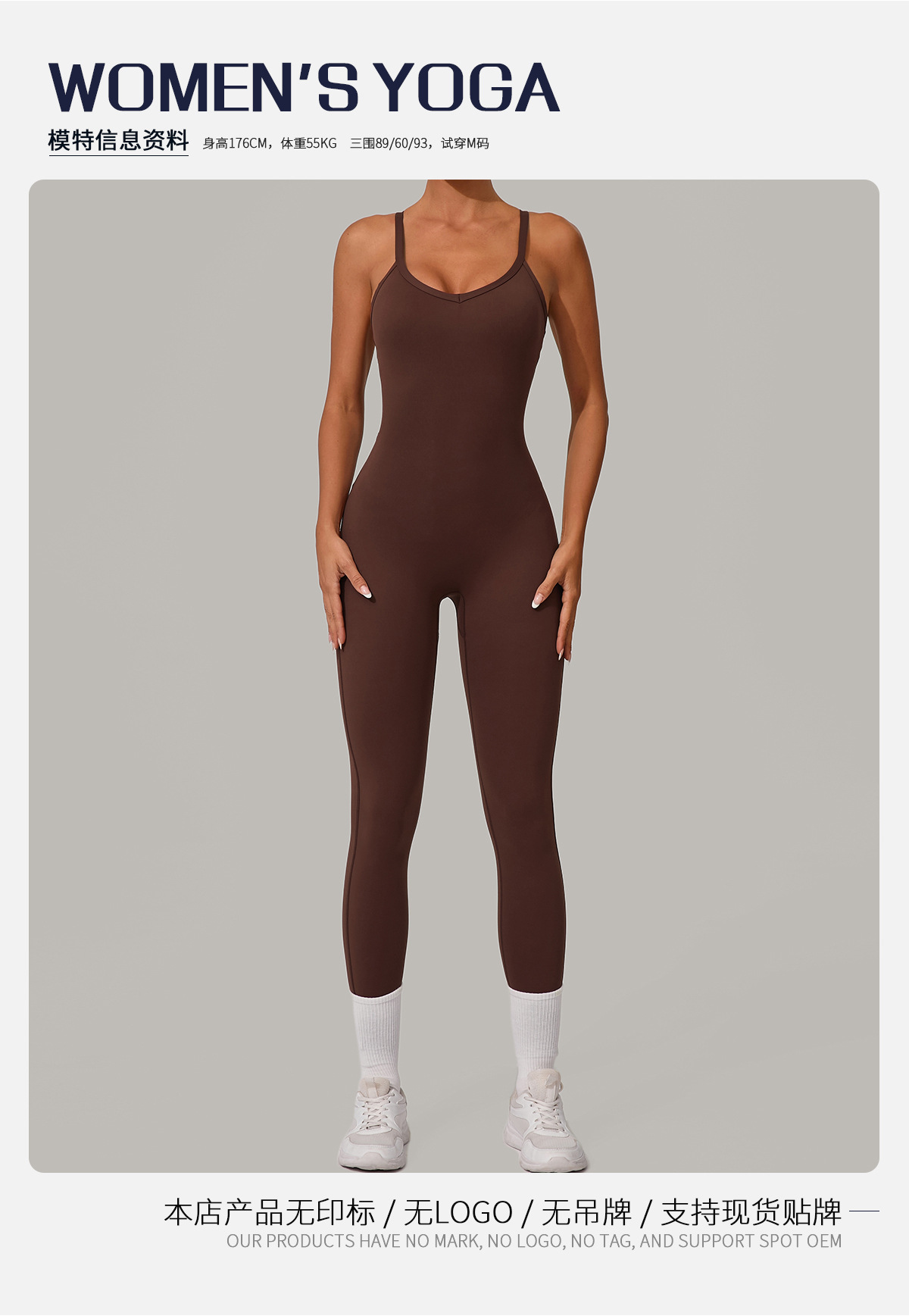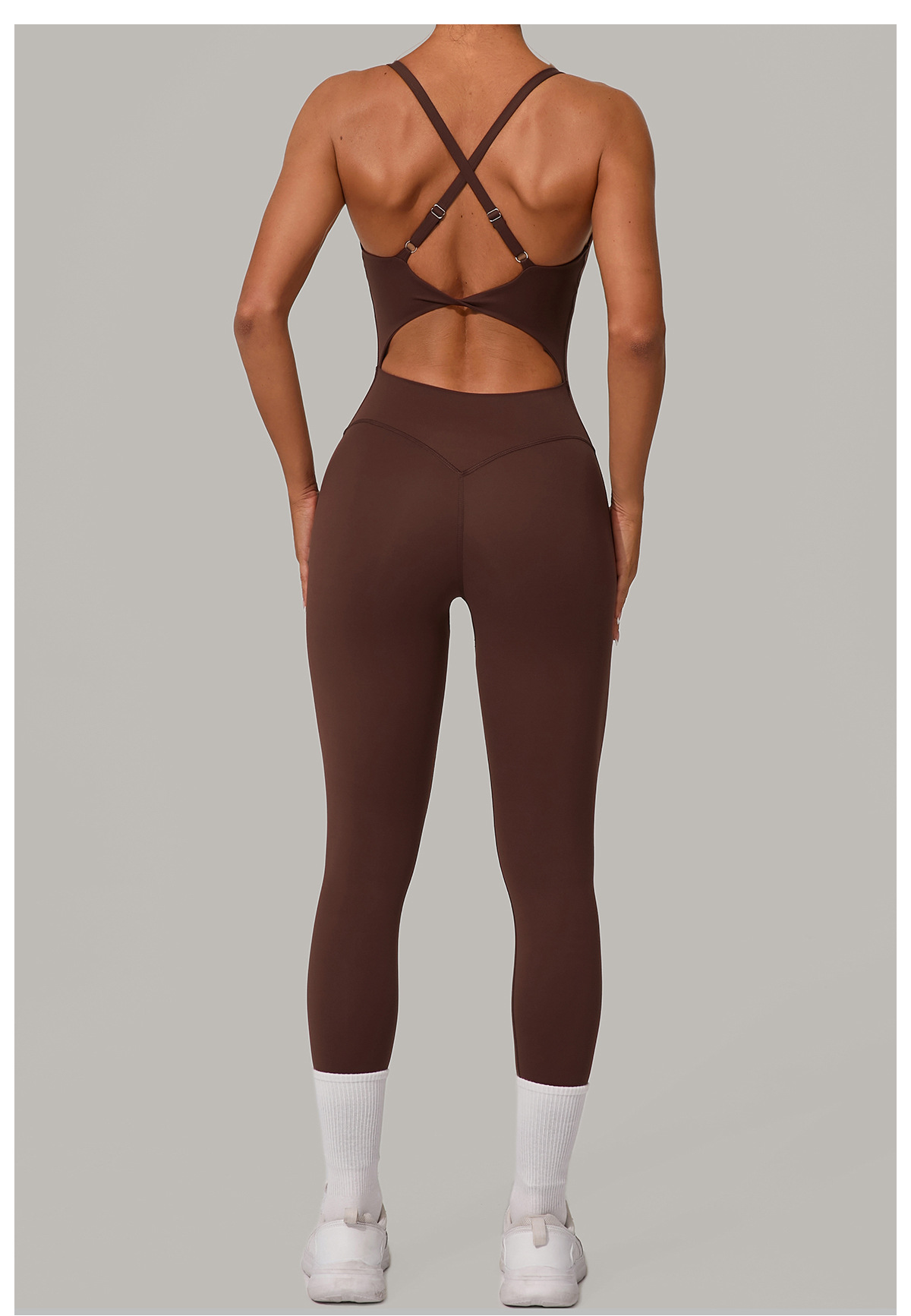 Qiusha 치킨 하트 칼라 조정 가능한 버클 점프 수트 교차 허리 및 엉덩이 리프팅 운동 요가 타이트 점프 수트 8376