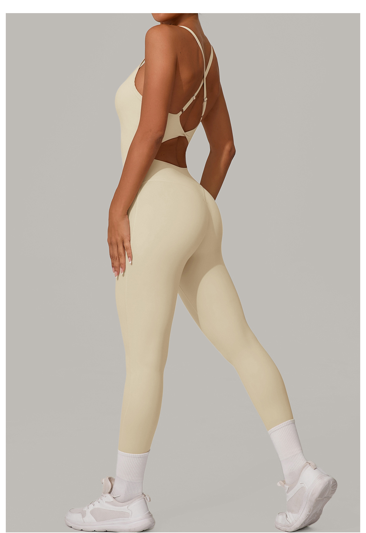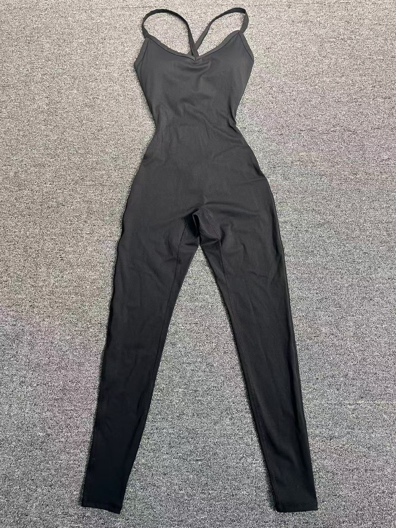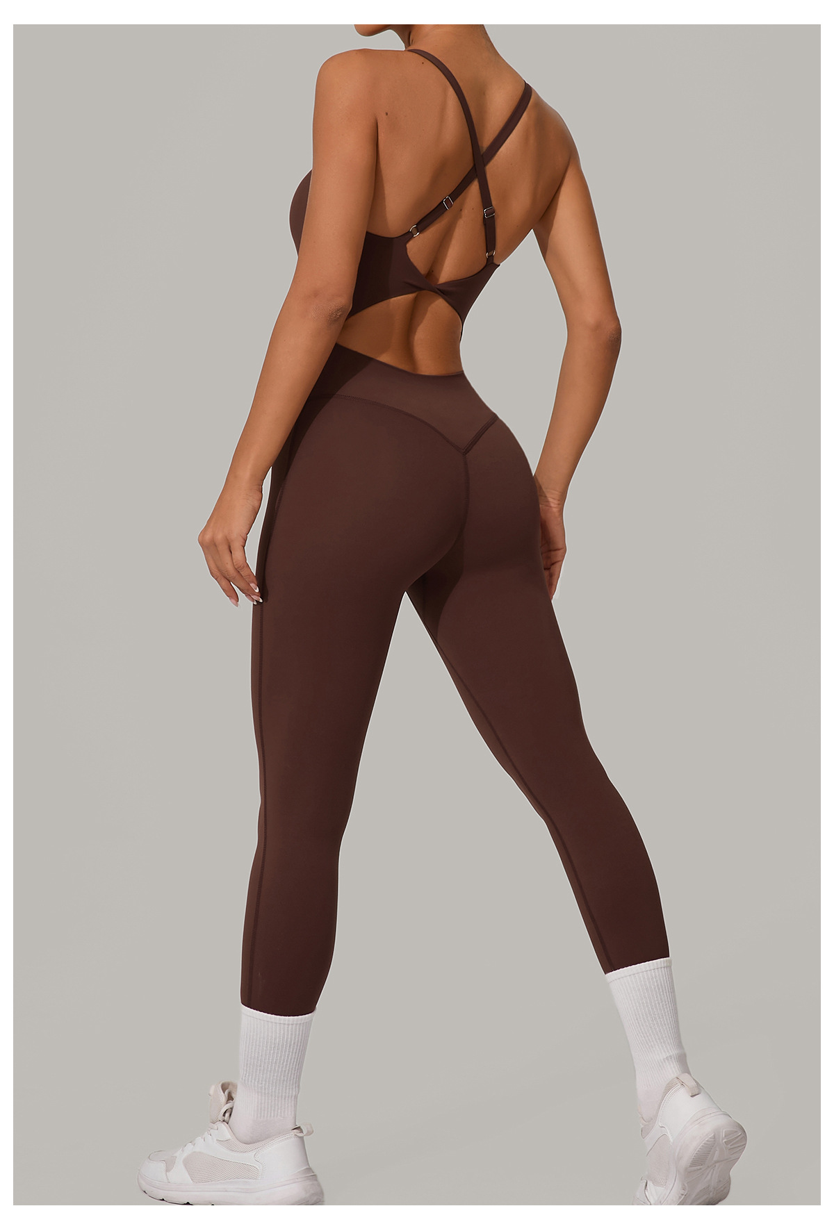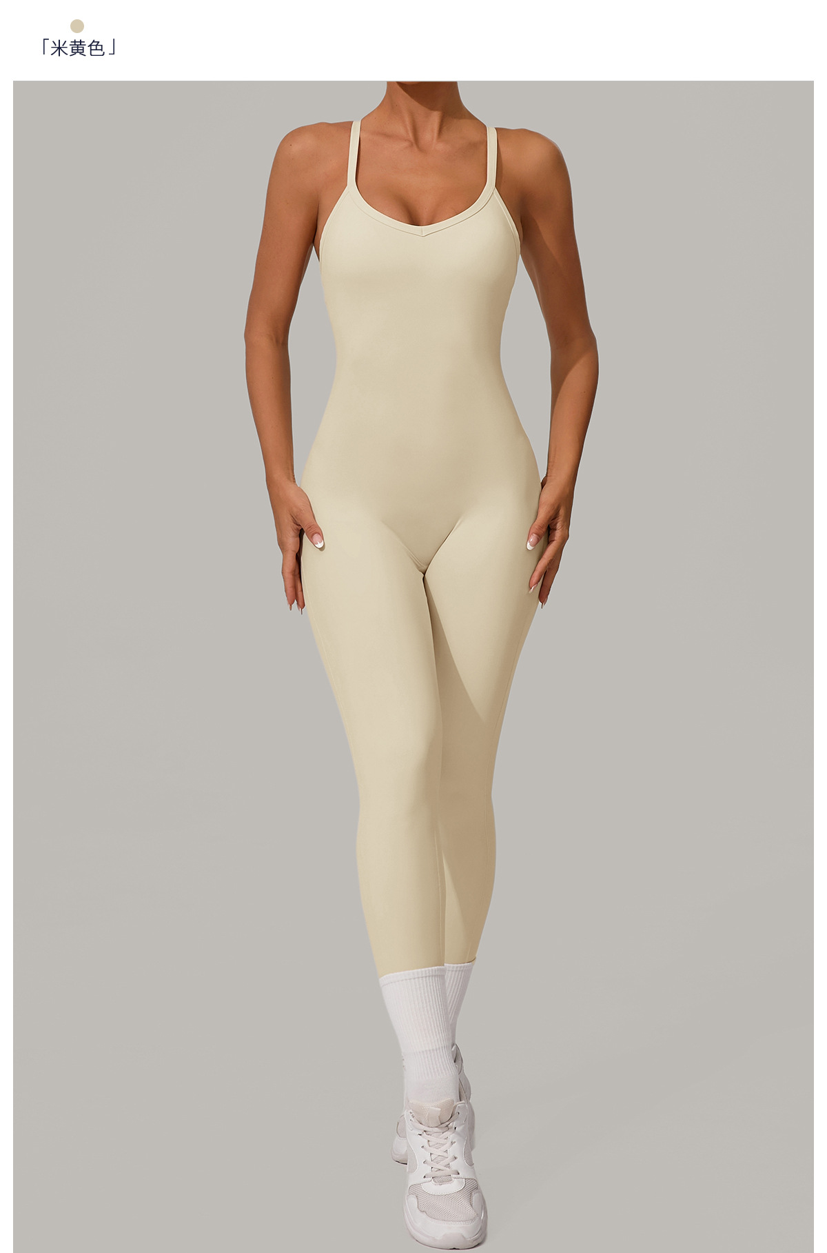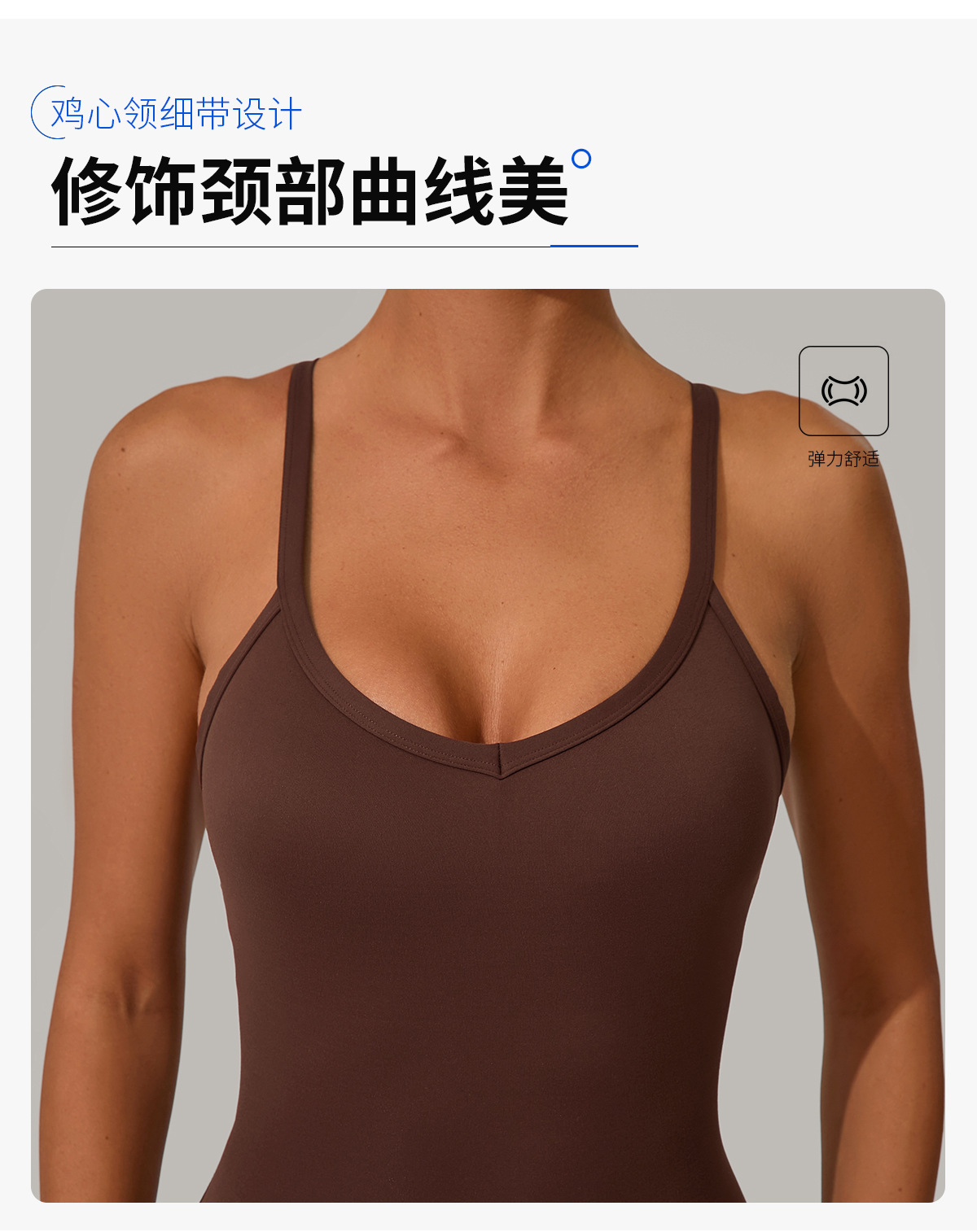 Qiusha 치킨 하트 칼라 조정 가능한 버클 점프 수트 교차 허리 및 엉덩이 리프팅 운동 요가 타이트 점프 수트 8376